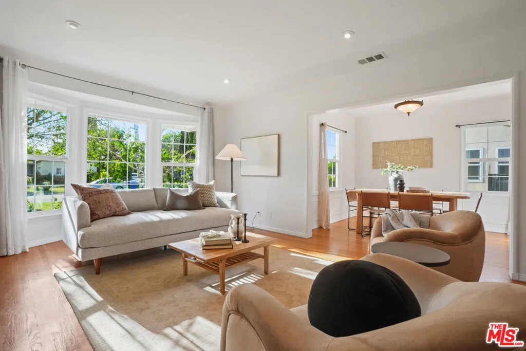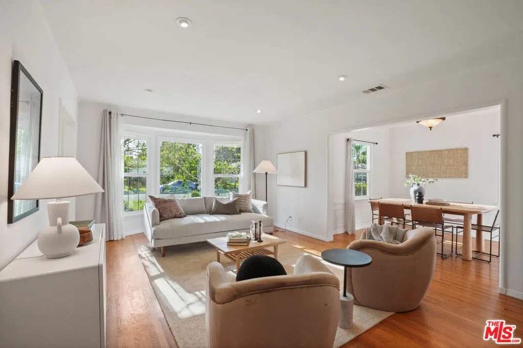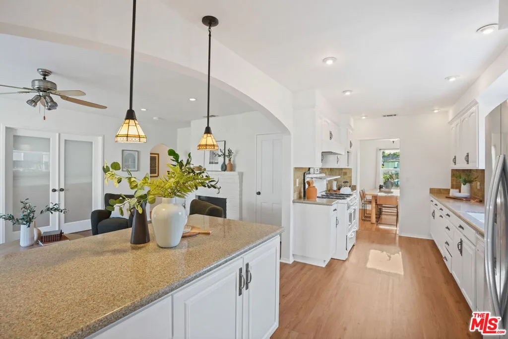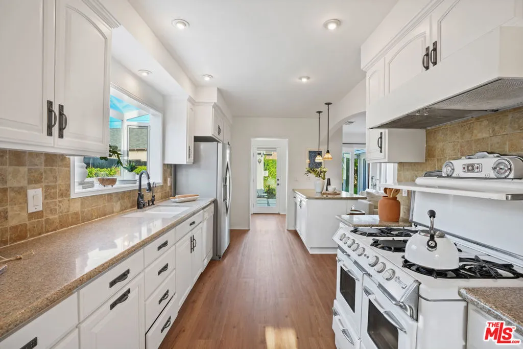 Style, form and function unite in this exceptionally charming 1940s California Storybook Traditional, expanded and updated with the design and amenities ideally suited for today's contemporary lifestyle. Crowning an expansive 8,100+ sq.ft. lot the home resides in diving harmony with its organic environment in one of the most sought after neighborhoods in Valley Glen: An idyllic, vibrant tree lined community and wonderful place to call home! Hip, relaxed, refined with an inviting sense of scale, the thoughtfully designed home offers a flexible floor plan that provides gracious transition from room to room ideal for easy, relaxed living and entertaining. Freshly painted interiors are suffused in an abundance of natural light from expansive use of windows and glass. Newly refinished wood floors grace the living areas. Recessed lighting glows throughout the home. Baths feature fine lighting, fixtures and finishes. The open kitchen is optimally designed for the at home chef and features abundant wood cabinetry, breakfast bar and classic, vintage O'keefe and Merritt 6-burner range. Opening to the family room and adjoining the dining room, it's the perfect gathering space for dining with friends and family. A continuum of glass atrium doors bring the outdoors in and give way to a sprawling grassy back lawn and expansive dining and lounging patio perfect for the Southern California lifestyle of al fresco leisure and endless summer BBQs. Highlights include a fantastic 563 sq.ft. detached multi-use flex space with attached bonus/storage room offering a myriad of possibilities! Three bedrooms including a lux primary suite with soaring cathedral ceilings and bay window with verdant views of the backyard round out the comfortable accommodations for family and guests. Set within a quiet, established neighborhood, the home delivers a compelling blend of charm, functionality, and lifestyle and is the place where you want to live. Welcome!