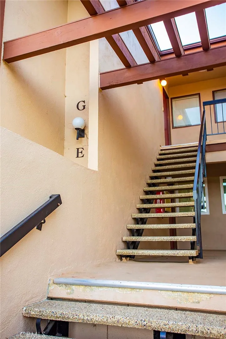 Stylish top-floor two-bedroom condo featuring partial ocean views and modern upgrades throughout. The inviting living space showcases laminated maple flooring, smooth ceilings, contemporary lighting, and sleek nickel hardware, creating a bright and refined atmosphere. Both bedrooms are generously sized with ample closet space. The unit includes convenient in-home laundry hook-ups, with additional community laundry facilities available. Enjoy the ease of two side-by-side covered parking spaces, plus a private storage shed for extra belongings. The well-maintained complex offers beautifully landscaped grounds and a community pool for residents to enjoy. Located within an award-winning school district and just minutes from schools, parks, and shopping centers, this home combines comfort, style, and convenience.