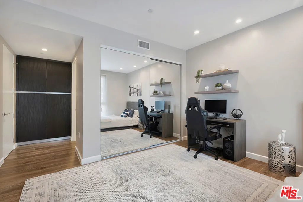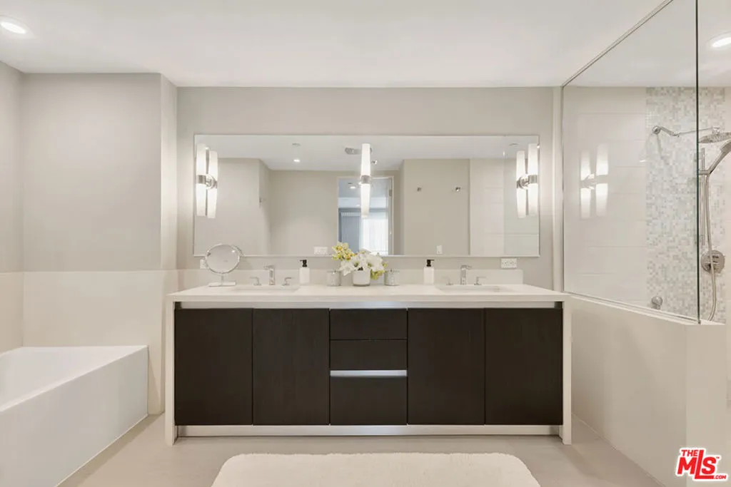 Perched in the heart of Brentwood, this sophisticated corner residence offers a seamless blend of modern luxury, scale, and effortless Westside living. Located within a highly sought-after full-service building, residents enjoy premier amenities including a state-of-the-art fitness center, sparkling pool, and an abundance of private outdoor spaces creating a true resort-style experience at home. Thoughtfully designed with an open-concept layout, the home is filled with natural light and showcases wide-plank hardwood floors, high ceilings, and expansive living and dining areas that flow seamlessly for both everyday living and elevated entertaining. Seamless indoor-outdoor living is highlighted by a spacious private patio overlooking lush treetop views, offering a peaceful, elevated setting ideal for relaxing or entertaining. The gourmet kitchen is both striking and functional, featuring sleek European-style cabinetry, stone countertops, and top-of-the-line stainless steel appliances perfectly suited for the modern lifestyle. The spacious primary suite serves as a true retreat, complete with a luxurious spa-like bath, dual vanities, soaking tub, and a generous walk-in closet. Secondary bedrooms are well-appointed and versatile, ideal for guests, a home office, or additional living space. Additional highlights include on site concierge, secure parking, and controlled access. Set within a boutique collection of contemporary residences in one of Brentwood's most desirable locations, this home offers a rare opportunity to experience elevated, turnkey living just moments from the neighborhood's best dining, shopping, and lifestyle amenities.