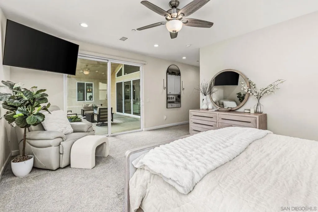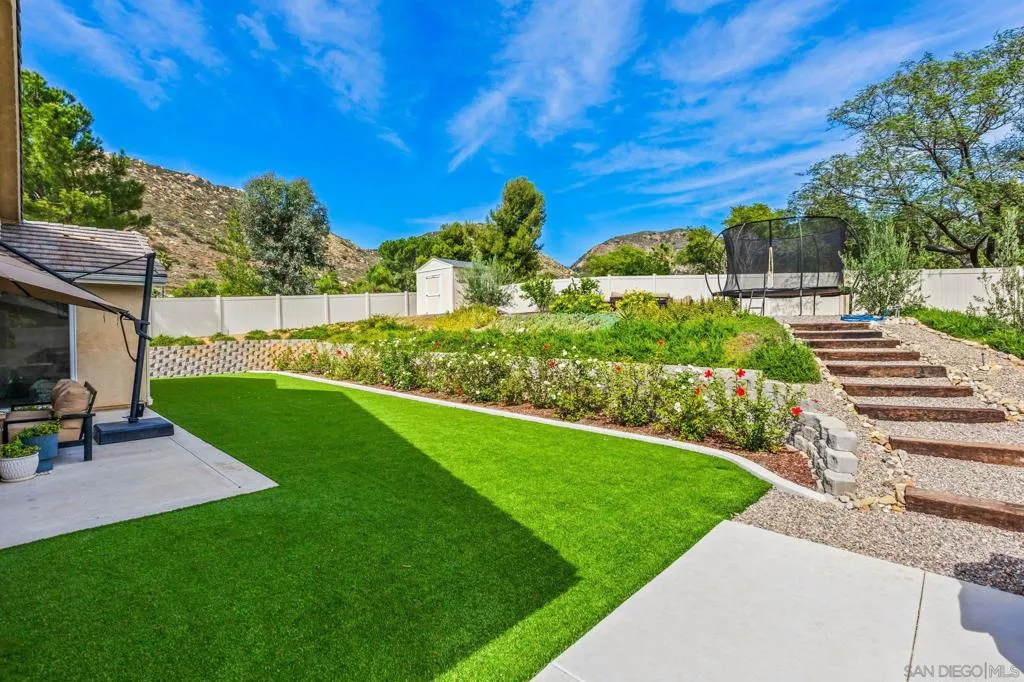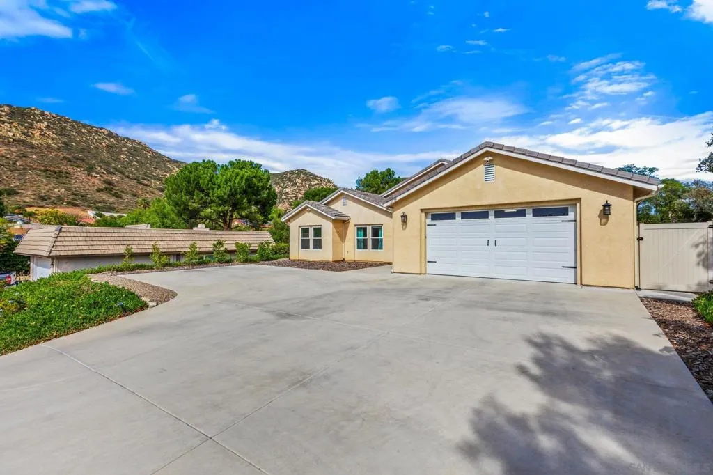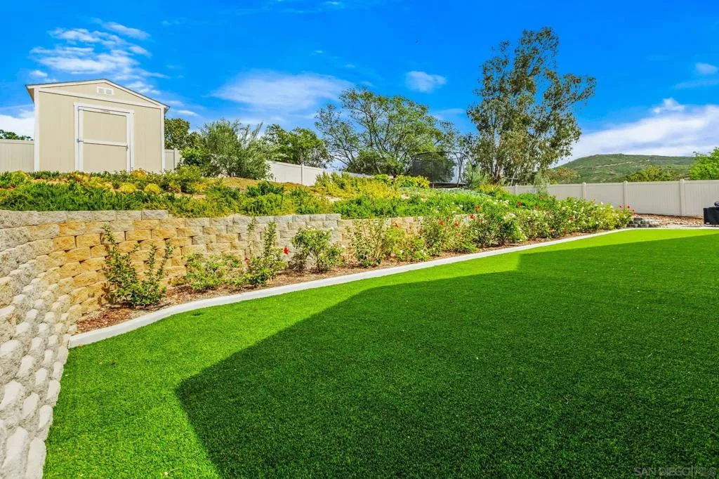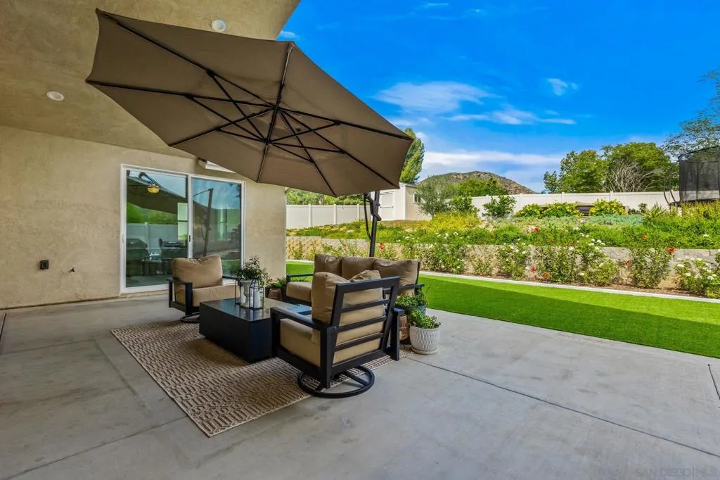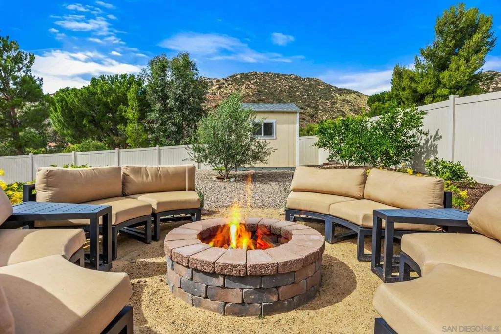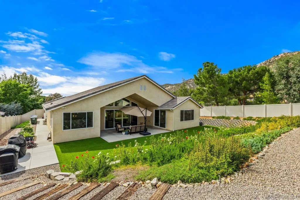 Welcome home to this nearly-new (2023-built), 3,038 sqft estate in Ramona's desirable San Diego Country Estates. This stunning 4-bedroom, 3.5-bath residence offers a seamless, modern lifestyle, starting with its central great room design that flawlessly blends the indoor and outdoor living spaces. The expansive, open-concept design encompasses the dining area, breakfast nook, and a gourmet kitchen. Culinary enthusiasts will appreciate the kitchen's high-end appointments: solid wood cabinetry, a large island perfect for barstool seating, a dedicated beverage counter, and top-of-the-line stainless steel LG appliances, including a propane cooktop and double oven. A massive walk-in pantry with extensive shelving provides exceptional organization and storage. Located on a private wing is the luxurious primary bedroom retreat, a true sanctuary featuring remote black-out shades and a generously sized walk-in closet. The spa-like primary bathroom boasts separate dual vanity areas, an elegant freestanding soaking tub, and an expansive shower equipped with dual shower heads. The home’s thoughtful layout also includes a versatile den or office space off the great room, offering flexibility for remote work or a non-included fifth bedroom. The front hall features a half bath, dedicated laundry room, and access to three additional bedrooms. Of these, two share a hall bathroom, while the third benefits from its own private en-suite bathroom. Double slider doors lead out to a large covered patio, seamlessly extending your entertaining space. See supplement for more info. The fully landscaped backyard is an oasis featuring low-maintenance turf, decorative flower beds, a storage shed, and a designated firepit area. Energy efficiency is paramount, with owned solar power, dual-zoned A/Cs and forced air furnaces, a tankless water heater, and full insulation in both exterior and interior walls, as well as the garage door. The oversized 3-car tandem garage can accommodate three vehicles or be utilized as a dedicated workshop or home gym. Enjoy great sunset views from the front of the home nightly. The location is perfect for outdoor enthusiasts, offering walking distance access to Ramona Oaks Park and the Cedar Creek Falls trailhead. Downtown Ramona is a quick 15-minute drive. This property provides full access to the coveted Country Estates lifestyle, which includes a clubhouse with a restaurant, sports bar, event space, boutique hotel, 18-hole golf course, tennis and pickleball courts, extensive hiking and biking trails, a 5-acre park, and community pools and spa. This isn't just a home; it’s an opportunity to embrace the best of Southern California living. Schedule your showing today.