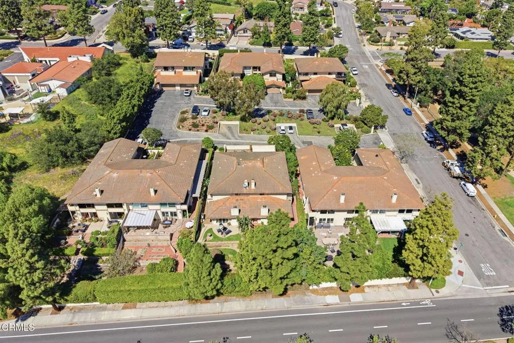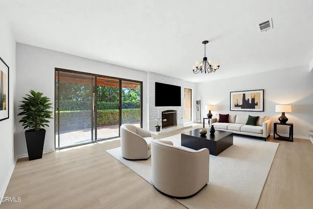 Ideally located within a private enclave of just 12 homes directly across from Nancy Bush Park, this inviting home offers an effortless blend of comfort, scale, and thoughtful updates. This well-designed floor plan features 4 bedrooms including a highly desirable main floor bedroom and bath ideal for guests, extended family or a private home office. A welcoming two-story foyer sets a memorable first impression and introduces the home's elevated aesthetic. At the heart of the home, the spacious great room is anchored by a fireplace and enhanced by new vinyl wood flooring, creating a warm yet modern foundation. The space flows seamlessly to a charming brick patio, an inviting setting for relaxed outdoor gatherings. The kitchen is generously proportioned offering ample room that features a sunlit breakfast nook for casual dining, while the formal dining room is elevated by beveled mirrors and a modern, art-inspired chandelier, creating a refined setting for entertaining. Rich travertine flooring grounds the main level, and fresh interior paint enhances the bright, airy feel throughout. Recent major improvements including a new electrical panel, newer A/C unit, a recent roof tune-up, and completed termite clearance offer added peace of mind. Upstairs, the primary suite serves as a private retreat, complete with a sitting area and its own fireplace, new vinyl wood flooring, and a private balcony. Generously sized secondary bedrooms open to a beautifully resurfaced shared balcony, extending the living experience outdoors and adding to the home's sense of openness and connection. Set within a well-maintained and welcoming community, this home combines everyday convenience with relaxed living - an exceptional opportunity in a sought-after, intimate neighborhood setting with park-side appeal. Must see! CALL TODAY!
