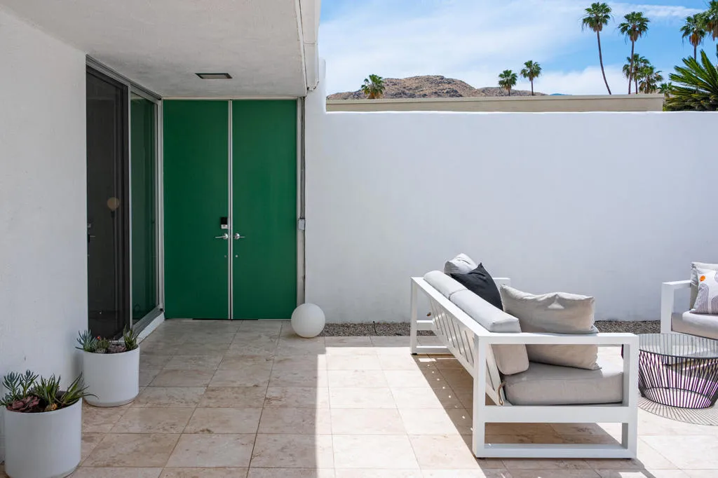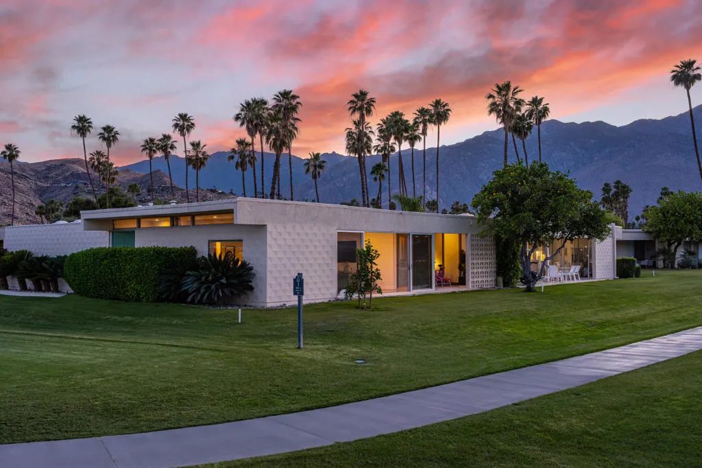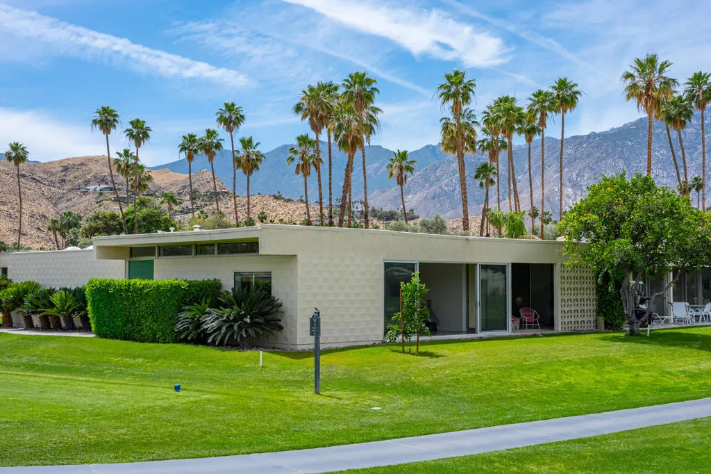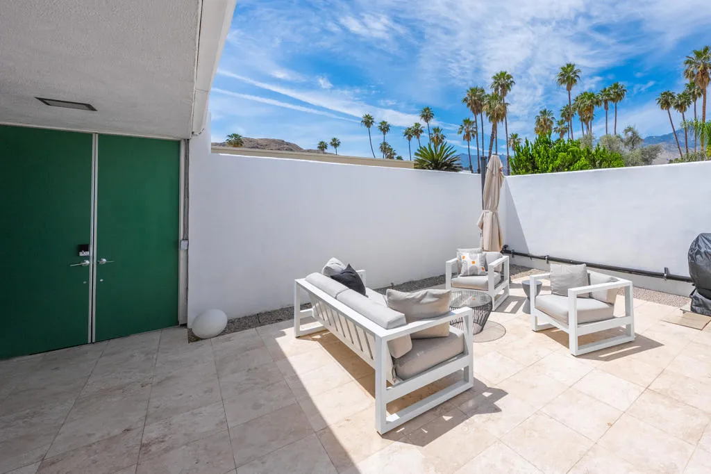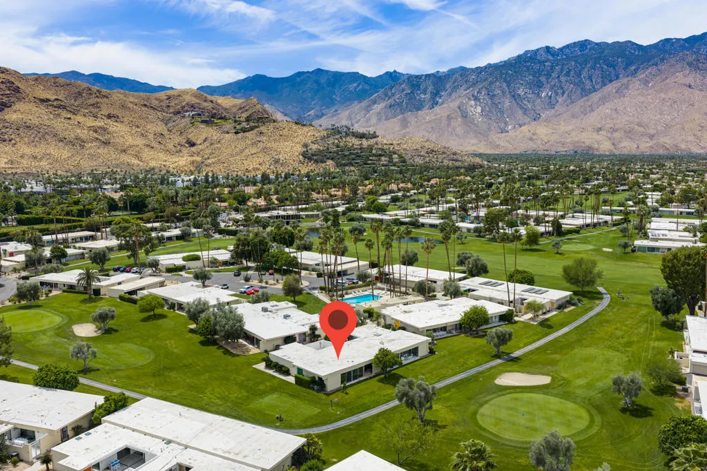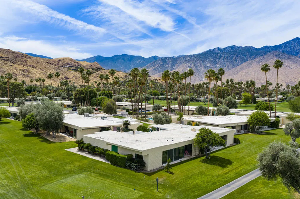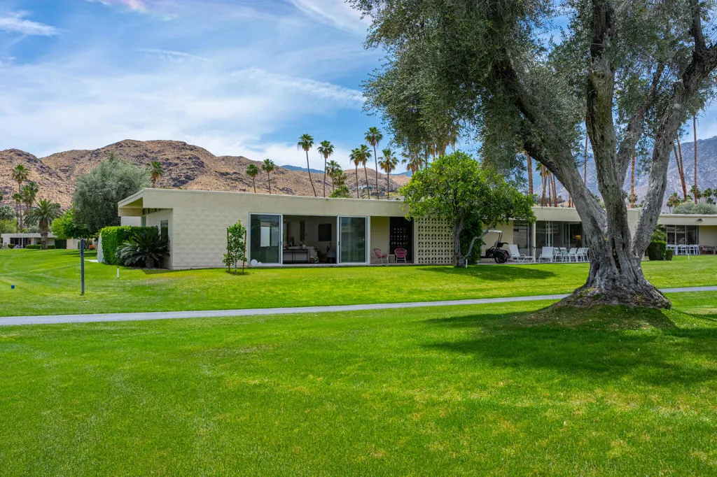 Set within the architecturally significant Seven Lakes Golf & Country Club in highly coveted South Palm Springs, this exquisitely reimagined 2BD, 2BA + Den residence captures the essence of elevated desert living.Perfectly positioned along the second green and third tee box of the celebrated Ted Robinson-designed course, the home is surrounded by expansive greenbelts and framed by breathtaking mountain vistas, offering a rare sense of serenity, privacy, and natural light.Meticulously updated while honoring its mid-century architectural heritage, the residence showcases exceptional craftsmanship and a refined, design-forward aesthetic. Every element has been thoughtfully curated to strike a seamless balance between sophistication and comfort, resulting in a timeless and highly livable environment. Thoughtfully upgraded throughout, the home features whole-house re-plumbing and sewer line replacement, a water filtration system, dual-pane windows, and an updated AC circuit breaker. Interiors are elevated with custom cabinetry, a built-in bar, professional-grade appliances, and beautifully renovated kitchen and baths. Electronic custom shades and additional enhancements complete this refined offering.Seamless indoor-outdoor living unfolds through a generous private courtyard--an inviting sanctuary designed for effortless, year-round entertaining. Ideal for intimate dining, relaxed lounging, and evenings beneath the desert sky, this space embodies the Palm Springs lifestyle at its finest.Beyond the 24-hour guard-gated entrance, Seven Lakes--revered as 'The Gem of the Desert'--offers an exceptional lifestyle anchored by its Ted Robinson-designed 18-hole executive golf course. Residents enjoy 15 pools and spas with pool houses, tennis courts, and the iconic William F. Cody-designed clubhouse, complete with formal dining, a casual cocktail lounge, and a scenic terrace overlooking the signature waterfall feature.This is quintessential Palm Springs living--architecturally significant, impeccably renovated, and surrounded by extraordinary beauty.