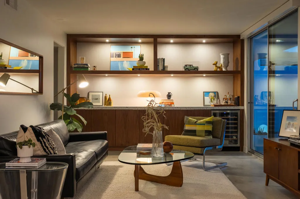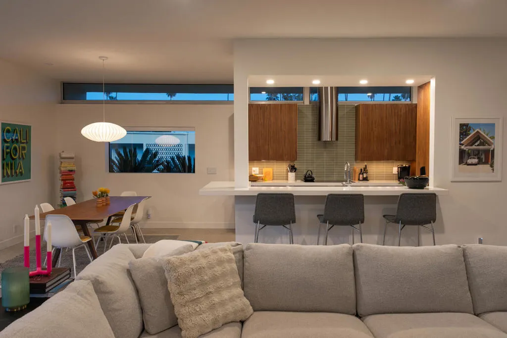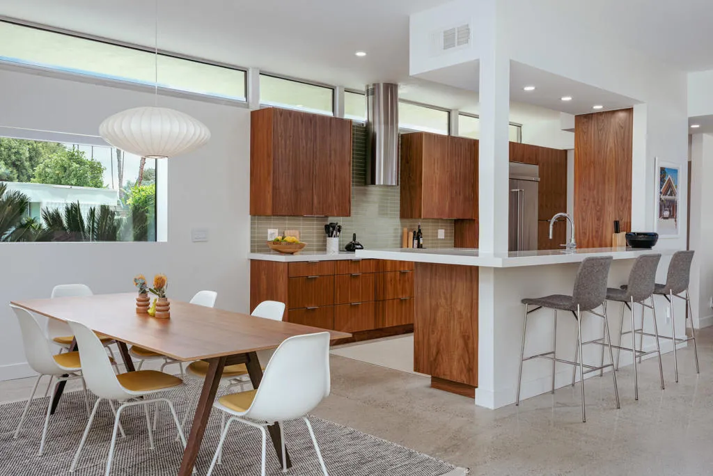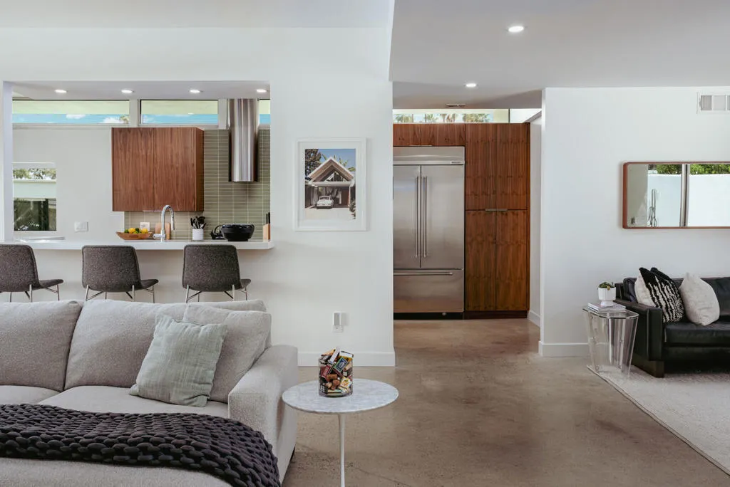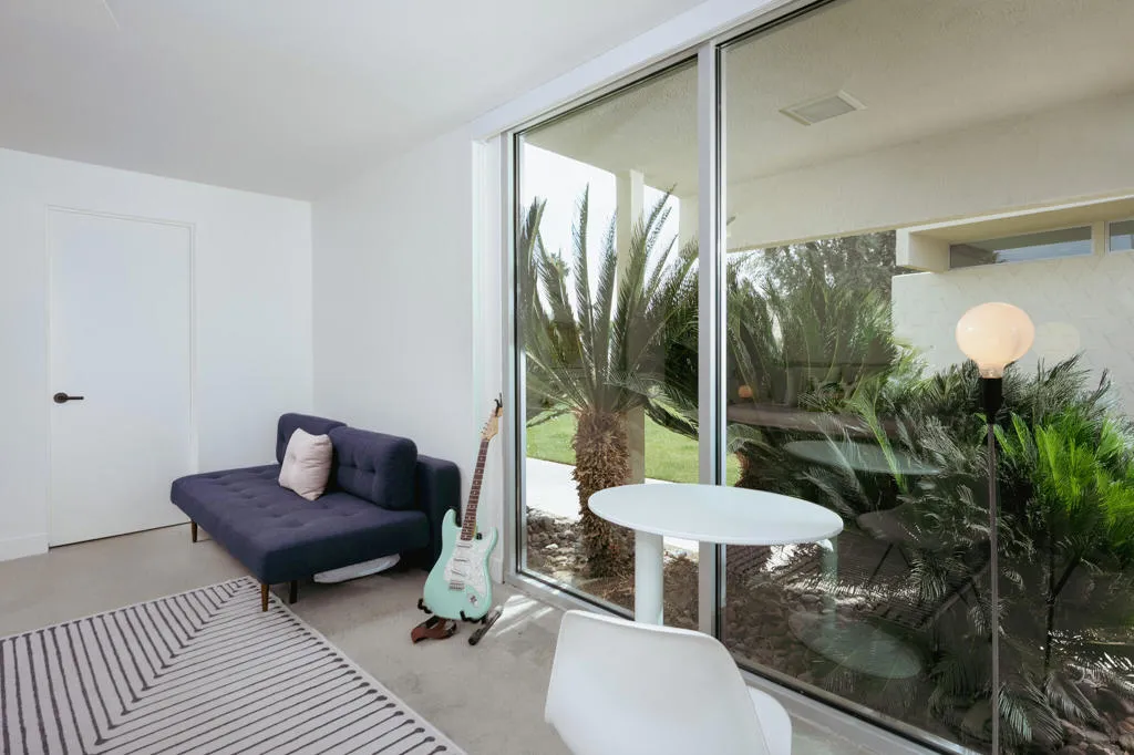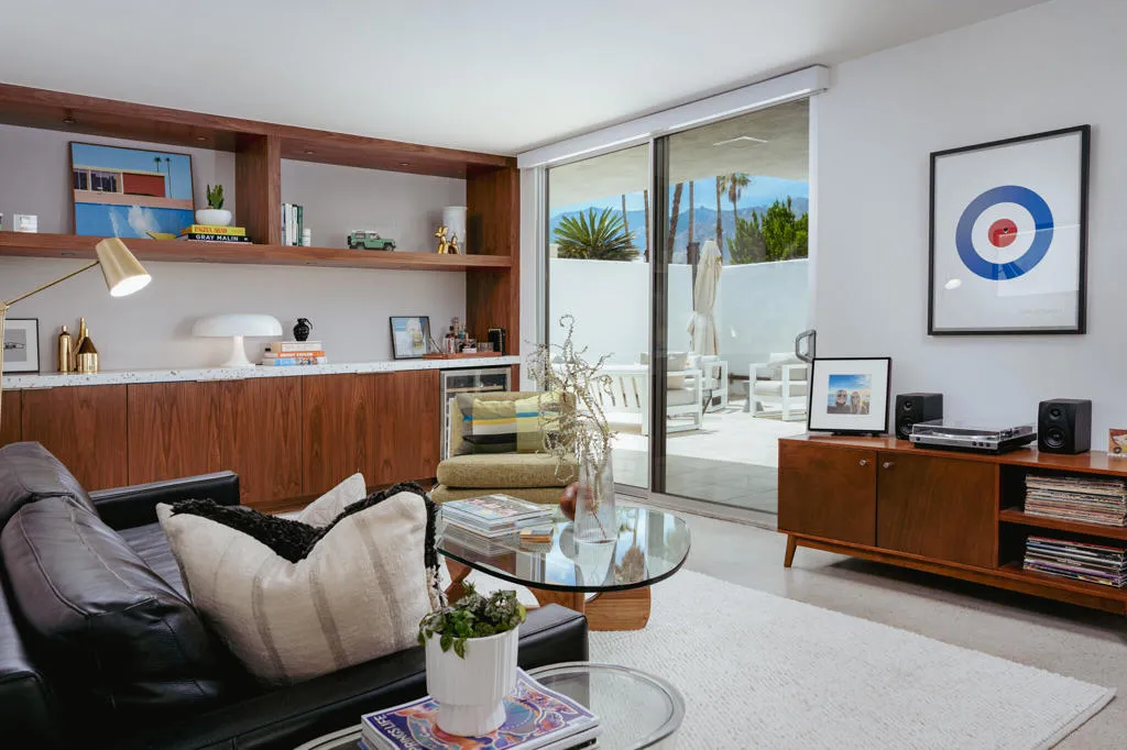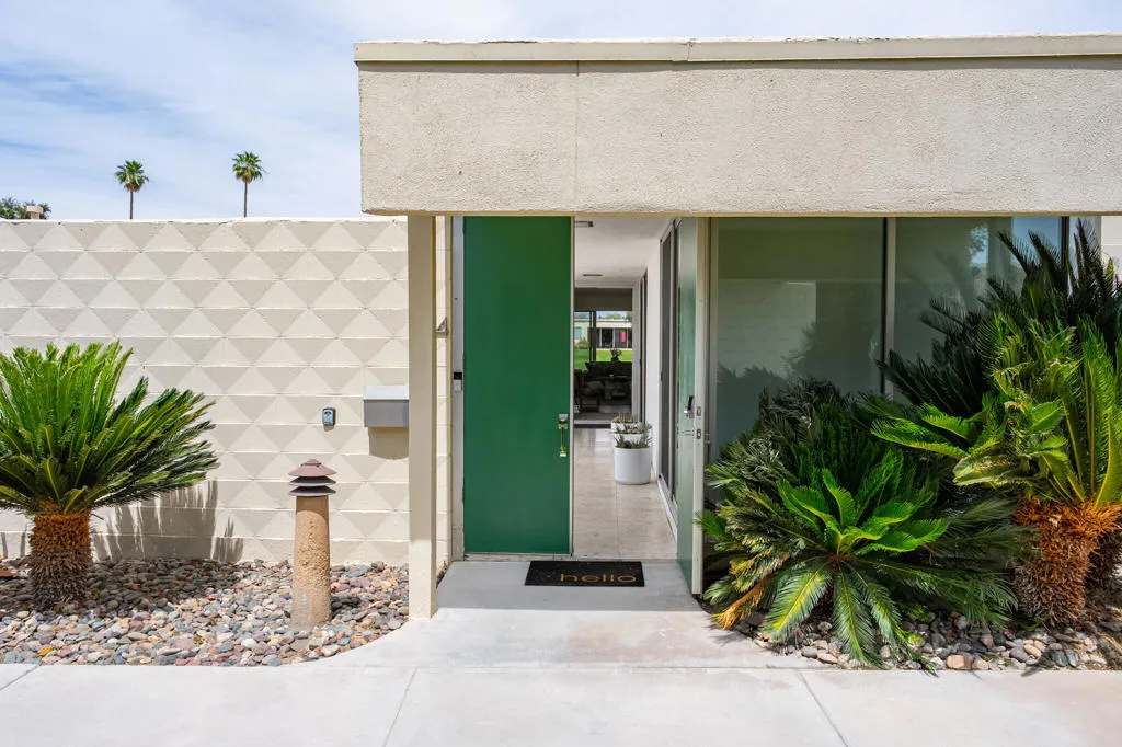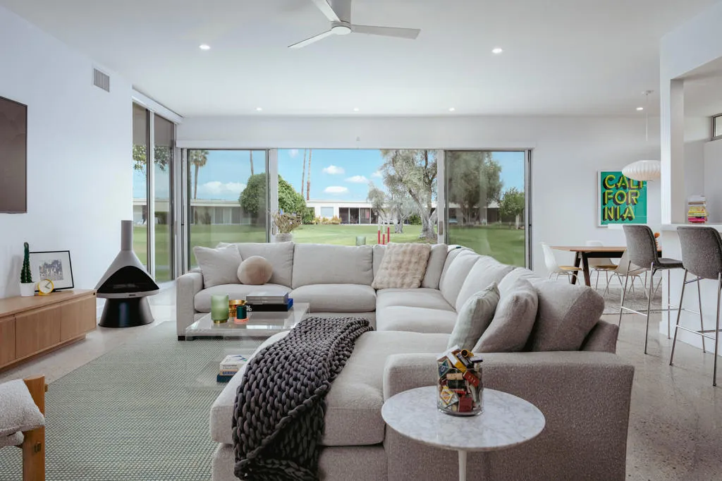 Set within the architecturally significant Seven Lakes Golf & Country Club in highly coveted South Palm Springs, this exquisitely reimagined 2BD, 2BA + Den residence captures the essence of elevated desert living.Perfectly positioned along the second green and third tee box of the celebrated Ted Robinson-designed course, the home is surrounded by expansive greenbelts and framed by breathtaking mountain vistas, offering a rare sense of serenity, privacy, and natural light.Meticulously updated while honoring its mid-century architectural heritage, the residence showcases exceptional craftsmanship and a refined, design-forward aesthetic. Every element has been thoughtfully curated to strike a seamless balance between sophistication and comfort, resulting in a timeless and highly livable environment. Thoughtfully upgraded throughout, the home features whole-house re-plumbing and sewer line replacement, a water filtration system, dual-pane windows, and an updated AC circuit breaker. Interiors are elevated with custom cabinetry, a built-in bar, professional-grade appliances, and beautifully renovated kitchen and baths. Electronic custom shades and additional enhancements complete this refined offering.Seamless indoor-outdoor living unfolds through a generous private courtyard--an inviting sanctuary designed for effortless, year-round entertaining. Ideal for intimate dining, relaxed lounging, and evenings beneath the desert sky, this space embodies the Palm Springs lifestyle at its finest.Beyond the 24-hour guard-gated entrance, Seven Lakes--revered as 'The Gem of the Desert'--offers an exceptional lifestyle anchored by its Ted Robinson-designed 18-hole executive golf course. Residents enjoy 15 pools and spas with pool houses, tennis courts, and the iconic William F. Cody-designed clubhouse, complete with formal dining, a casual cocktail lounge, and a scenic terrace overlooking the signature waterfall feature.This is quintessential Palm Springs living--architecturally significant, impeccably renovated, and surrounded by extraordinary beauty.