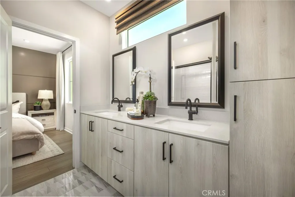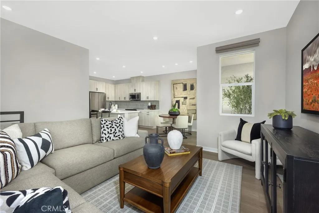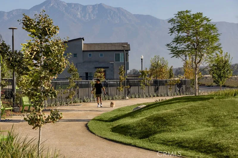 MOVE IN READY, new construction by Risewell Homes at Eave in South Ontario. Popular and unusually unique floorplan that offers a main floor Bed/Bath with slider leading to a covered patio and front courtyard. Once inside and upstairs find Primary Suite wing aft of the Great Room/Kitchen, which are complemented by a charming outdoor deck looking over entryway. Designer-curated finishes at Great Room/Dining/Kitchen, including LVP floors, Quartz counters. Sleek Samsung appliance package, with washer/dryer/fridge make home truly turnkey. A 2-car side x side garage and perimeter location steps to dog park, paseos, sport court and playground further the curb appeal of this home, with more open vistas from downstairs Bedroom, upper balcony and Great Room. The resort-style pool and lounge area (see photos) highlight this contemporary neighborhood hidden away from busier main thoroughfares yet so close to New Haven Marketplace, I-15, 91 and 60 travel corridors, The Station at Eastvale, and a variety of other shopping/dining/entertainment options. Seller concessions available.