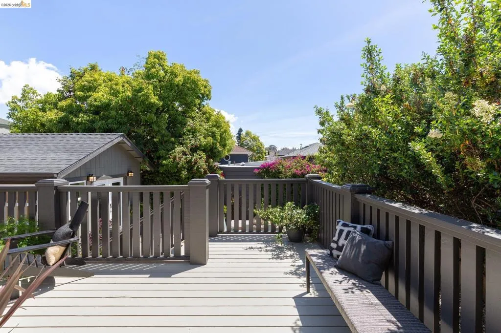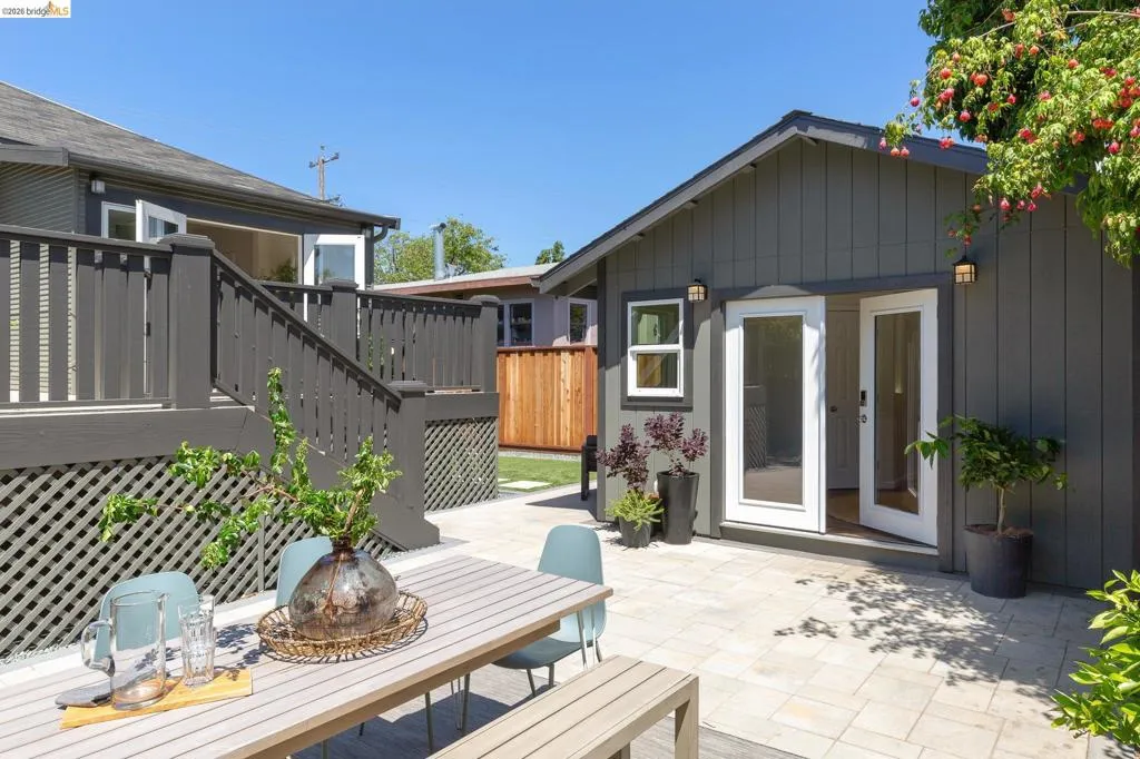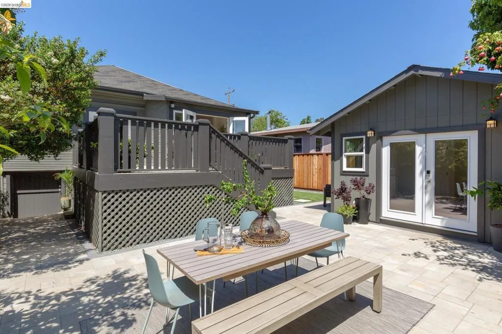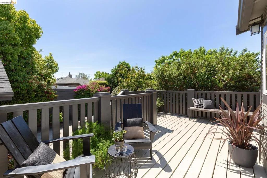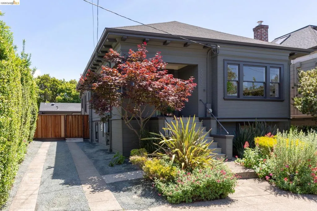 Step into the gracious foyer and you feel it immediately — this one is something special. Charming, light-filled, and classically proportioned, this is a home that has been loved thoughtfully and wears it well. The chef's kitchen is the heart of it all, generous and designed for the way people actually live. An elegant stone fireplace anchors the living space with quiet, enduring warmth. Beautiful windows fill every room with natural light, rich hardwood floors run throughout, and all-level living makes daily life genuinely easy. The primary bedroom is its own world — an ensuite bath and French doors opening onto an expansive rear deck overlooking the lawn and patio below make it a place you'll never want to leave. A second bedroom and an elegant bath — gorgeous tile floors and a proper clawfoot tub — round it out perfectly. A fantastic rear unit — ideal as a private office, studio, or guest suite with its own bath — rests amongst the back patio sharply designed with Belgard pavers, custom landscaping and lighting, offering the kind of flexibility and outdoor living that's hard to find. And then there's the basement — an impressive, oversized space wide open with possibility. For anyone with a vision to build it out, the canvas doesn't get much better than this. And the location? A commuter's dream. Just three blocks to BART and minutes to Highway 24, with the very best of Rockridge right at your doorstep: an abundance of beloved restaurants, independent shops, and the award-winning Market Hall. A private driveway means all your parking needs are covered and owned solar rounds out a home that is as smart as it is beautiful. This one will charm you for sure!