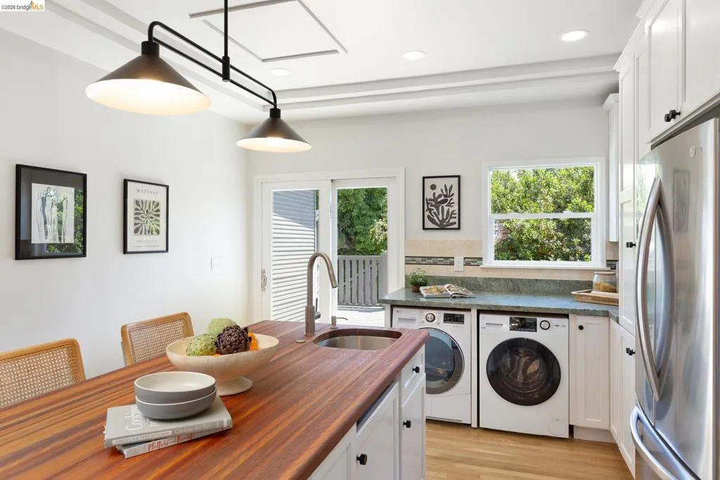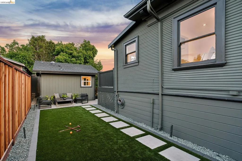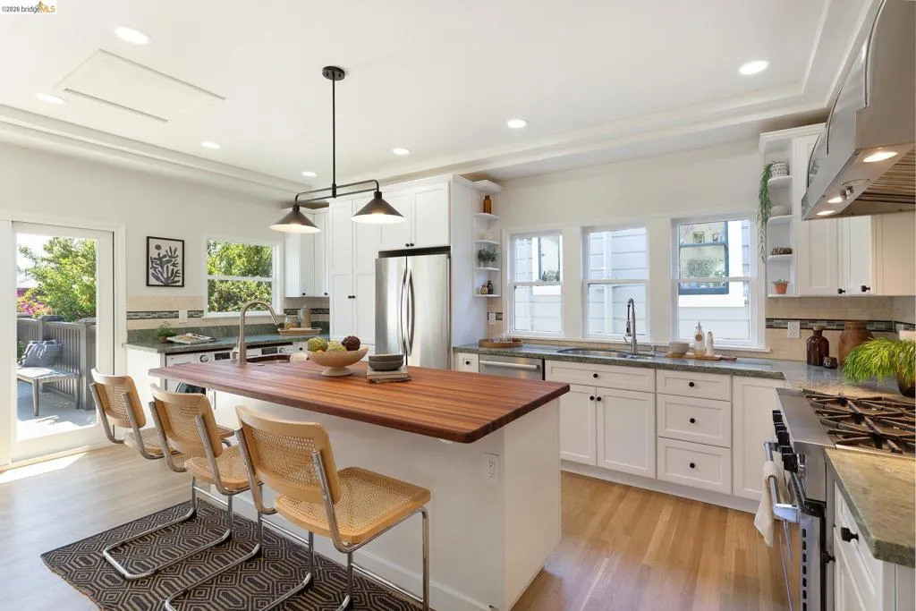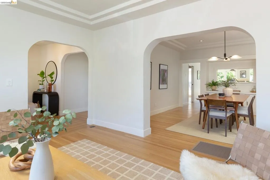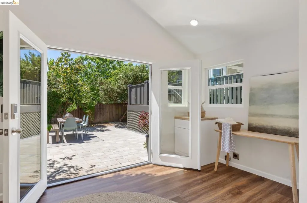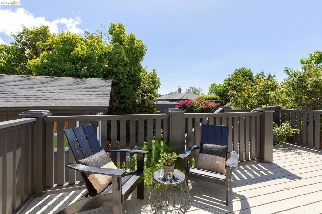 Step into the gracious foyer and you feel it immediately — this one is something special. Charming, light-filled, and classically proportioned, this is a home that has been loved thoughtfully and wears it well. The chef's kitchen is the heart of it all, generous and designed for the way people actually live. An elegant stone fireplace anchors the living space with quiet, enduring warmth. Beautiful windows fill every room with natural light, rich hardwood floors run throughout, and all-level living makes daily life genuinely easy. The primary bedroom is its own world — an ensuite bath and French doors opening onto an expansive rear deck overlooking the lawn and patio below make it a place you'll never want to leave. A second bedroom and an elegant bath — gorgeous tile floors and a proper clawfoot tub — round it out perfectly. A fantastic rear unit — ideal as a private office, studio, or guest suite with its own bath — rests amongst the back patio sharply designed with Belgard pavers, custom landscaping and lighting, offering the kind of flexibility and outdoor living that's hard to find. And then there's the basement — an impressive, oversized space wide open with possibility. For anyone with a vision to build it out, the canvas doesn't get much better than this. And the location? A commuter's dream. Just three blocks to BART and minutes to Highway 24, with the very best of Rockridge right at your doorstep: an abundance of beloved restaurants, independent shops, and the award-winning Market Hall. A private driveway means all your parking needs are covered and owned solar rounds out a home that is as smart as it is beautiful. This one will charm you for sure!