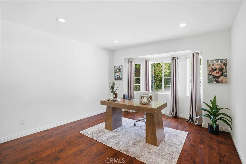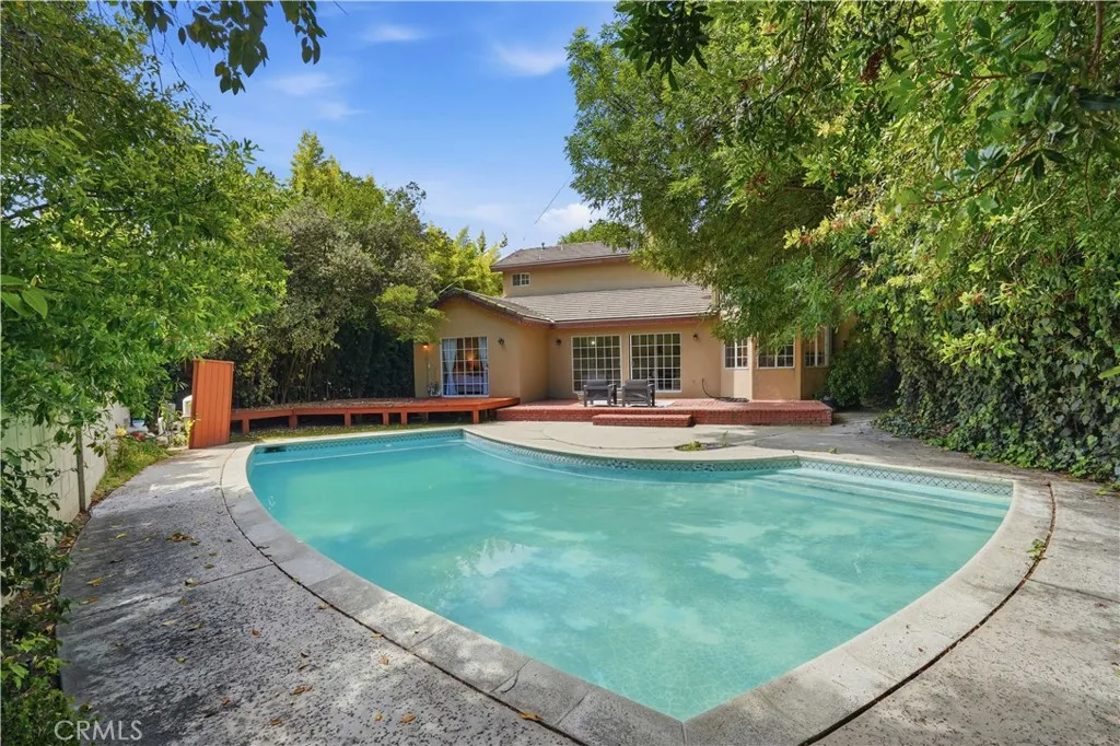 Welcome to a rare gem in the heart of Walnut Acres, where timeless charm meets modern comfort. This exceptional 4-bedroom, 4-bathroom gated estate is a true sanctuary, offering the perfect blend of elegance, privacy, and versatility. Beyond the private gate and oversized circular driveway, you’ll discover a warm and inviting home filled with natural light and designed for both grand entertaining and everyday living. Recessed lighting throughout enhances the sophisticated interiors, while the separate living room and spacious formal dining room create the perfect setting for memorable gatherings. At the heart of the home is a spacious kitchen with picturesque views of the pool, seamlessly connected to the bright family room that opens to the backyard oasis. Whether hosting guests or enjoying a quiet evening at home, this layout was designed to bring everyone together. With two bedrooms downstairs, including one overlooking the backyard and deck, the home offers incredible flexibility for guests, extended family, or a private office. Upstairs, the luxurious primary suite is a retreat of its own, featuring a beautiful fireplace, walk-in closet, private balcony, and serene views of the lush backyard. An additional upstairs en-suite bedroom with a walk-in closet adds comfort and privacy. The stunning backyard invites you to relax, entertain, and enjoy the California lifestyle. Complete with a dedicated laundry room and generous living spaces throughout, every detail has been thoughtfully designed. located in prestigious Woodland Hills, close to award-winning schools, Topanga Village, premier shopping, dining, and easy freeway access, this is more than a home, it’s a lifestyle. With Walnut Acres opportunities becoming increasingly rare, this is your chance to own a piece of one of the Valley’s most beloved neighborhoods.