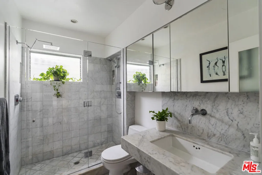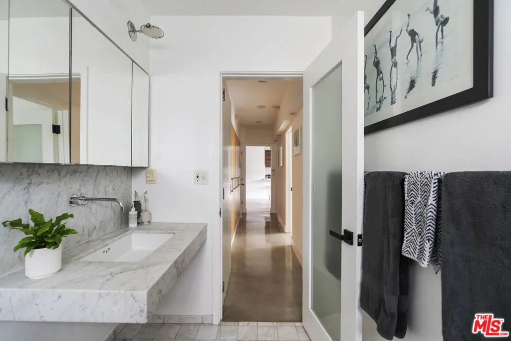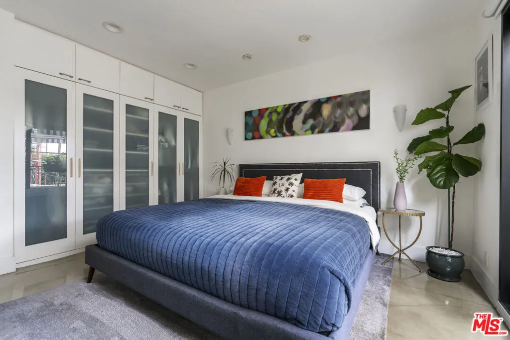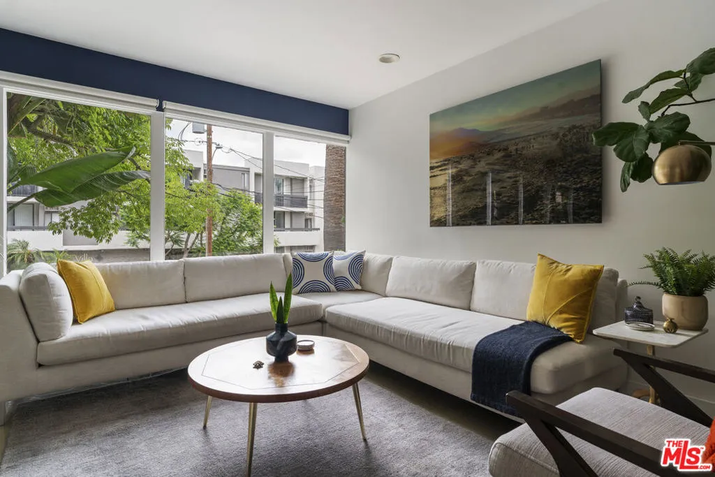 Tucked away on a quiet, tree-lined street just north of the Sunset Strip, this beautifully updated residence offers a rare opportunity to own in one of West Hollywood's most culturally significant mid-century buildings. The building's iconic courtyard pool was immortalized in Peter Getting Out of Nick's Pool by David Hockney - a seminal work that helped define the visual language of California modernism. Residence #9 is the largest unit in the building and features a thoughtfully updated interior that balances modern comfort with architectural character. Polished concrete floors, a renovated kitchen outfitted with high-end appliances, and a light-filled layout create a clean, contemporary feel. Two spacious bedrooms and a marble clad bath round out the interior, with a balcony off the primary bedroom providing space to enjoy the outdoors. Additional highlights include in-unit laundry, an exceptional amount of closet space and storage, secure parking space, and access to the lushly landscaped courtyard pool - the architectural and cultural centerpiece of the property. The HOA is notably well-managed, featuring relatively low monthly dues along with strong reserve funding, offering long-term stability and peace of mind for ownership. Located a block from Sunset Boulevard, the home offers immediate access to West Hollywood's best dining, nightlife, and wellness destinations while maintaining a sense of privacy and retreat. A rare convergence of design, history, and livability.