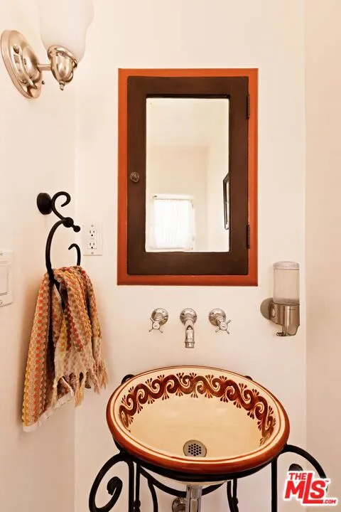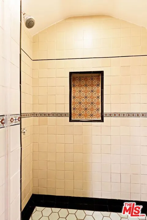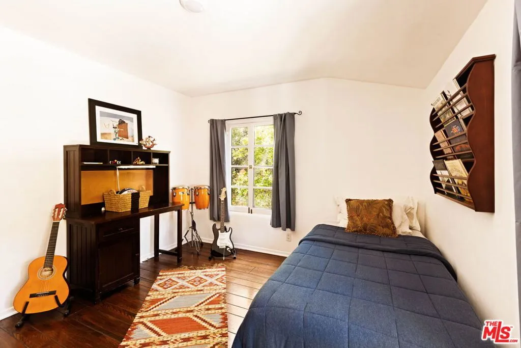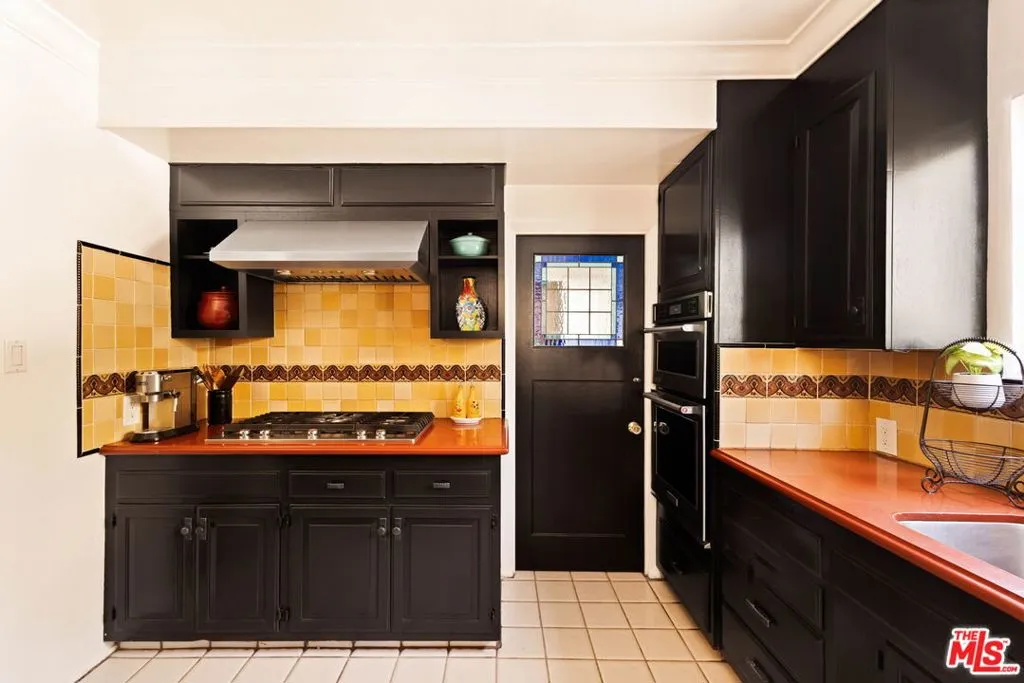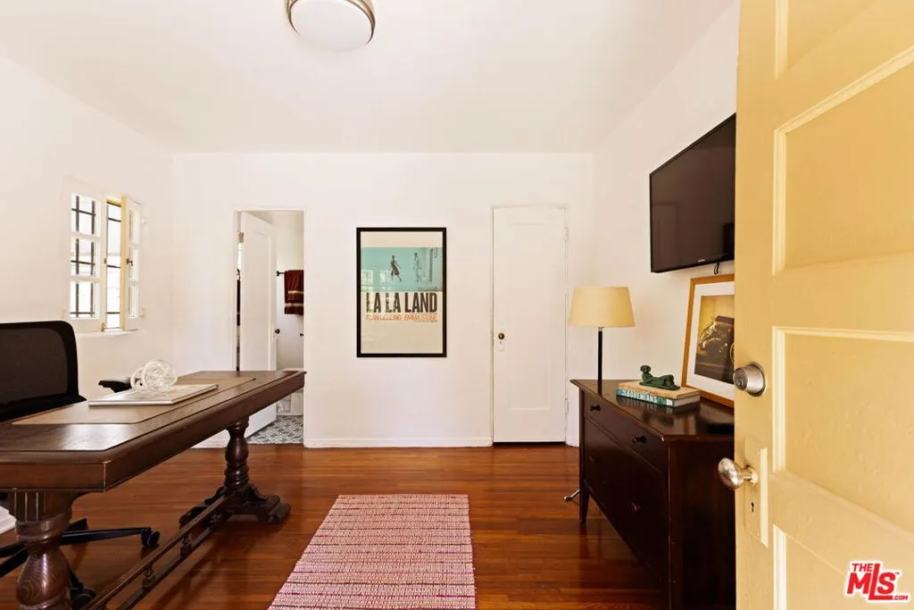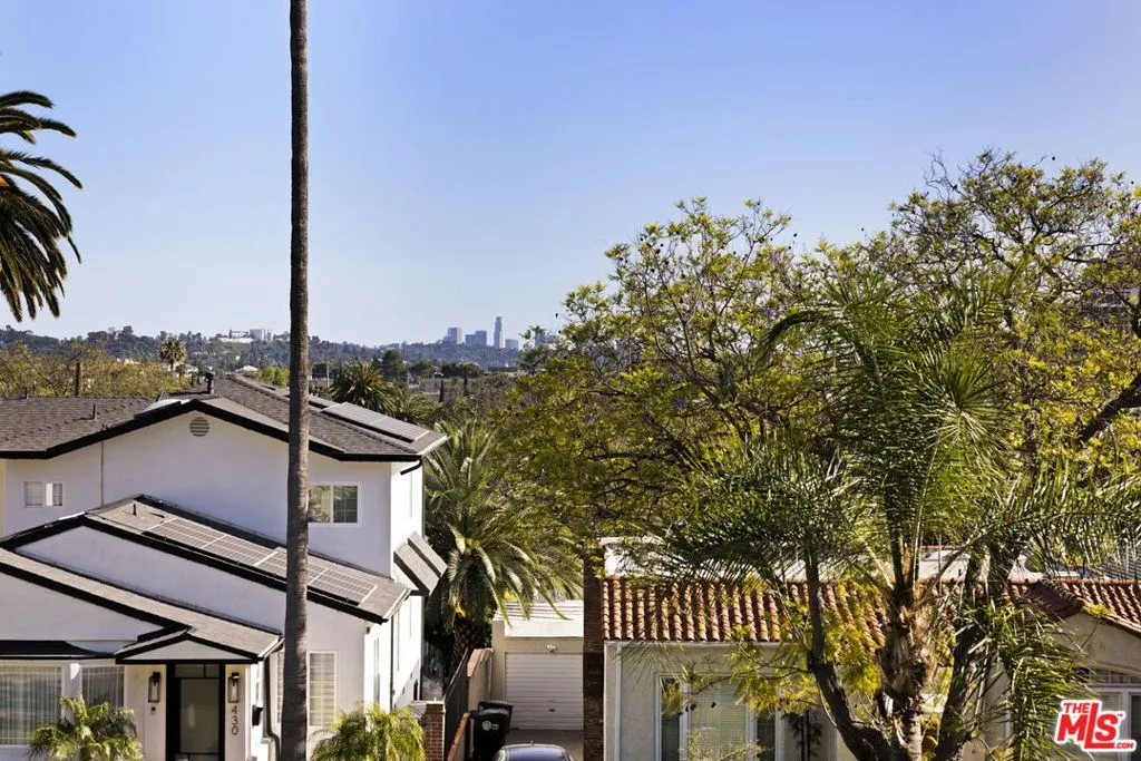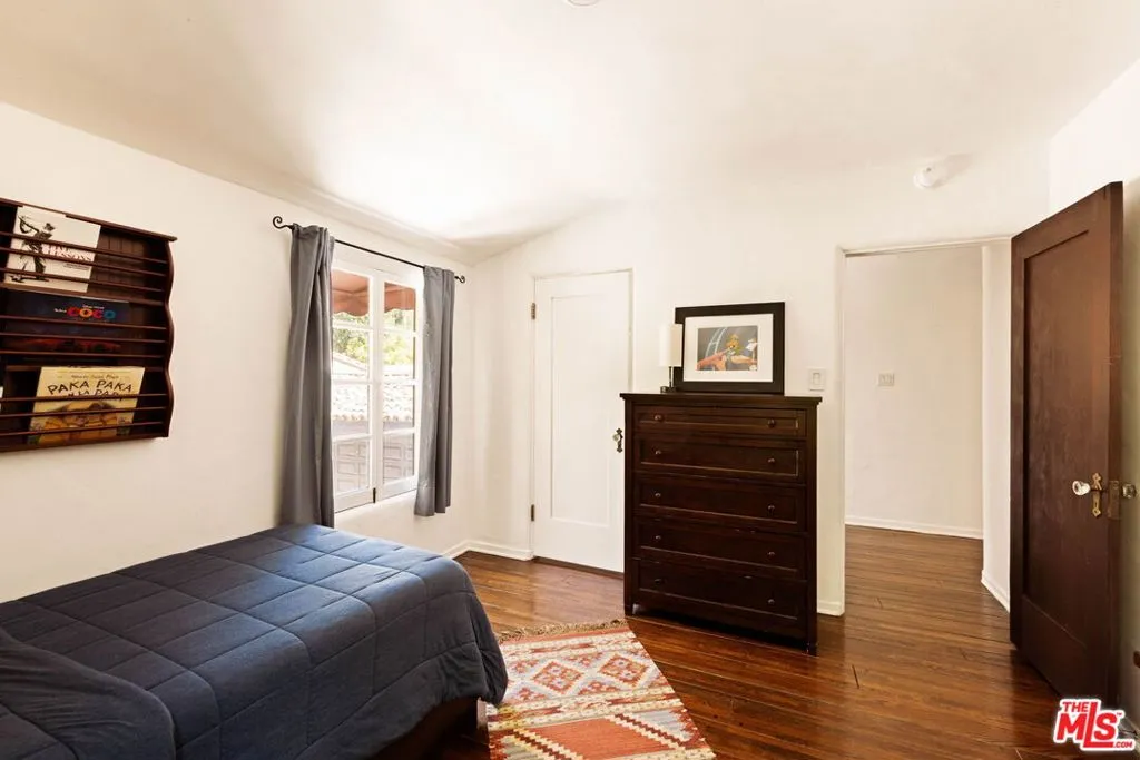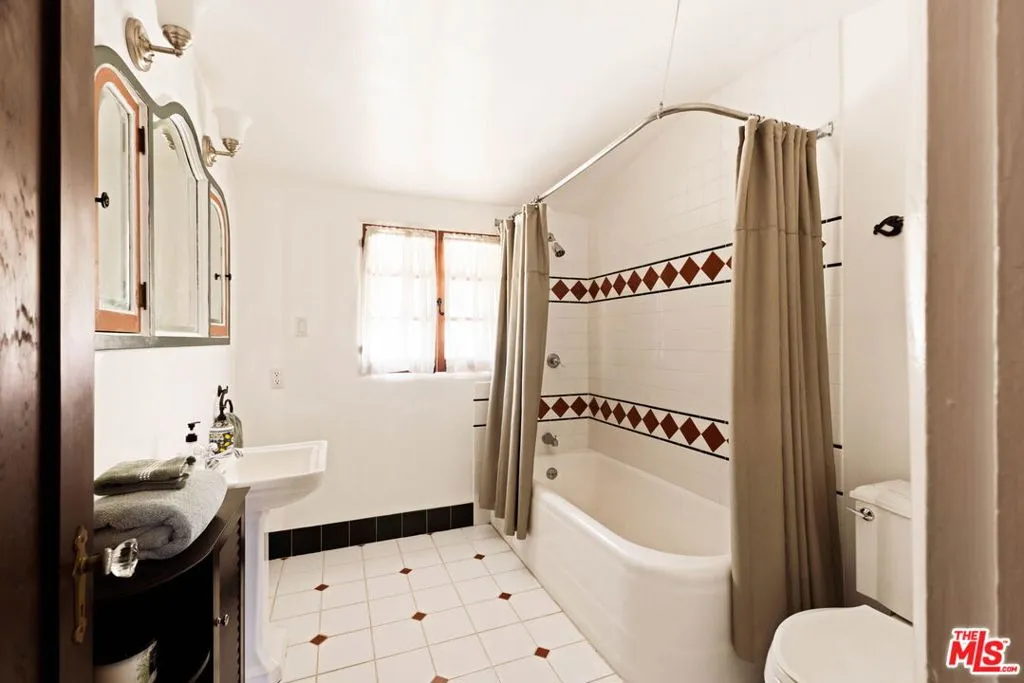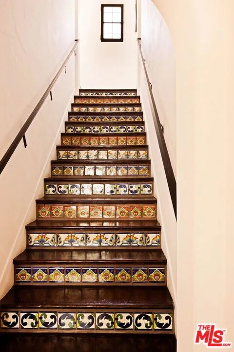 When Ben Sherwood, designer of Los Angeles' famed Snow White cottages, built this home in Rossmoyne, he chose a gently elevated lot and positioned it to capture sweeping views toward Downtown Los Angeles and the Glendale skyline, long before those skylines took shape. He brought with him a clear architectural sensibility rooted in old-world design, shaping a residence defined by intention, detail, and enduring charm. Set in Rossmoyne, the home opens to a front courtyard shaded by a mature tree, where a flagstone path and original mosaic tile at the entry mark a clear and memorable arrival. Exposed wood beams, hardwood floors, and a plaster fireplace give the living room its character, with built-ins and French doors opening back to the courtyard, where shifting light throughout the day adds a quiet, almost storybook quality to the space. Arched openings guide the flow into the dining room, where large French windows bring in natural light and the same beam detail continues overhead. The kitchen sits just off the dining room, with tilework that remains consistent with the home's period and character, and opens to a breakfast nook tucked beneath an arched ceiling with built-in niches, creating a small, tucked-away space that looks out to the garden, where mature roses and a bird bath attract a steady presence of seasonal birds. Upstairs, all three bedrooms are positioned away from the main living areas. The primary suite feels like a private retreat, with a sitting area, a fireplace, and French doors that open to a balcony overlooking the surrounding greenery and distant city views. A walk-in closet and a beautifully appointed bath complete the suite, in keeping with the home's overall character. A loggia-style outdoor living space extends directly from the main living areas, with exposed beams overhead, textured plaster walls, and an arched brick fireplace anchoring the space, which takes on a warm, atmospheric, and dreamy quality as the light fades in the evening. There is space here for both dining and seating, with easy access to additional patio and grassy areas beyond. The casita sits toward the rear of the lot and includes its own bathroom, offering flexibility for guests, a home office, or studio use. The street-to-street lot allows for access from Mountain, where a detached garage is positioned at the rear of the property. Throughout, tilework, plaster walls, wood beams, and arched transitions remain consistent with the home's period and character, reflecting Sherwood's approach to design and proportion. Later additions, including the casita and primary expansion, were also completed under his direction, maintaining continuity with the original structure.