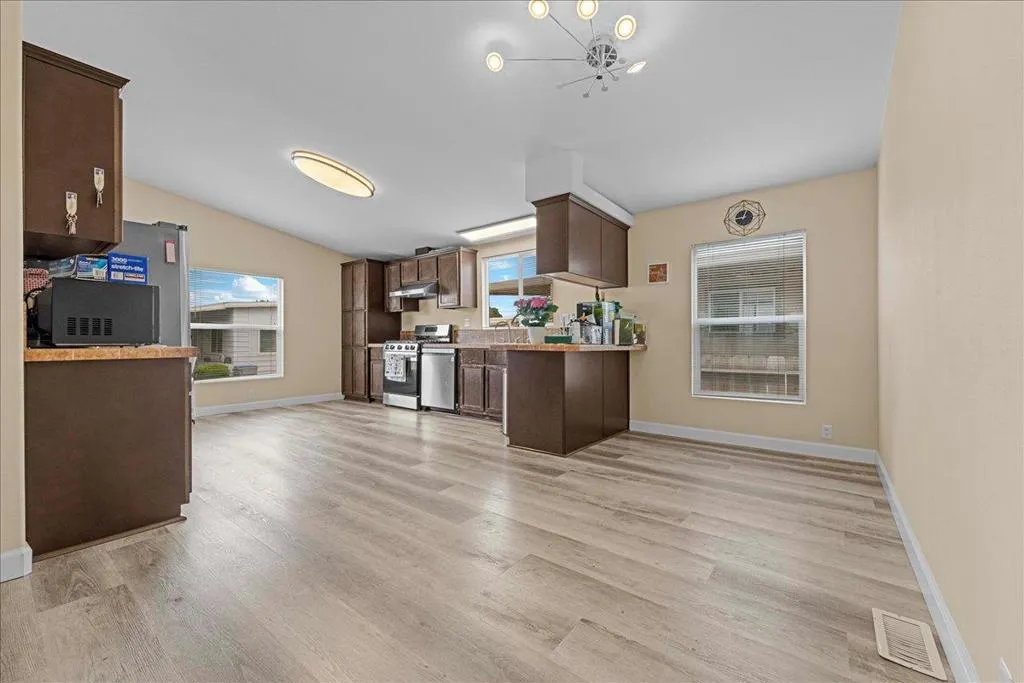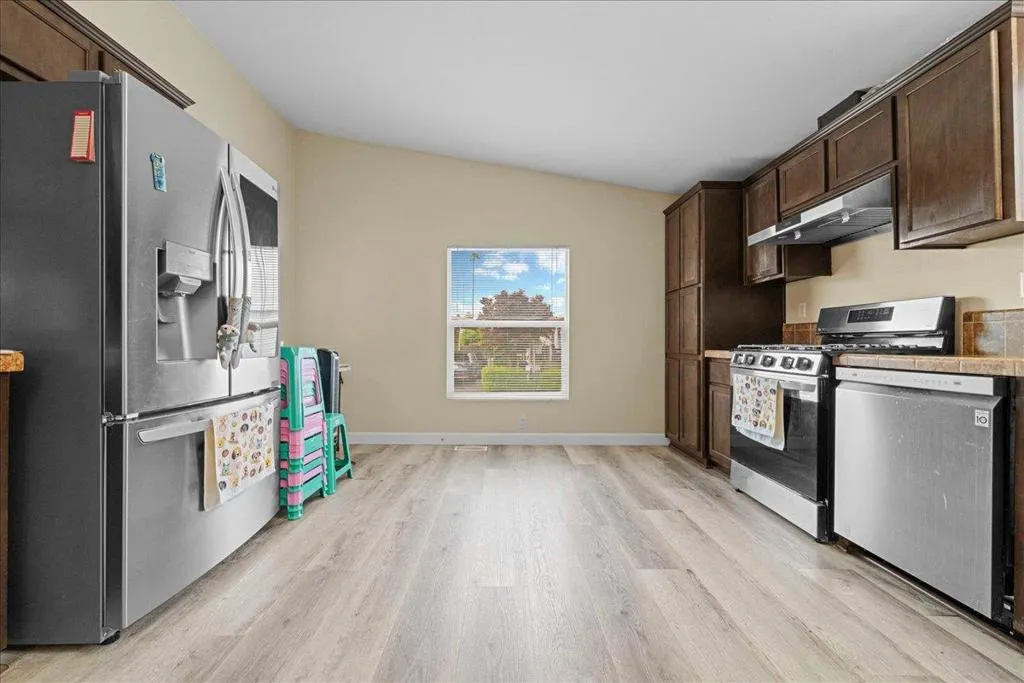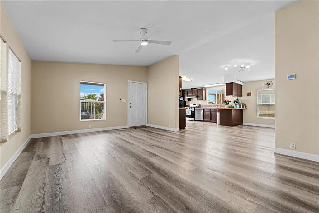 Beautiful Champion home with 3 bedrooms and 2 bathrooms, built in 2014 with 1,699 sq. ft. of living space. The home features a spacious living room with high ceilings and a bright kitchen with all appliances included. The large primary bedroom has a walk-in closet, and the bathroom includes a garden tub, separate shower, and extra cabinets. There is also a separate laundry room with washer and dryer. Central heating and air conditioning provide year-round comfort. The driveway fits up to 3 cars and includes storage sheds. The home is fully fenced for added privacy. Convenient location with easy access to freeways and shopping centers. ** Open House this Saturday 4/25/2026 From 1-4PM **