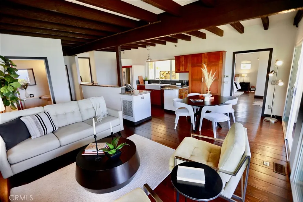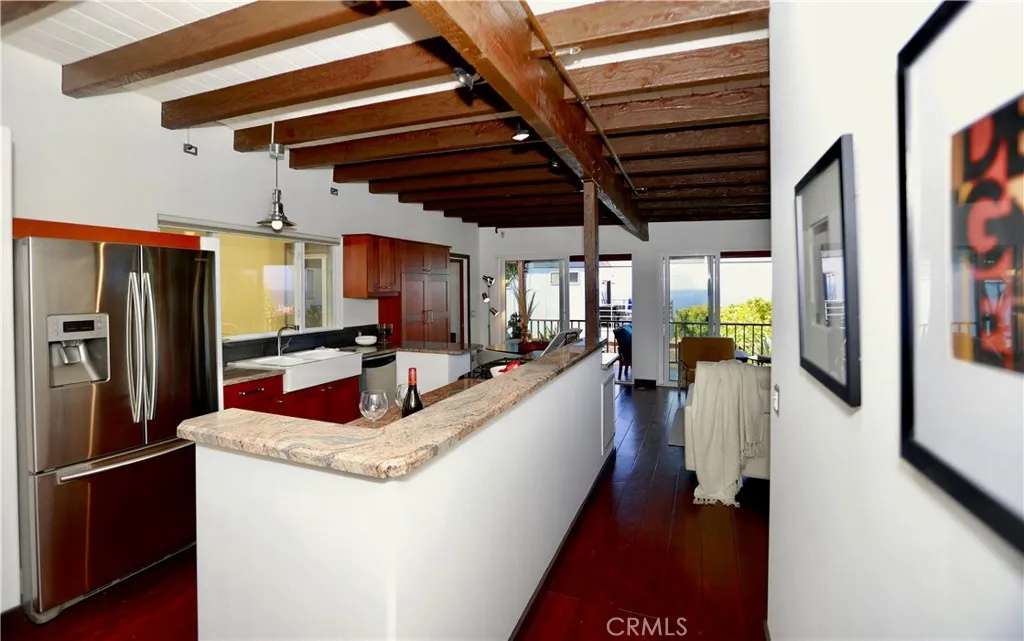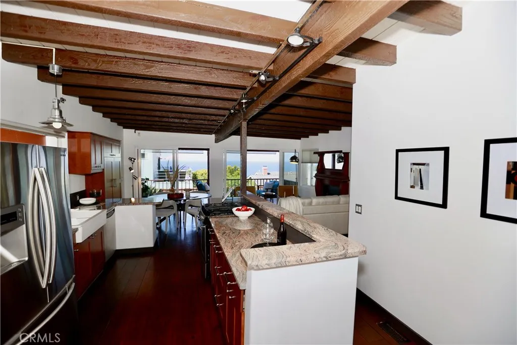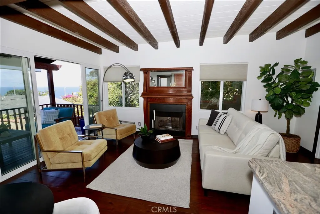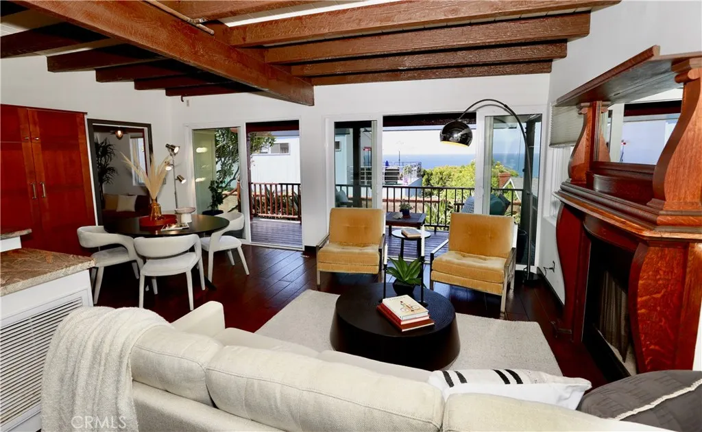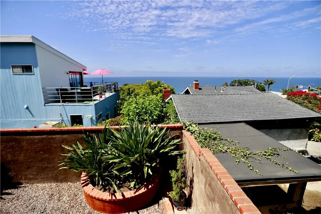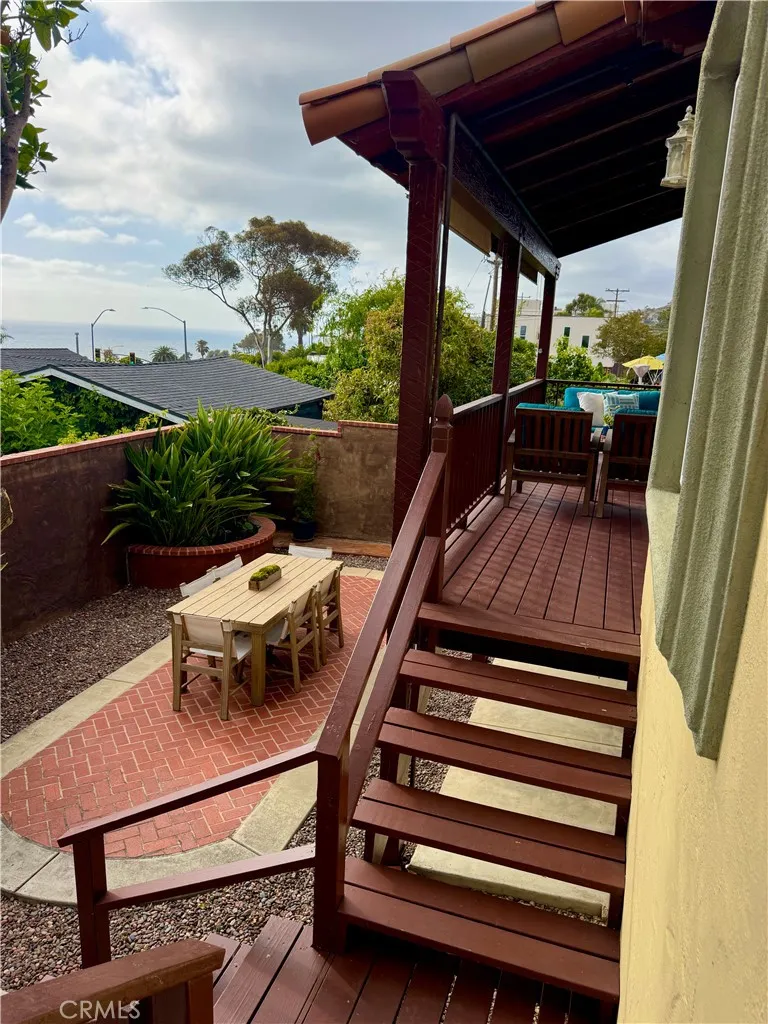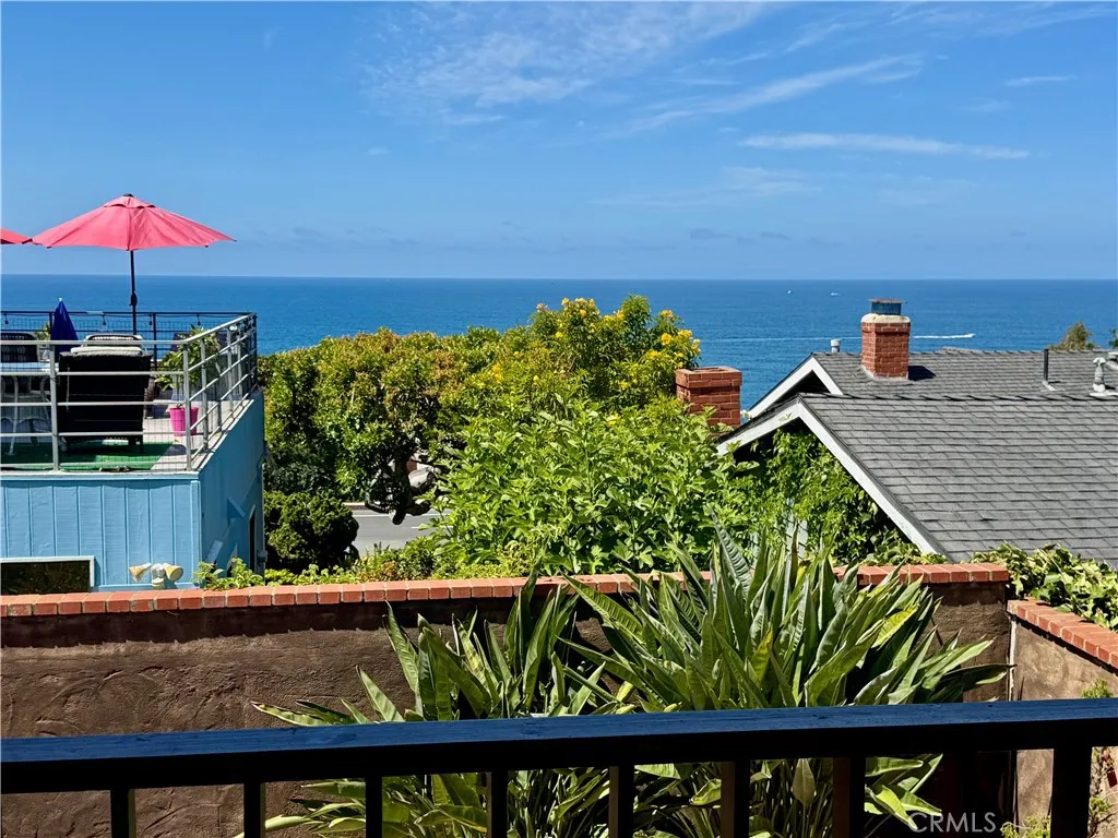 Boasting expansive ocean and sunset views, this single-level Laguna Beach home invites you through a private gated entrance into a charming courtyard that ensures complete privacy. Fully remodeled in 2014, the property is just a short stroll from Thousand Steps Beach and has been meticulously rejuvenated from top to bottom. The open, light-filled floor plan is accentuated by high open-beamed ceilings, creating a sense of spaciousness, while gorgeous wide plank hardwood and stone floors flow throughout. The main living area features three sliding doors that seamlessly connect to the deck, offering breathtaking vistas and opportunities for whale and dolphin watching. The primary bedroom has an en-suite bathroom and opens to its own private deck. All 3 bedrooms have a bathroom, one guest bedroom has a bathroom en-suite. With decks above and a bricked patio / yard below, the home provides an outstanding indoor/outdoor living experience, complemented by a lush yard with six citrus trees—orange, lemon, and grapefruit. Ample parking is available with a two-car garage and two additional off-street spaces, totaling four spots. Model-perfect with excellent Feng Shui, this remarkable home is truly an amazing place to call your own.