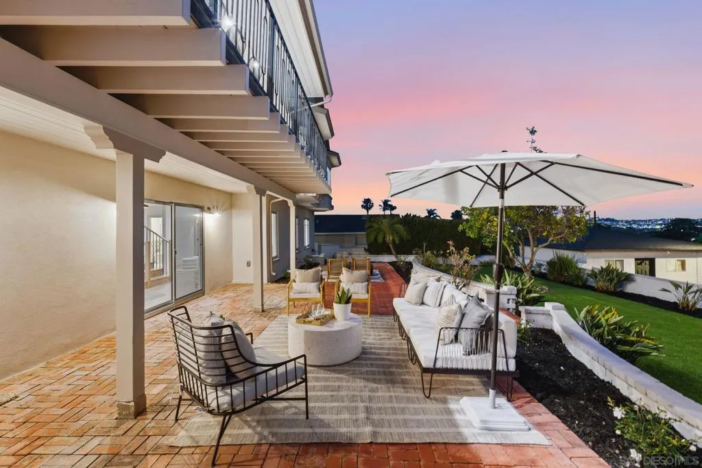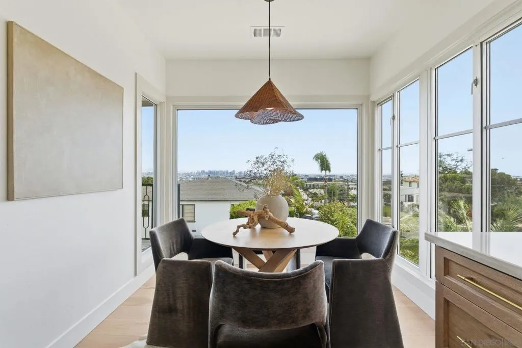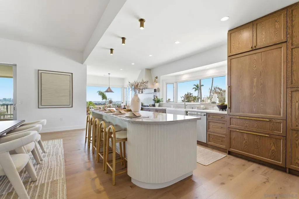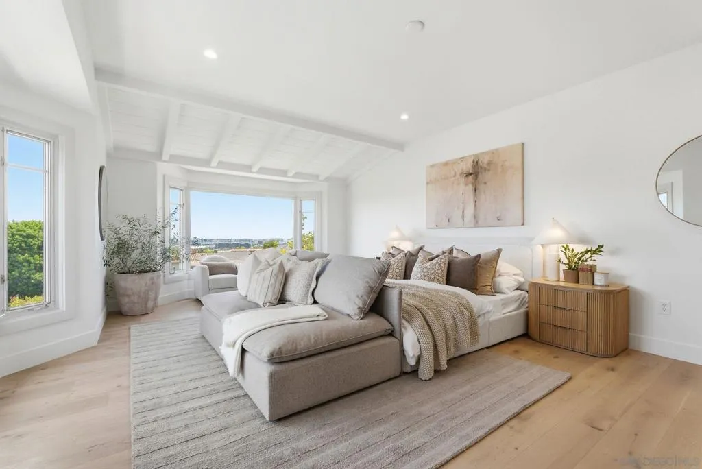 Stunning bay views stretching from Coronado to the San Diego downtown skyline and beyond! Relax and admire the magnificent panoramic views through your disappearing 4 panel, 20-foot pocket door. This designer’s dream property was newly renovated in 2026. Custom cabinetry, luxury lighting, state of the art appliances, with 4 of 5 bedrooms having walk in closets and ensuite bathrooms. Entertainers' backyard with plenty of space to add a pool, including ready to go pool renderings. Enjoy sunsets over the bay from your bedroom, living room or private patio. Experience the best of San Diego’s indoor-outdoor coastal living, with easy access to the beaches, downtown, the airport and all San Diego has to offer! Two laundry rooms! Upstairs and downstairs.