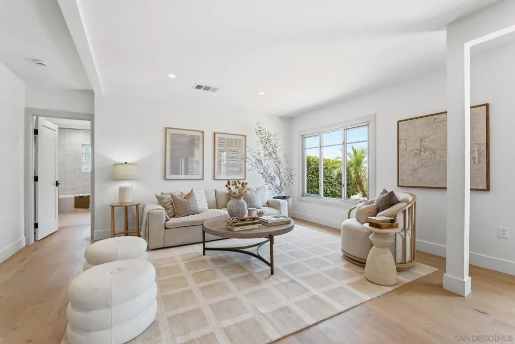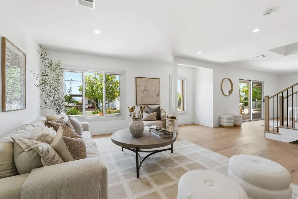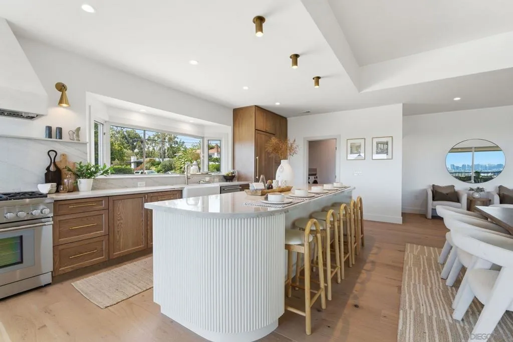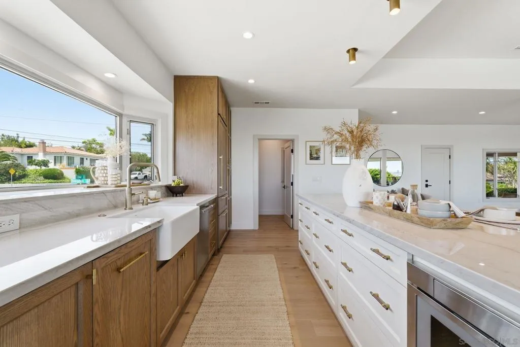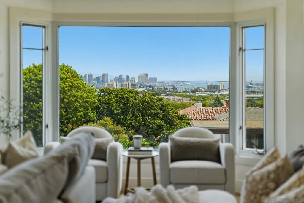 Stunning bay views stretching from Coronado to the San Diego downtown skyline and beyond! Relax and admire the magnificent panoramic views through your disappearing 4 panel, 20-foot pocket door. This designer’s dream property was newly renovated in 2026. Custom cabinetry, luxury lighting, state of the art appliances, with 4 of 5 bedrooms having walk in closets and ensuite bathrooms. Entertainers' backyard with plenty of space to add a pool, including ready to go pool renderings. Enjoy sunsets over the bay from your bedroom, living room or private patio. Experience the best of San Diego’s indoor-outdoor coastal living, with easy access to the beaches, downtown, the airport and all San Diego has to offer! Two laundry rooms! Upstairs and downstairs.