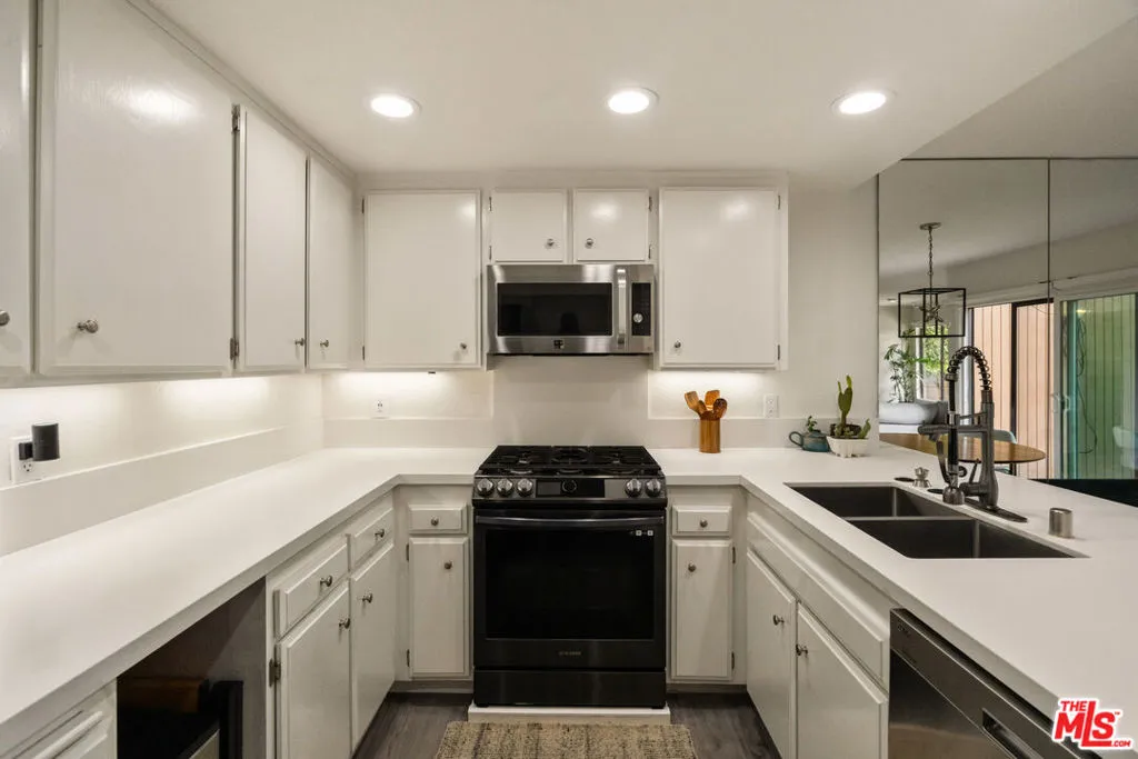 Welcome home to a light-filled sanctuary in the heart of Southwest Pasadena. A townhome residence on one of the best lots in the community, with serene views over the sparkling pool and landscaped grounds. Refreshed throughout, this two-story home offers beautiful natural light throughout, new flooring, an updated kitchen with timeless finishes, and a living room centered around a warm, inviting fireplace. The adjoining dining area opens seamlessly to a private patio, your own open-air retreat for morning coffee and evening wine. A newly renovated powder room anchors the main level with designer polish. Upstairs, the primary suite feels like a true escape, crowned by dramatic vaulted and beamed ceilings and complete with a newly renovated ensuite bath. A second bedroom and updated guest bath offer versatility for guests, work, or creativity. In-unit laundry and a detached two-car garage elevate the everyday, and the gated community is lush, quiet, and impeccably maintained. Outside your door: Arlington Garden, Jones Coffee, Old Town Pasadena, the Rose Bowl, and Mission Street in South Pas, plus effortless access to the 110, 134, and 210 freeways. A romantic, move-in-ready retreat that truly has it all. To access the unit for the open houses, please come via 91 Arlington, a quicker access to the unit. Welcome home!