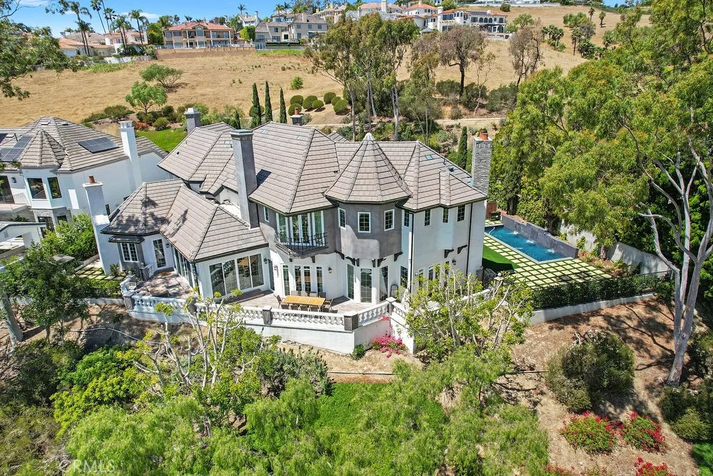 Truly an exceptional opportunity in the prestigious 24-hr, guard-gated community of Bear Brand Ranch. This beautifully remodeled estate offers 5 spacious bedrooms--all ensuite, 5 full bathrooms, and 1 half bath, all set on an expansive 17,000+ sq ft lot with approximately 5,939 sq ft of refined living space. Situated at the end of a cul-de-sac providing added privacy is just one of the many benefits of this incredible home. The double-door grand entrance, highlighted by an elegant chandelier, enters into a grand, open and spacious floor plan filled with an abundance of natural light with elevated ceilings. Designed for both everyday living and upscale entertaining, the home features a chef’s kitchen with a large center island, high-end finishes, 6-burner gas range, custom appliances and seamless flow into the dual main living areas, dining area and den. Ensuite bedroom downstairs and the dual staircases add architectural sophistication and convenience. The upper level, luxurious primary suite serves as a private retreat---complete with a soaking tub, oversized walk-in shower with double showerheads, dual vanities, large, custom designed walk-in closet, and a cozy sitting area. Enjoy indoor-outdoor California living at its finest with a private pool with 3 waterfall features, wraparound patio, and beautifully designed outdoor spaces perfect for year round entertaining. Additional highlights include a rare indoor basement wine cellar, a gated circular driveway with a fountain, and a 3-car attached oversized garage. This incredible location is minutes to the Ritz Carlton & Waldorf Resorts, as well as the world-renowned Salt Creek beach with incredible surfing breaks. Equally close to Dana Point Harbor & Lantern District offering numerous shopping and dining opportunities. At this price, it is a remarkable opportunity in "Bear Brand". Truly a ‘Must See’!