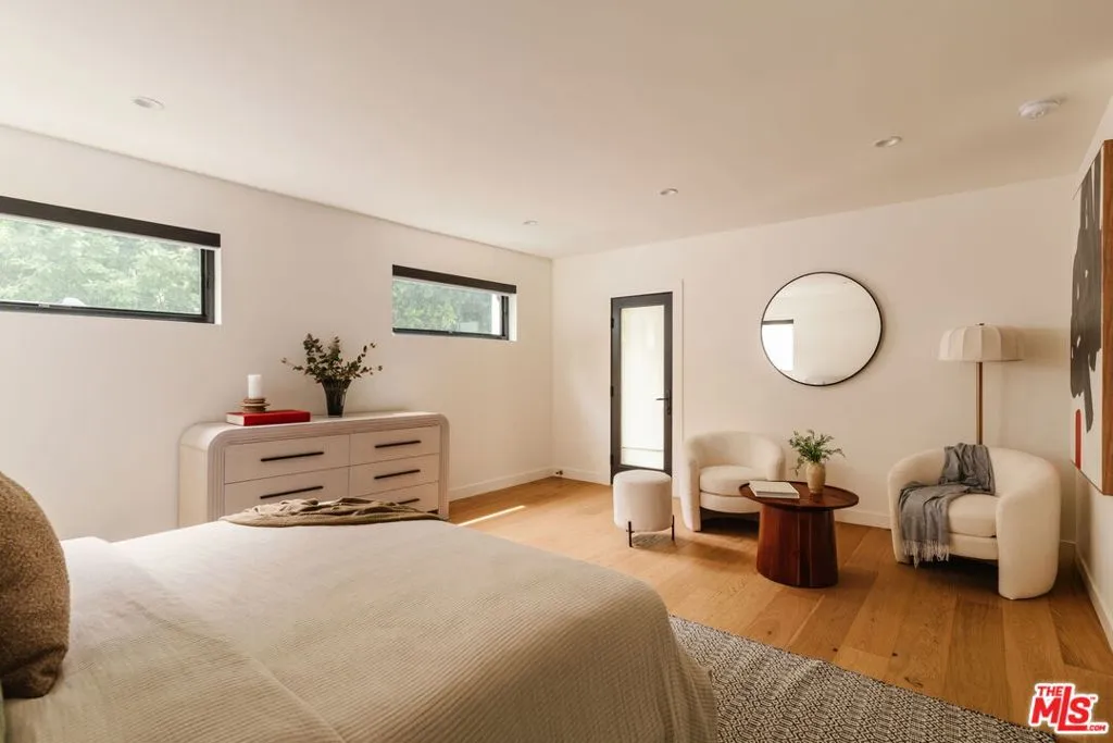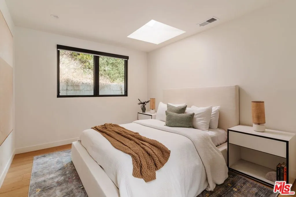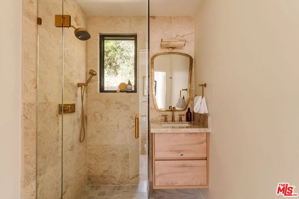 This designer built 3 bedroom, 3 bath contemporary home is tucked away in the coveted Beverly Hills Post Office, offering privacy, thoughtful design, and modern functionality. Fully remodeled down to the studs, the home features a seamless open layout where the chef's kitchen, complete with Thermador appliances and Brazilian quartzite countertops, flows effortlessly into the living space and out to an inviting deck, ideal for indoor outdoor living. Bathrooms are finished with Italian marble and refined brass fixtures, while the primary suite offers abundant natural light and a spa like bath with a tranquil outdoor outlook. Two additional bedrooms include a well appointed guest room and a separate lower level suite with a private entrance and ensuite bath, offering flexibility for guests, a studio, or workspace. Surrounded by canyon greenery, the outdoor spaces include multiple areas for dining and lounging, creating a quiet retreat just minutes from Beverly Hills, the Beverly Hills Hotel, and Rodeo Drive. Additional features include a two car garage and rare off street parking.