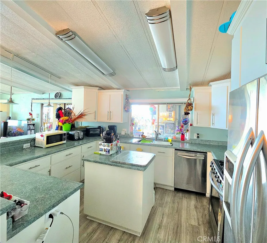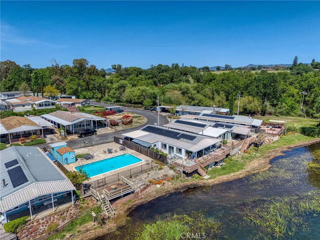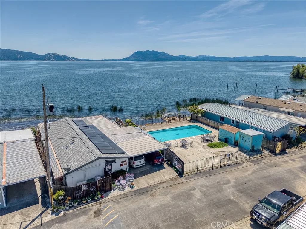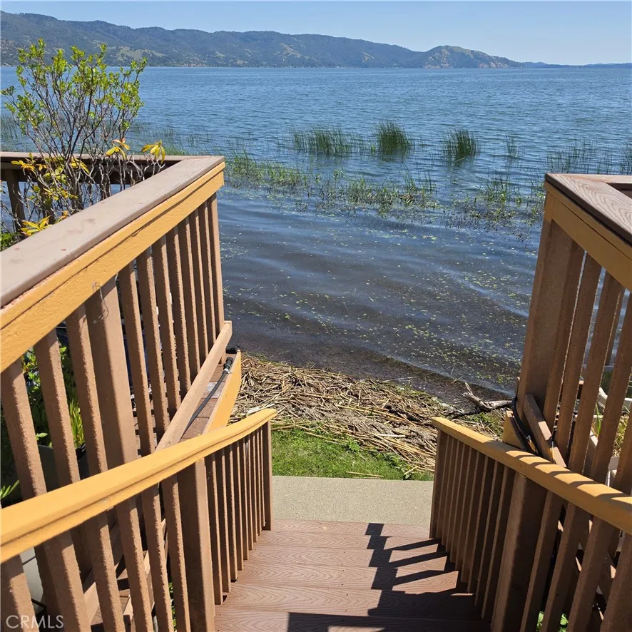 This beautifully situated double-wide manufactured home in a welcoming 55+ community park, offers an exceptional opportunity to enjoy true lake front living. This home features a spacious deck with private steps that lead directly down to the shoreline, perfect those hot summer days. Enjoy the peaceful mornings watching the beautiful sunrise and stunning views of Mount Konocti. The home features dramatic floor-to-ceiling windows that brings the outdoors in, filling the living space with natural light, showcasing the stunning scenery. This home is great for entertaining, live in it full time or use for a weekend getaway.