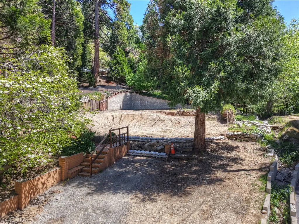 Ready-to-go vacant lot with LASCD WATER AND SEWER!! Water meter up-to date. House burned down a few years ago so there are some beautiful mature plants, brick steps and walkway and front garden area remaining. Additionally established herbs like rosemary, mountain sage, honeysuckle, dogwoods and even a fruit tree are blooming. Rear retaining wall remains. Stream runs along the right side of the property and is contained or lined with large granite hand picked stonework creating a really pretty mountian aesthetic. Pretty setting and gentle lot and building site. In-town location just off Hook Creek. Nice setting yet just up from the little mountain town of Cedar Glen offering shops, the post office, restaurants, a hardware store, flower shop and Cedar Glen Fine Foods Market, not to mention the Malt Shop just up the road!!! The lot is very accessible just off a year-round maintained road. In case you need more to do, Lake Arrowhead Village is about 10 minutes away.