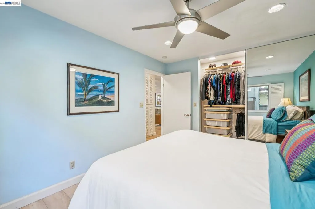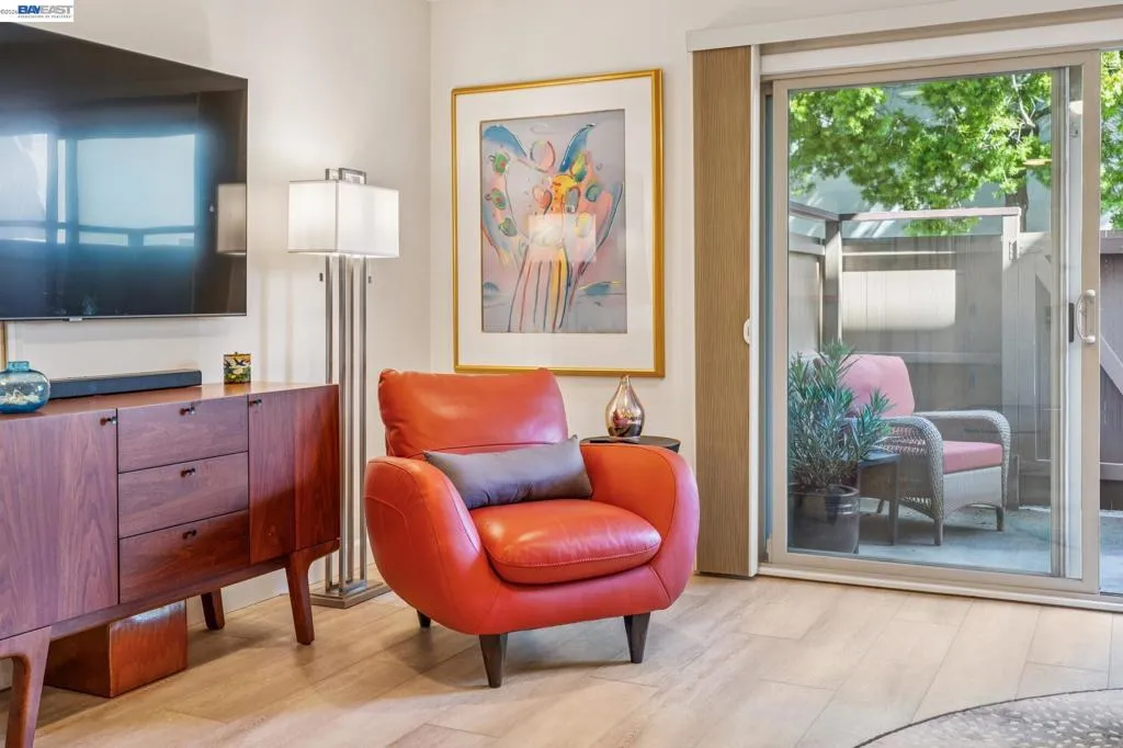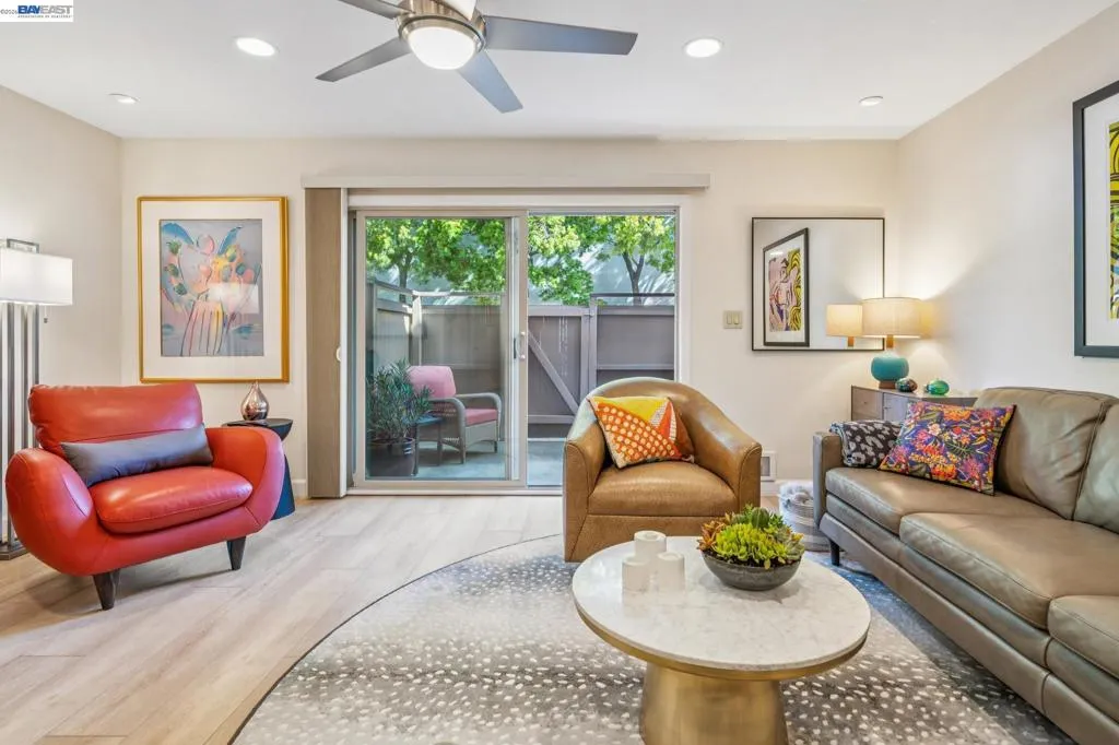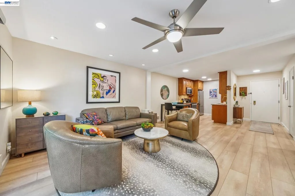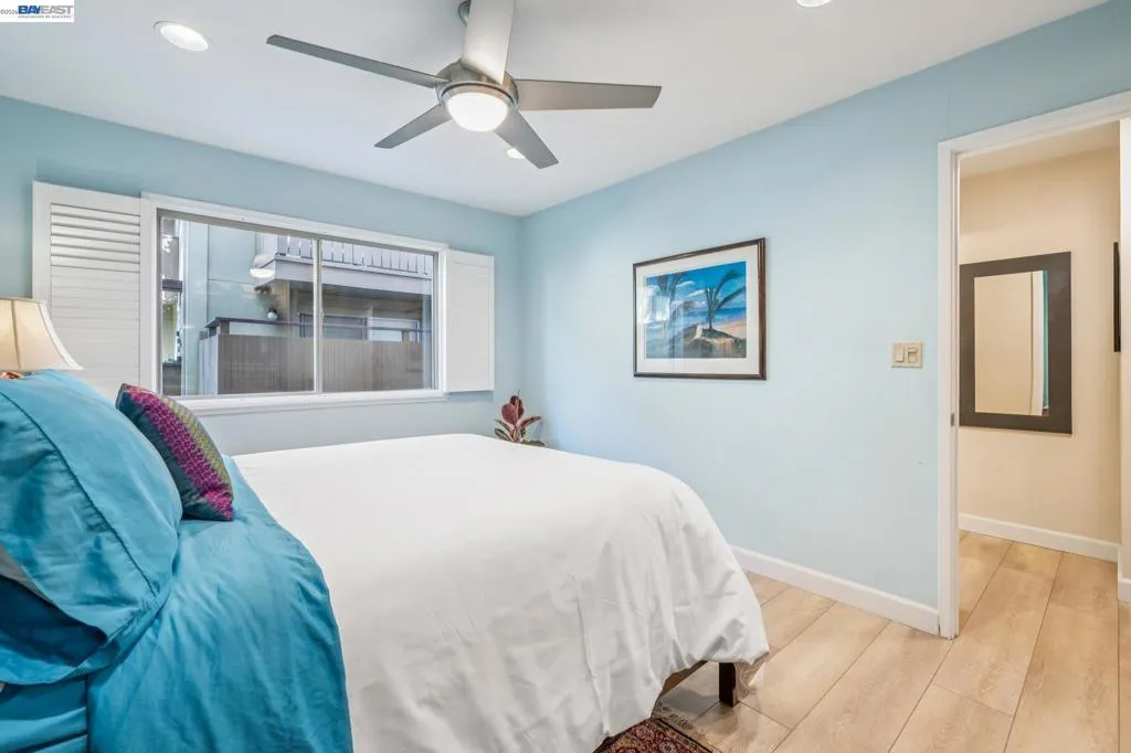 Live like you’re on vacation in this upgraded 1BD/1BA ground-floor condominium in Alameda’s Park Webster Community. Just blocks from the beach, lively Webster Street, and excellent parks, this 690 SQFT home offers an easy island lifestyle with a private patio entrance, extra storage unit across the hall, and your dedicated parking space steps away, right outside the patio gate. The home lives large with a generous living and dining area, where a sliding glass door opens directly to the fenced patio for seamless indoor/outdoor living. Whether entertaining friends or enjoying a quiet morning, this outdoor space feels like an extension of the home. Inside, new hardwood floors and recessed lighting flow into the inviting kitchen, complete with stainless steel appliances and a new refrigerator. The bedroom is spacious, with a sunny window and custom Elfa Closet system, while the stylish bathroom has been thoughtfully updated with a new vanity, lighting, and a barn-style tub shower door. Additional upgrades include new ceiling fans, fresh paint, and updated window treatments. Park Webster is a gated community with amenities including a swimming pool, clubhouse, gym, sauna, extra storage, and on-site laundry. Out your front door, enjoy nearby Washington Park with tennis, basketball courts, and the dog park. Alameda’s shoreline is moments away, with Crab Cove, Crown Memorial State Beach and miles of scenic trails. Shopping, dining, and daily conveniences are close at hand on Webster Street, Alameda Landing, the twice weekly Farmers Market, and Shoreline Shopping Center. Commuters will appreciate easy access to the SF Ferry, Transbay bus lines, and BART shuttles.