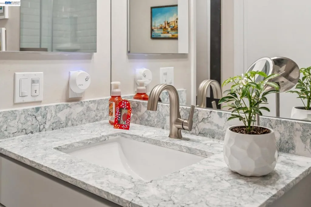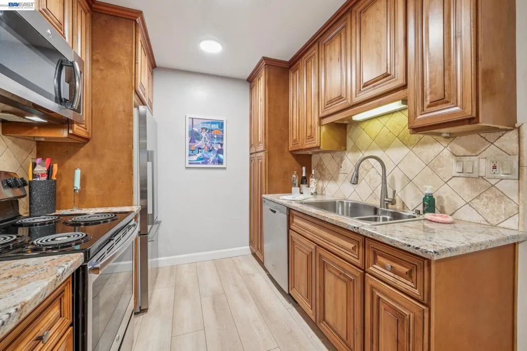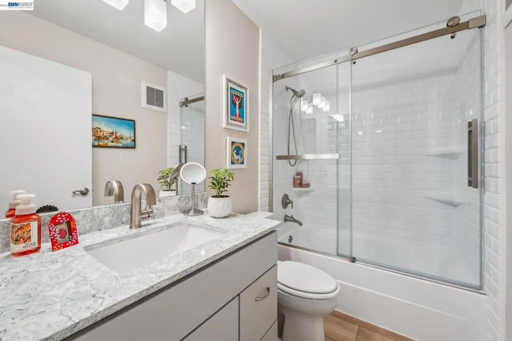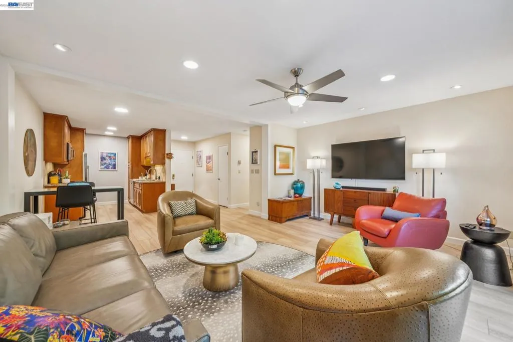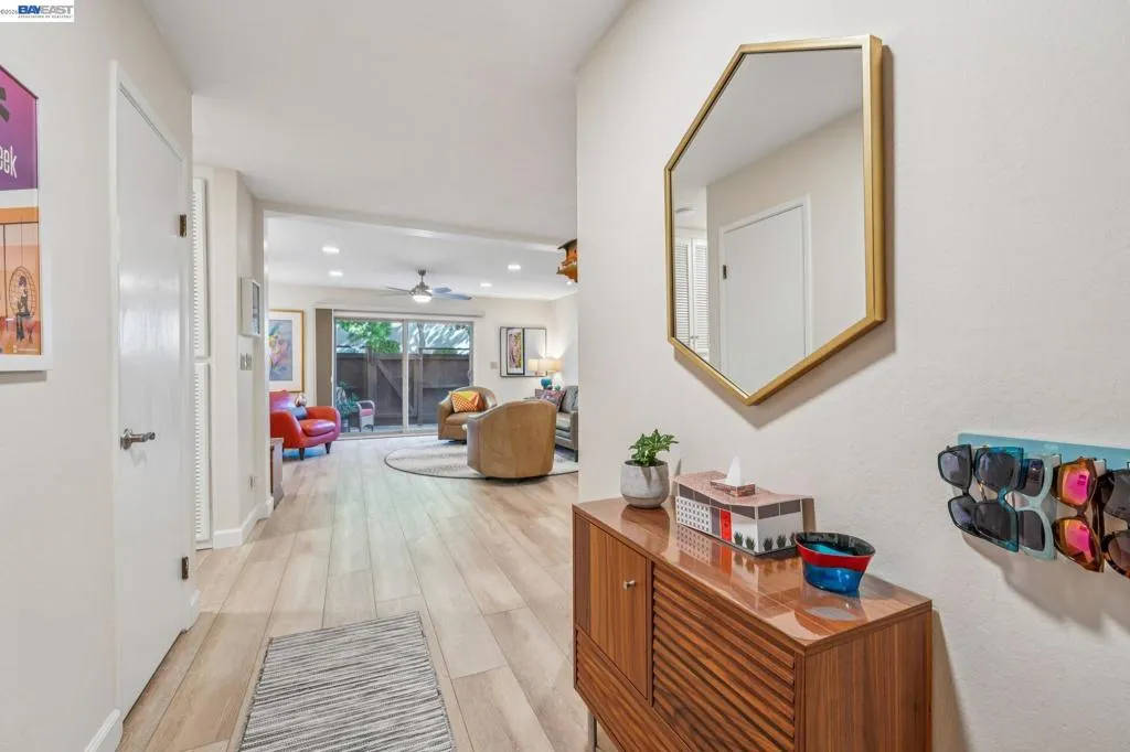 Live like you’re on vacation in this upgraded 1BD/1BA ground-floor condominium in Alameda’s Park Webster Community. Just blocks from the beach, lively Webster Street, and excellent parks, this 690 SQFT home offers an easy island lifestyle with a private patio entrance, extra storage unit across the hall, and your dedicated parking space steps away, right outside the patio gate. The home lives large with a generous living and dining area, where a sliding glass door opens directly to the fenced patio for seamless indoor/outdoor living. Whether entertaining friends or enjoying a quiet morning, this outdoor space feels like an extension of the home. Inside, new hardwood floors and recessed lighting flow into the inviting kitchen, complete with stainless steel appliances and a new refrigerator. The bedroom is spacious, with a sunny window and custom Elfa Closet system, while the stylish bathroom has been thoughtfully updated with a new vanity, lighting, and a barn-style tub shower door. Additional upgrades include new ceiling fans, fresh paint, and updated window treatments. Park Webster is a gated community with amenities including a swimming pool, clubhouse, gym, sauna, extra storage, and on-site laundry. Out your front door, enjoy nearby Washington Park with tennis, basketball courts, and the dog park. Alameda’s shoreline is moments away, with Crab Cove, Crown Memorial State Beach and miles of scenic trails. Shopping, dining, and daily conveniences are close at hand on Webster Street, Alameda Landing, the twice weekly Farmers Market, and Shoreline Shopping Center. Commuters will appreciate easy access to the SF Ferry, Transbay bus lines, and BART shuttles.