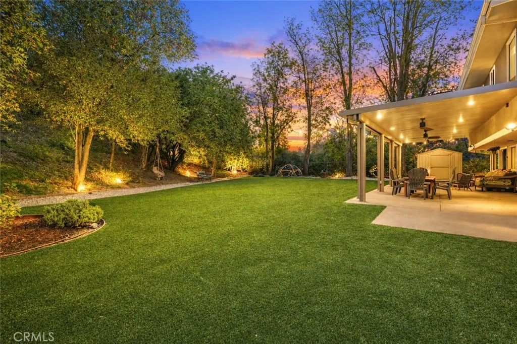 Welcome to this freshly painted and charming home, thoughtfully updated to offer a bright and inviting living experience. offering warmth, light, and exceptional versatility. Step inside to a bright, light-filled floor plan designed for modern living. The spacious living room features a cozy fireplace and flows seamlessly into the dining area, highlighted by romantic farmhouse-inspired pendant lighting. Expansive sliding glass doors flood the space with natural light and open to the lush backyard, creating an effortless indoor-outdoor connection. The gourmet kitchen is a true showstopper, featuring classic shaker-style cabinetry, sleek quartz countertops, and premium stainless steel appliances. Adjacent to the kitchen is a versatile space ideal for everyday dining, a family room, or a secondary living area. A stylish powder room with designer wallpaper completes the main level. Elegant hardwood flooring, new vinyl windows, and sliding glass doors enhance both style and energy efficiency throughout. The primary suite serves as a serene retreat with an ensuite bathroom and additional space perfect for a home office, gym, or yoga area. Abundant storage is found throughout, including hallway linen closets and generous bedroom closets. As you step outside, you’re welcomed into your own private paradise. Set on a fully fenced 17,431 sq.ft. lot, the backyard offers exceptional privacy with low-maintenance artificial turf, planted roses, and a covered patio ideal for entertaining or peaceful evenings. The expansive yard provides room for gatherings, play, and future potential for a pool or custom outdoor retreat. Whether hosting weekend BBQs with friends and family or unwinding in your own serene sanctuary, this backyard is truly an extension of the home’s lifestyle-focused design. Schedule your private tour today.