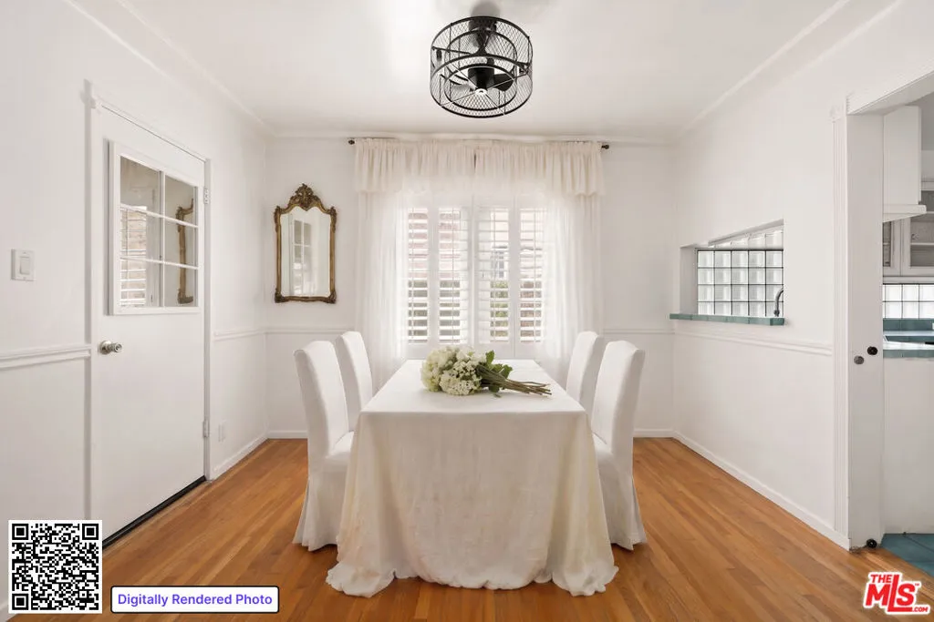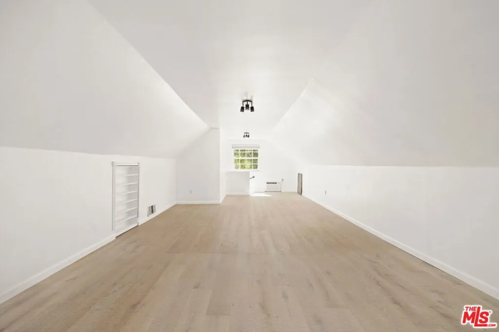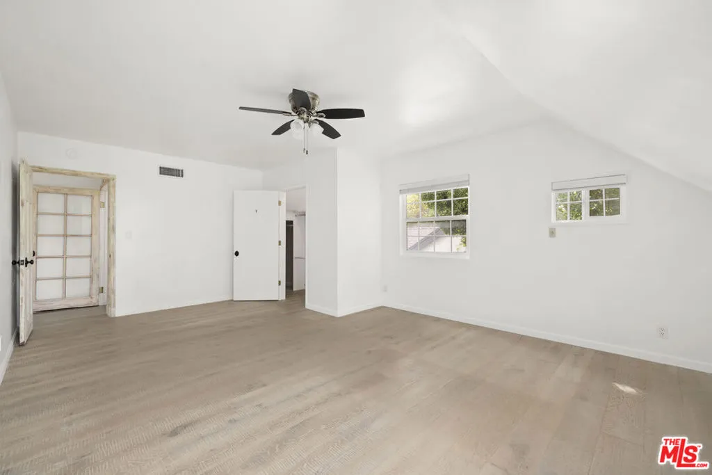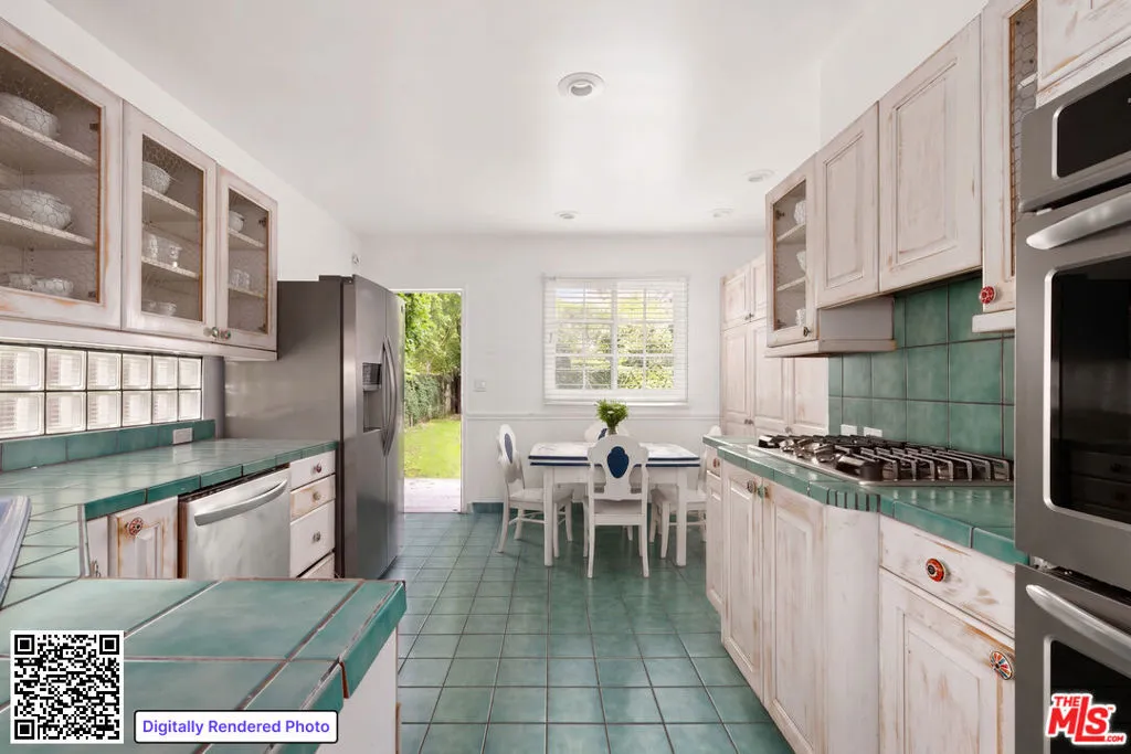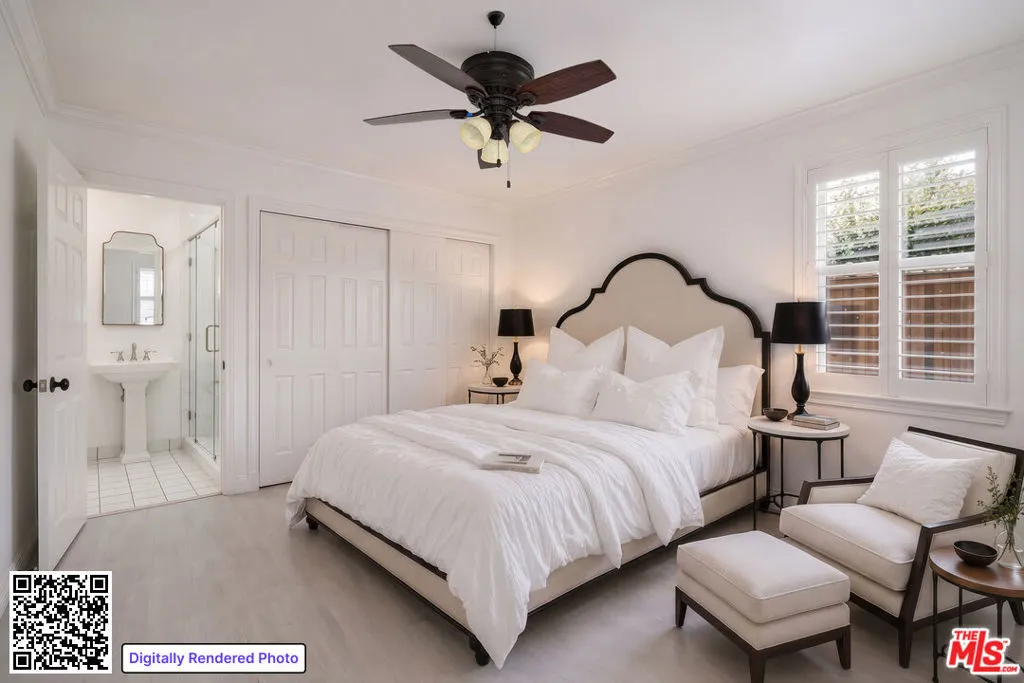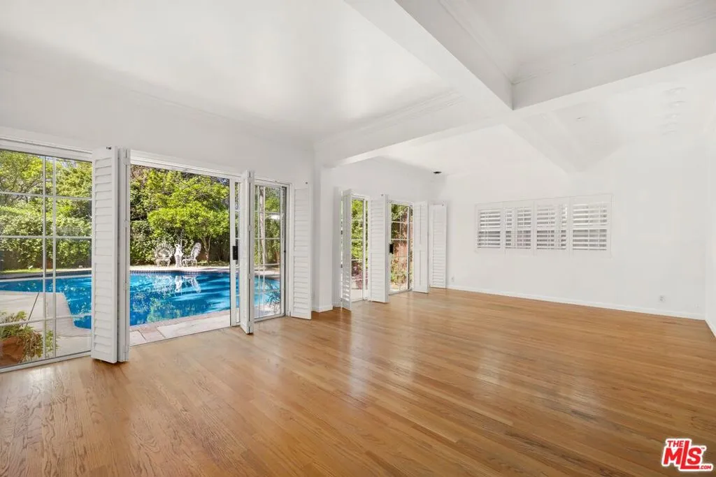 Gentry Rose Manor evokes the romance and charm of a storybook English cottage, reimagined at an impressive approximately 3,800-square-foot scale within Studio City's historic and coveted "The Grove" enclave. Tucked along a quiet residential pocket, the residence unfolds through expansive living spaces. A built-in bar anchors multiple gathering areas, while walls of windows and oversized sliding glass doors blur the line between indoors and out, inviting natural light and garden views throughout. The vintage-inspired kitchen with breakfast nook pairs beautifully with a formal dining room, and a first-floor ensuite bedroom offers ideal flexibility for guests, a home office, or multigenerational living. Upstairs, the spacious primary suite serves as a serene retreat, featuring a custom walk-in closet, an elegant ensuite bath, and a private terrace with treetop vistas overlooking the secluded backyard and pool. Two additional generously sized guest bedrooms on the second floor each feature walk-in closets and share a well-appointed bathroom with classic finishes. An additional upper-level suite provides versatile space for guest quarters, a creative studio, gym, or optional fifth bedroom. Outside, enchanting lush grounds surround a large pool designed for relaxation and entertaining, while a direct-access garage adds everyday convenience. The upper level also offers extensive hidden storage, thoughtfully finished with hardwood flooring and sheetrock along both sides, including a window-lined nook providing an abundance of functional and easily accessible space. Ideally positioned near Ventura Boulevard's celebrated dining, shopping, and cafes, the Studio City Farmers Market, and Radford (CBS) Studio Center, where legendary early television and film history originated, and just minutes from Universal Studios and the Metro Line, the home is also located within the Carpenter Community Charter and Walter Reed Middle School districts.