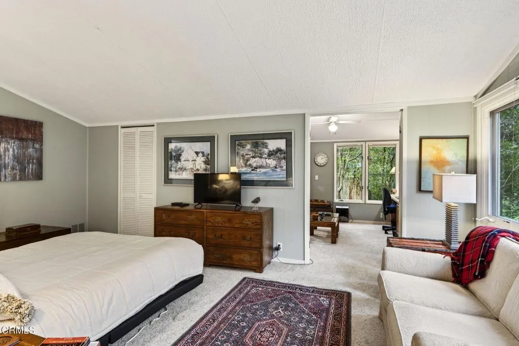 Spacious and beautifully updated home in the sought-after 55+ community of The Woods, ideally located in the Little River sunbelt. This well-designed residence offers three generously sized bedrooms, each with its own en-suite bath, including a private primary suite featuring an adjoining office or fitness room and a luxurious bathroom with a soaking tub.The light-filled, remodeled kitchen is a standout, complete with a 5-burner gas cooktop, double ovens, abundant cabinetry, and an open layout that flows seamlessly into the living and dining areas--perfect for entertaining. The dining space features a propane fireplace and a large sliding door leading to the deck for easy indoor-outdoor living.Additional highlights include an attached two-car garage with ramp access to the home for added convenience. Enjoy comfort, privacy, and a peaceful setting in this welcoming community just minutes from the Mendocino Coast.