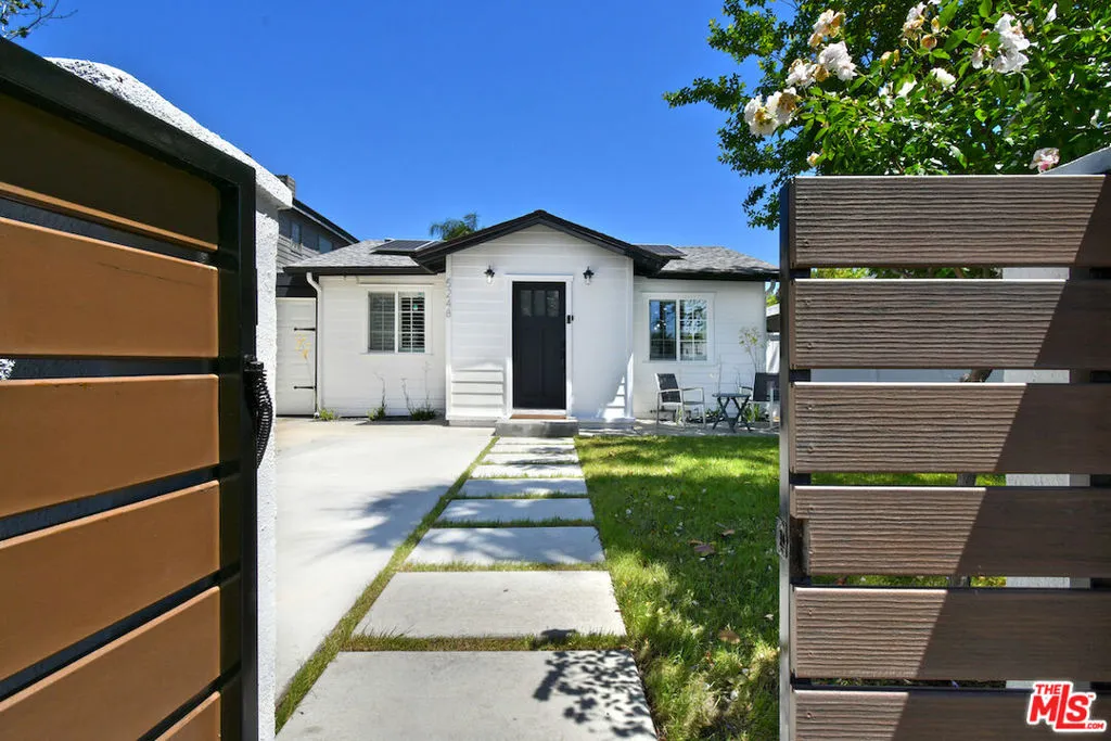 Gated and set back from the street, this single-story traditional home offers a light-filled, open floor plan with a comfortable flow for everyday living. The main living spaces are bright and inviting, with wide-plank flooring, recessed lighting, and multiple windows that bring in natural light. The remodeled kitchen features stainless steel appliances and a center island with bar seating, opening directly to the dining and living areas. The home has been fully updated and includes a newer roof and owned solar panels. A spacious primary bedroom includes an en suite bathroom. Outdoor areas are designed for both relaxation and entertaining, with a private backyard featuring a pool, spa, patio space, and a covered lounge area. A turnkey Sherman Oaks opportunity offering an ideal entry point into one of the Valley's most desirable neighborhoods, adjacent to Chandler Estates and close to parks, shopping, and dining.