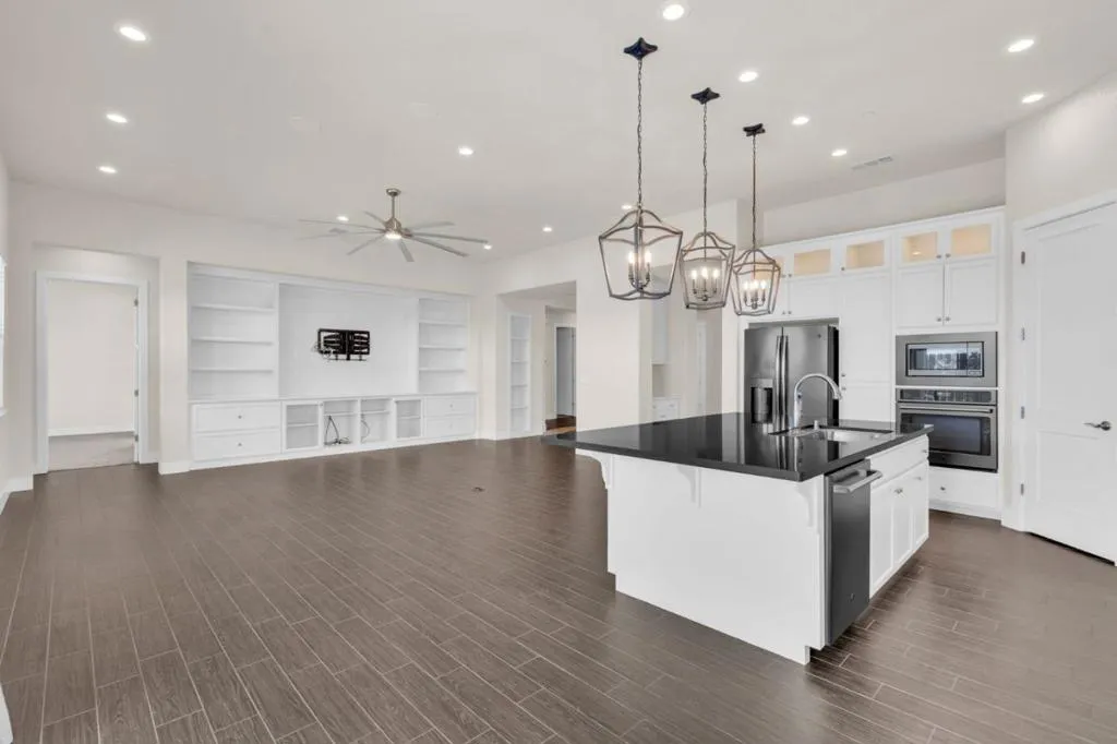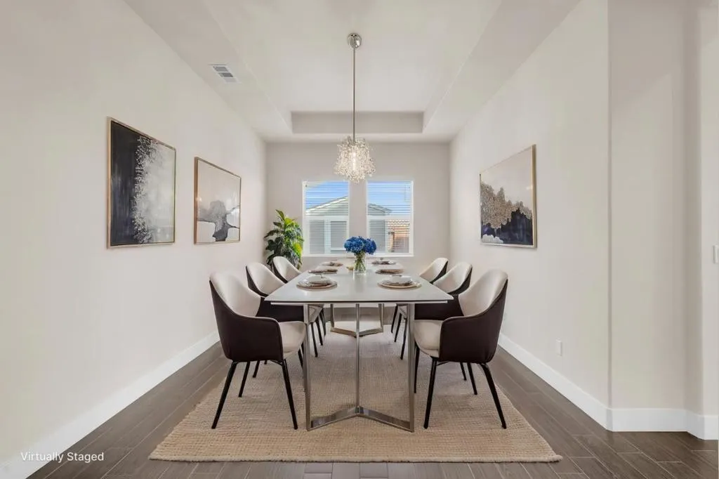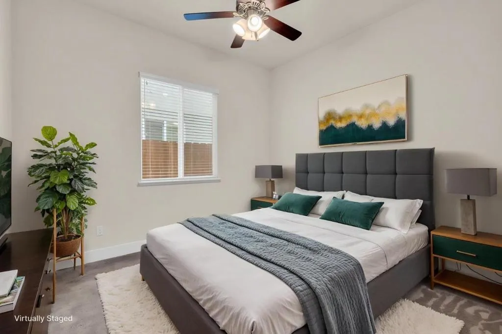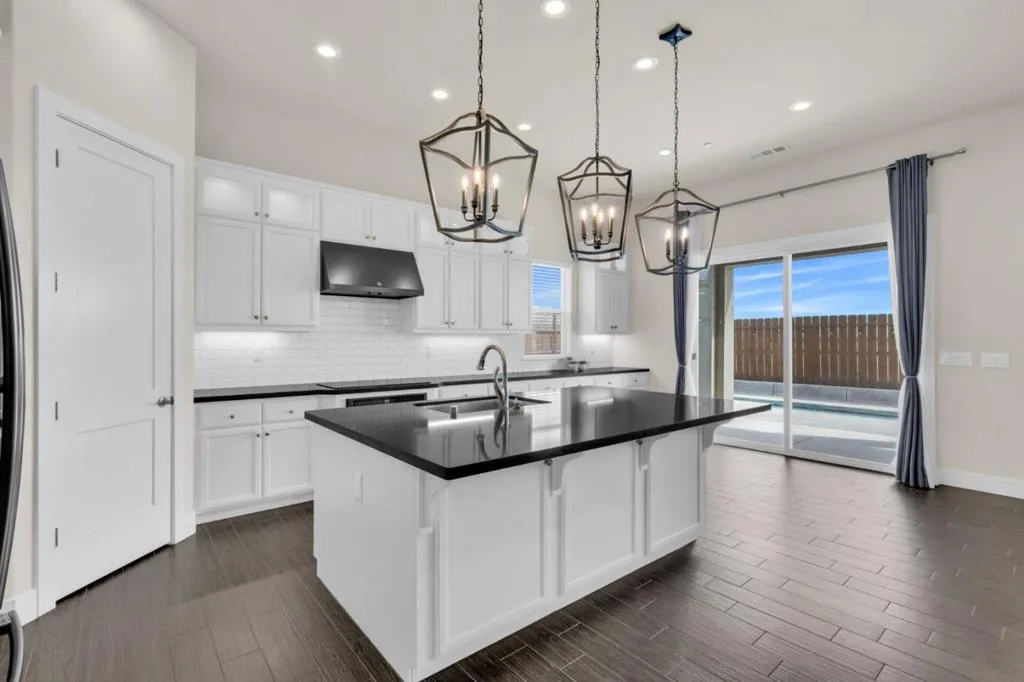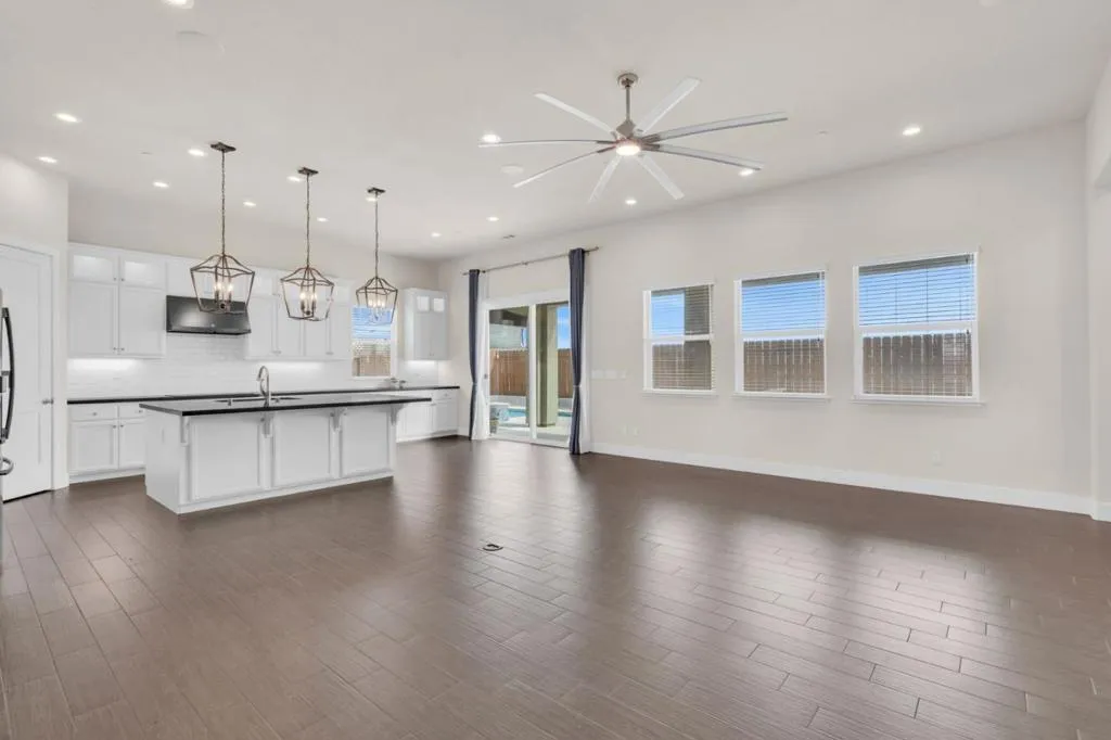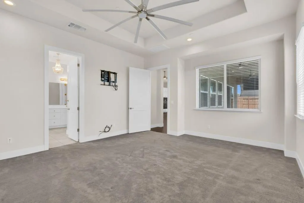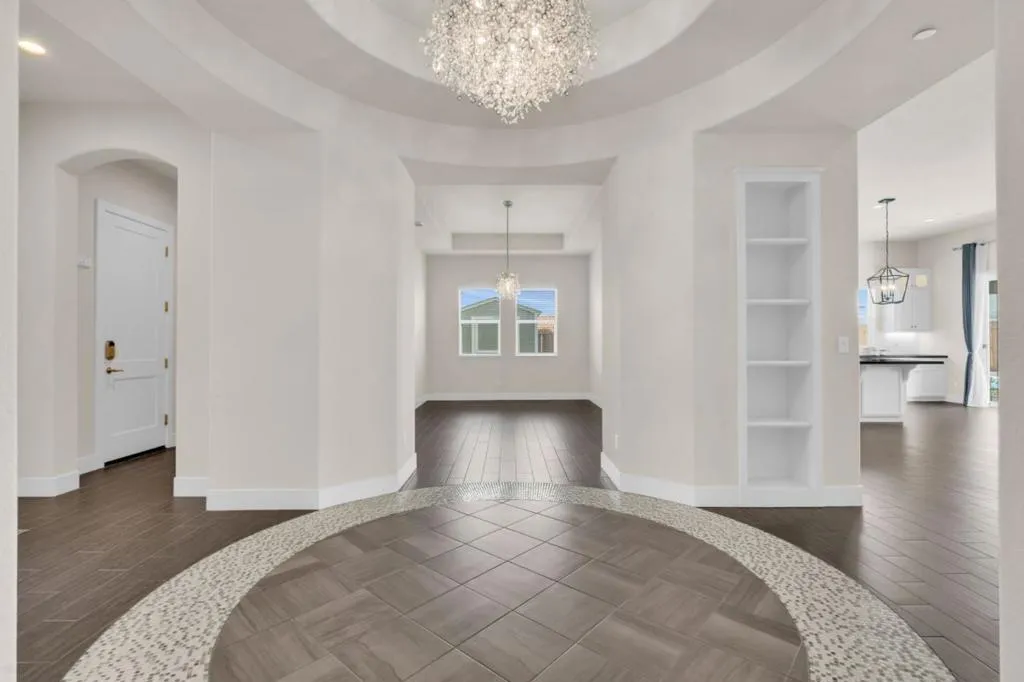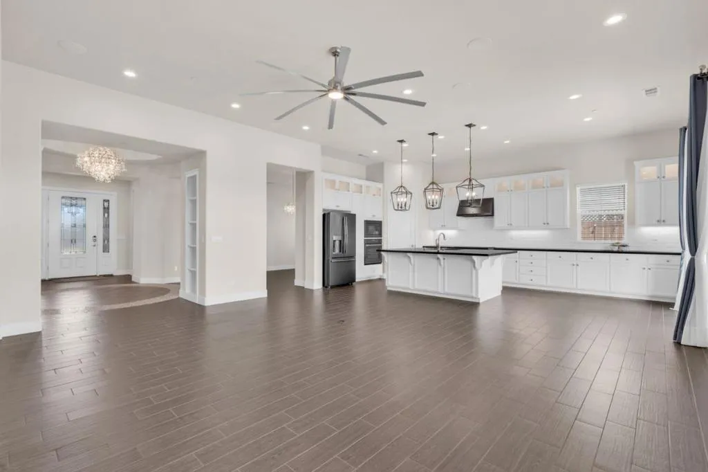 New listing in The Solera Collection! Crafted by Atherton Homes Phase #3 Patagonia Model, this elegantly appointed four-bedroom, 4-bathroom residence offers 2,718 square feet on a generous lot with RV parking in one of Manteca's most sought-after neighborhoods in RIPON school district. Inside, dramatic 12-13-foot coffered ceilings, a light-filled open floor plan, and refined finishes create an elevated sense of space for both everyday living and polished entertaining. Every detail feels curated, yet wonderfully livable. The kitchen and great room extend effortlessly to a resort-caliber backyard with an in-ground Gunite saltwater pool with lighting, an outdoor barbecue island with television, a gas fire pit, and a Tough Shed for discreet storage. OWNED SOLAR system, central heating & Air, a tankless water heater, Whole house fan, water filter & softener system, smart security flood lights with Ring cameras, and a (3) three-car garage with insulated doors enhance comfort and convenience. Moments from shopping at Walmart Supercenter and recreation at Great Wolf Lodge, this exceptional home delivers luxury with ease. Come experience this remarkable home in person and schedule your private tour today.