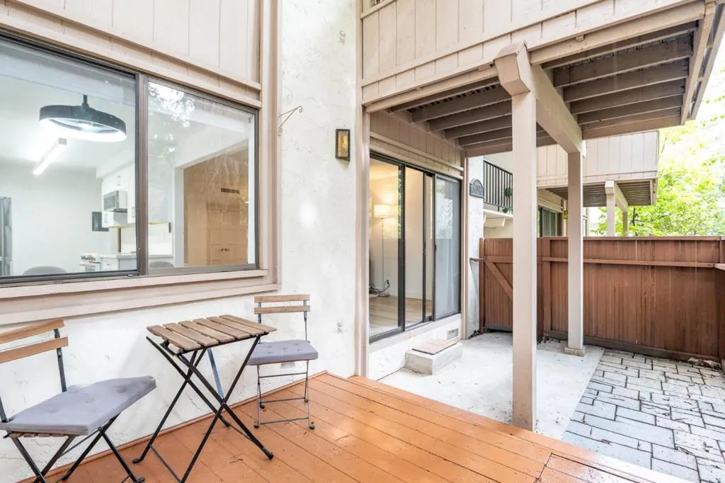 Welcome to this beautifully updated, ground-floor condo offering 876 sq. ft. of single-level living in Saratogas highly sought-after Gatehouse community! This light-filled 2BR/1BA residence features an open-concept design, fresh interior paint, a beautifully renovated bathroom, and modern wide-plank flooring throughout. The inviting living room is highlighted by a stunning new paneled gas fireplace and flows seamlessly into a gourmet kitchen boasting pristine white shaker cabinetry, elegant quartz countertops, and brand-new stainless steel appliances. Step outside through sliding glass doors to an expansive, private wooden deck enveloped by majestic redwoodsa perfect, tranquil outdoor oasis. Enjoy resort-style living with secure gated access, a sparkling pool, hot tub, clubhouse, game room, and lush landscaped greenbelts with scenic water features. Located in a prime Bay Area setting, you are just a short stroll to vibrant downtown Saratogas fine dining, boutique shopping, and the serene trails of Wildwood Park. Zoned for top-tier, award-winning Saratoga Schools, this move-in-ready home offers the ultimate blend of modern luxury and suburban tranquility!
