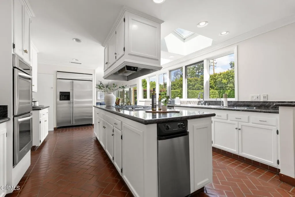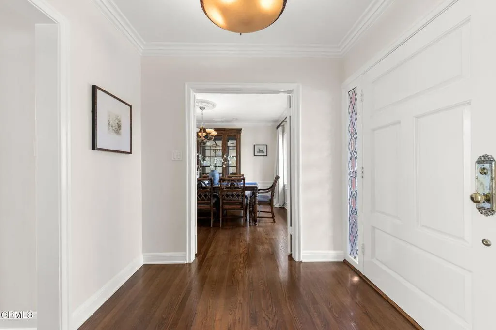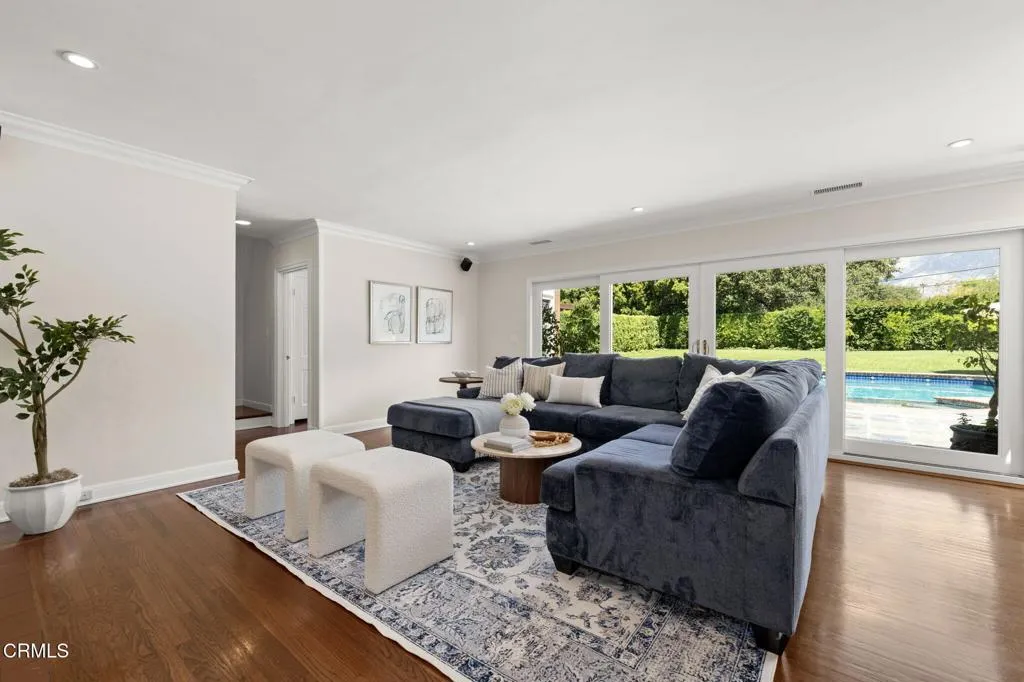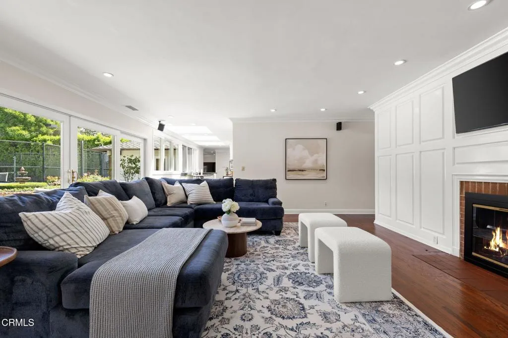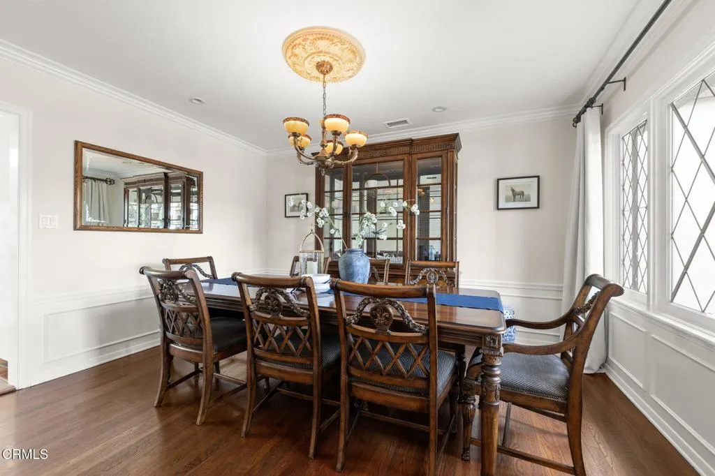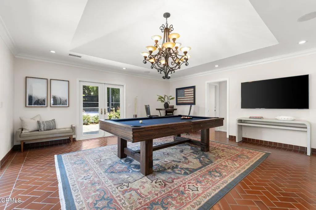 Nestled in the coveted Chapman Woods neighborhood of Pasadena, this timeless English Tudor estate exudes classic elegance and refined character. A circular brick driveway sets a grand first impression, leading into a residence rich with architectural detail and sophisticated design. Inside, the home offers an exceptional blend of formal and relaxed living spaces, including a stately formal living room, an inviting family room, and an expansive game room complete with a wet bar--perfectly suited for both intimate gatherings and large-scale entertaining. At the heart of the home, an open, light-filled kitchen overlooks the lush backyard, creating a seamless connection between indoor living and outdoor beauty. The private primary wing serves as a true retreat, showcasing a luxurious suite with a walk-in closet and its own dedicated library with a fireplace--an inviting and sophisticated sanctuary. Complementing the home are three nicely appointed bedroom en-suites, each designed for comfort and privacy. Ideally suited for multi-generational living, the residence also features a private guest suite tucked within the second-floor east wing. Outdoors, lush, manicured grounds create a resort-like setting with picturesque mountain views, a sparkling pool and spa, and a private sports court--offering endless opportunities for recreation and relaxation. Designed for both comfort and entertaining, this exceptional property embodies the very best of Pasadena living in one of its most sought-after communities.