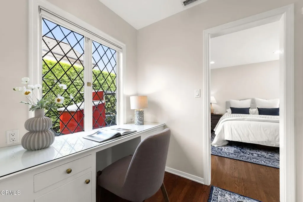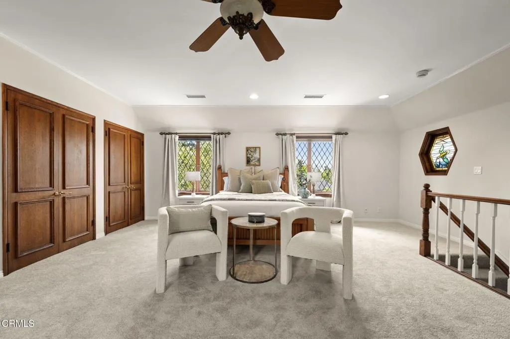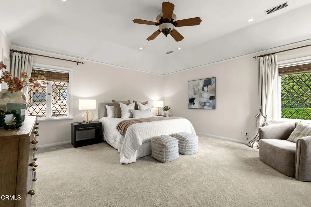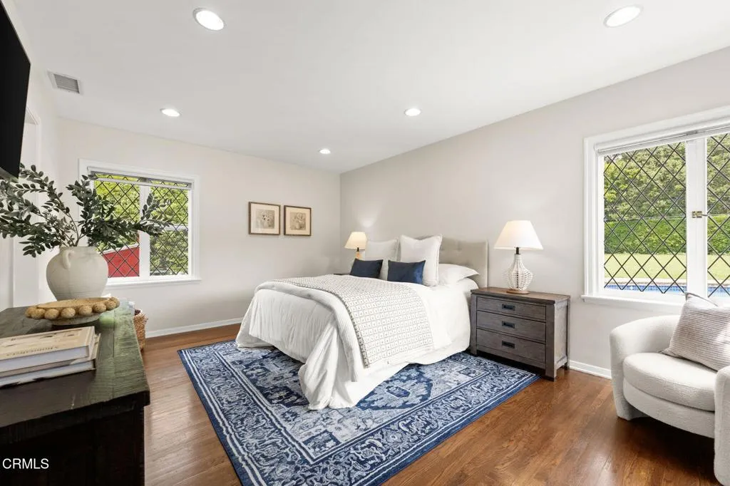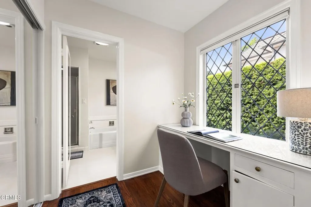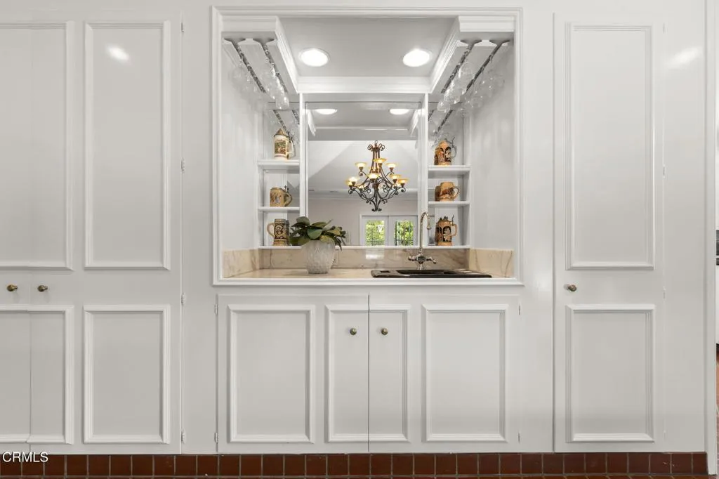 Nestled in the coveted Chapman Woods neighborhood of Pasadena, this timeless English Tudor estate exudes classic elegance and refined character. A circular brick driveway sets a grand first impression, leading into a residence rich with architectural detail and sophisticated design. Inside, the home offers an exceptional blend of formal and relaxed living spaces, including a stately formal living room, an inviting family room, and an expansive game room complete with a wet bar--perfectly suited for both intimate gatherings and large-scale entertaining. At the heart of the home, an open, light-filled kitchen overlooks the lush backyard, creating a seamless connection between indoor living and outdoor beauty. The private primary wing serves as a true retreat, showcasing a luxurious suite with a walk-in closet and its own dedicated library with a fireplace--an inviting and sophisticated sanctuary. Complementing the home are three nicely appointed bedroom en-suites, each designed for comfort and privacy. Ideally suited for multi-generational living, the residence also features a private guest suite tucked within the second-floor east wing. Outdoors, lush, manicured grounds create a resort-like setting with picturesque mountain views, a sparkling pool and spa, and a private sports court--offering endless opportunities for recreation and relaxation. Designed for both comfort and entertaining, this exceptional property embodies the very best of Pasadena living in one of its most sought-after communities.
