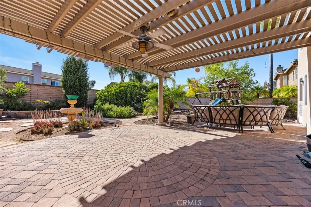 Located in the gated community of Brookside, this spacious home offers a flexible floor plan with generous living areas and a well appointed kitchen. The kitchen features granite countertops, a double convection oven, and ample storage making it ideal for both everyday living and entertaining. A highly desirable downstairs bedroom with a full bath provides flexibility for multigenerational living, guests, or a private home office. Additional highlights include ceiling fans throughout, window tinting on rear-facing windows, a whole house attic fan, water softener, and solar panels for added comfort and energy efficiency. The private backyard offers a great opportunity to create your ideal outdoor retreat, with existing hardscape including pavers, a patio cover, irrigation, mature trees, a fire pit, and an overhead outdoor fan. Situated in a well-maintained gated community with low HOA dues, this home is conveniently located near Reidy Creek Golf Course, shopping, dining, schools, and freeway access. With a desirable location and strong potential, this property is a great opportunity to make it your own.
