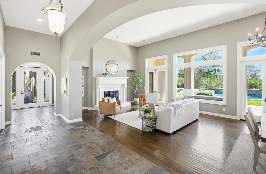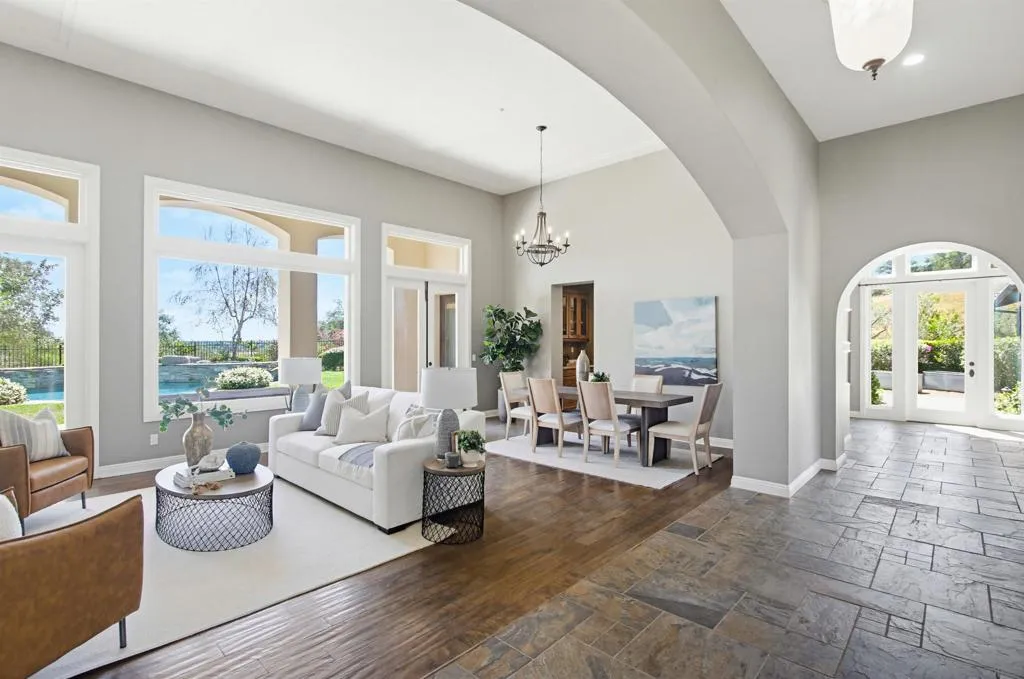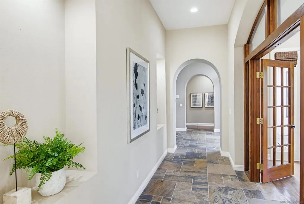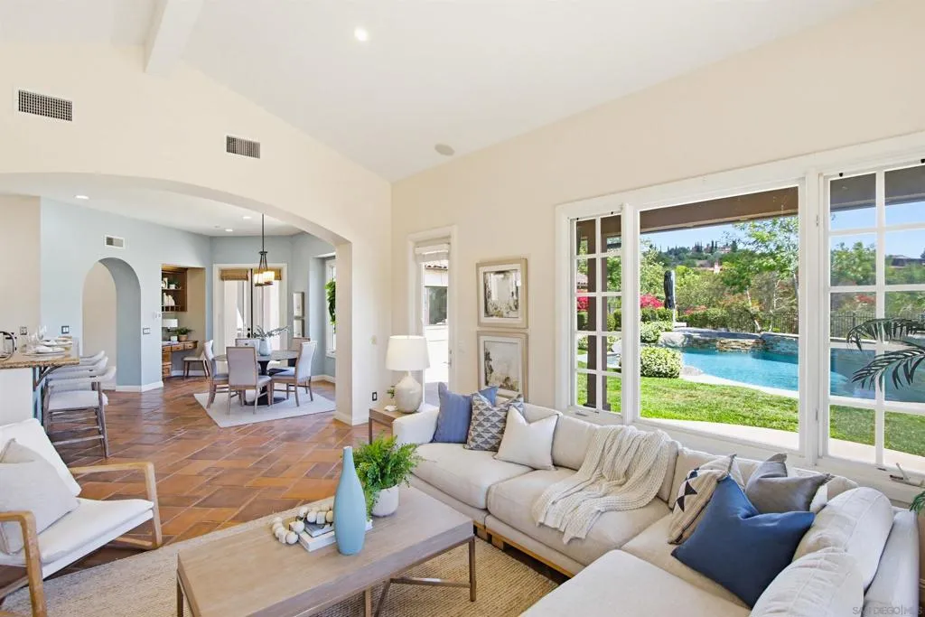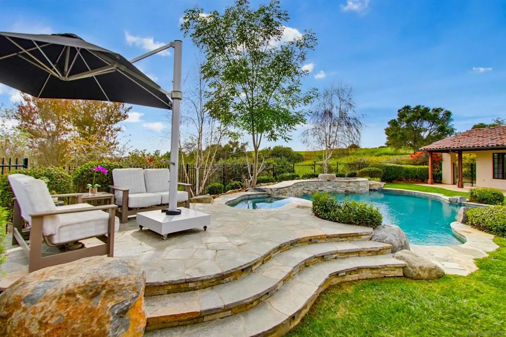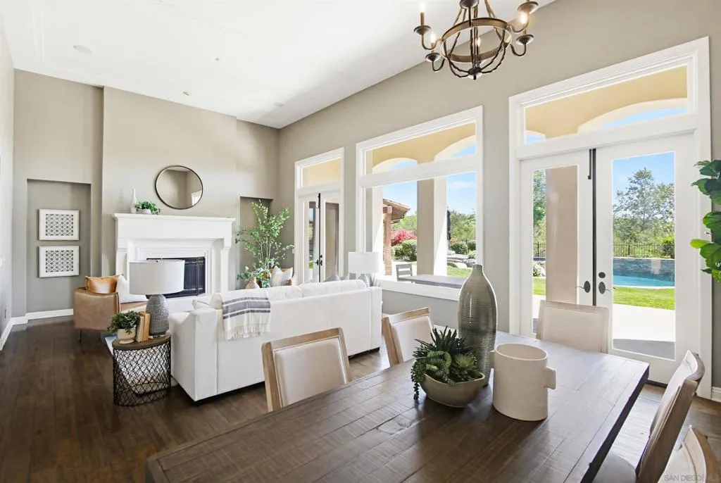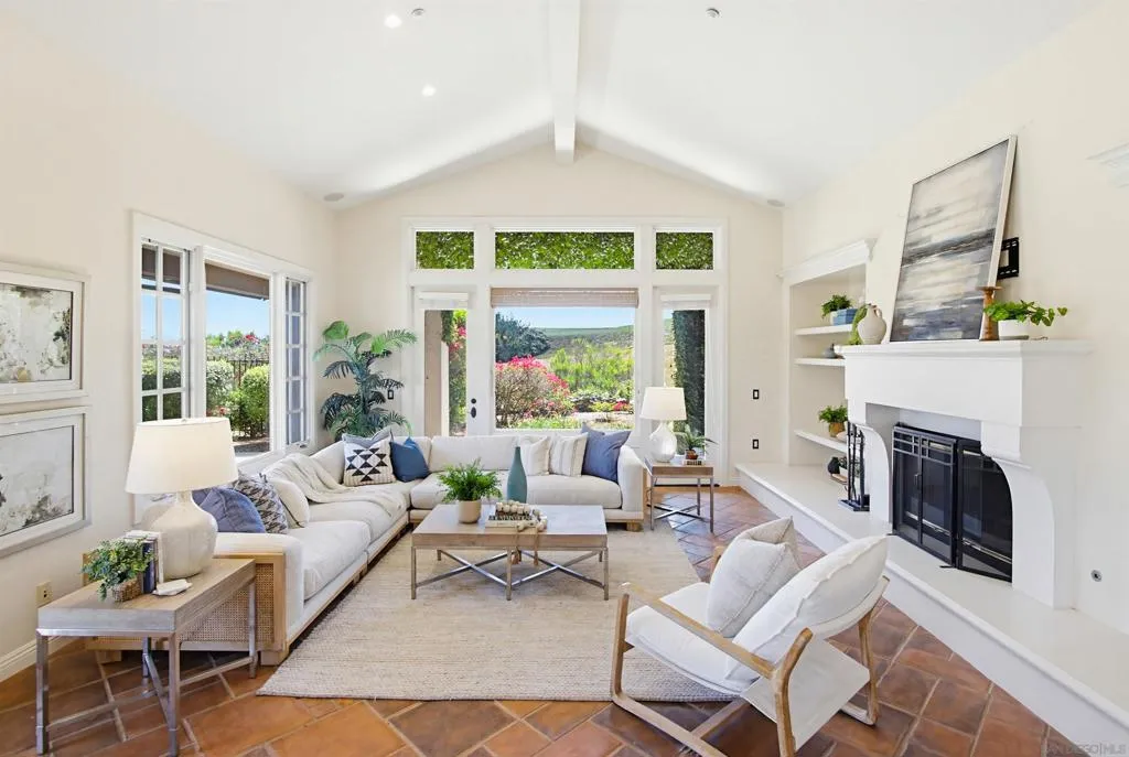 Welcome to the prestigious gated community of Santaluz, where tranquility, security, and natural beauty define everyday living. Ideally situated on the east side of the guarded gates, this stunning single-level estate is just a short walk to the Club, offering effortless access to world-class amenities. Set on more than two acres of meticulously manicured grounds, the property offers an extraordinary sense of privacy and serenity. Enjoy sweeping southwest views from the resort-style backyard. Featuring a luxurious stone pool and spa with Baja shelf, cascading waterfall, and an elevated lounge area perfect for sunset gatherings. The outdoor spaces are designed for year-round enjoyment with a wraparound covered patio, two private enclosed courtyards, elegant landscape lighting, a charming rose garden, and an outdoor kitchen ideal for entertaining. A vine-covered entry welcomes you into a light-filled interior defined by soaring ceilings and expansive windows that frame the spectacular backyard views. The pool and panoramic scenery serve as the focal point of the home, visible from the formal living and dining rooms, kitchen, family room, and private primary wing. The spacious chef’s kitchen flows seamlessly into the inviting family room, highlighted by Saltillo tile flooring, vaulted ceilings, and a cozy fireplace entertainment area. Thoughtfully designed with family living in mind, the home features multiple private wings. Two generously sized bedrooms with en-suite baths share a flexible living space perfect for children or teens, separated by a tranquil courtyard and dedicated office area. The office and additional bonus room could be optional bedrooms. The primary suite occupies its own wing and offers a private sitting area, 2 walk-in closet, views and access to the pool, and a private courtyard. On the opposite side of the home, a guest bedroom with its own en-suite bath provides comfort and privacy for visitors. Additional highlights include a newly installed zoned HVAC system, rich hardwood flooring, a dramatic slate tile entry, elegant coffered ceilings, 3 fireplaces, a large 4 car garage, 2 car side spaces, plus room for 6 more cars in the driveway, and more! All of this is just moments from the Hacienda Club at Santaluz, where residents enjoy access to the club, fitness center, pool, café, and miles of scenic hiking trails.