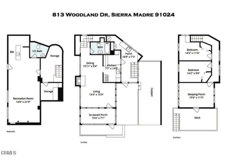 Your Sierra Madre Canyon retreat awaits at 813 Woodland Drive, a charming, character-filled home set within a serene, nature-rich setting with the gentle sound of the creek as your backdrop. From the moment you arrive, the beautifully landscaped front yard, lush lawn, and inviting front porch set the scene for outdoor dining or relaxing in the Southern California sunshine. Inside, the living room is highlighted by rich wood accents, a striking stone fireplace, and peaceful views of the surrounding trees. It's an ideal space to unwind or gather while enjoying the quiet canyon setting. The kitchen blends vintage charm with functionality, featuring well-maintained appliances, built-in shelving, and convenient access to an enclosed patio area with laundry and basement access. The expansive basement, approximately 835 square feet (buyer to verify), provides incredible flexibility for a variety of uses, whether as a home theater, studio, office, or additional entertainment space. The recently upgraded bathroom is thoughtfully designed with elegant tile work, a classic clawfoot tub, and a pedestal sink. Upstairs, two well-sized bedrooms are filled with natural light and treetop views. At the end of the hall, a versatile bonus room, previously used as a primary bedroom, feels like a private retreat with windows on all sides and access to a second-story balcony. From here, enjoy the calming sounds of the nearby creek and the surrounding natural beauty. The property includes a two-car carport and extended driveway parking, as well as tasteful upgrades such as new AC and heat on all three levels. Tucked away in the peaceful Sierra Madre Canyon, this home offers a true sense of escape while remaining just moments from Downtown Sierra Madre with its shops, dining, and welcoming community. A rare opportunity to own a unique canyon property with character, space, and setting.
