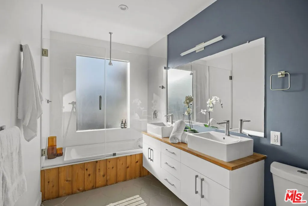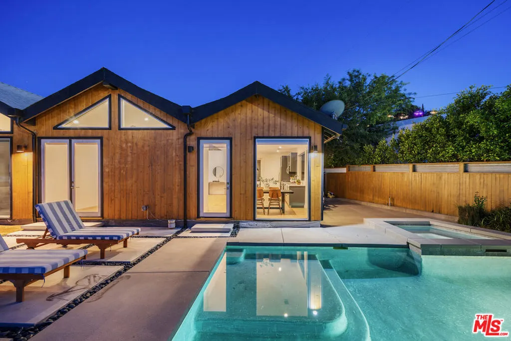 Set high in the hills of Los Angeles, this gated architectural pool home offers privacy, presence, and seamless indoor-outdoor living. Positioned on an expansive 10,000+ sq ft lot, the property welcomes you with a spacious front courtyard anchored by a built-in fireplacean ideal setting for relaxed gatherings and year-round entertaining.Inside, soaring ceilings and an open-concept kitchen are complemented by oversized windows that flood the home with natural light while framing the surrounding landscape. The primary suite is both bold and serene, featuring floor-to-ceiling glass and direct access to a private patio. Two guest bedrooms, along with a thoughtfully designed full bath, are set apart to provide comfort and privacy.Outdoors, a resort-style environment unfolds with a custom pool and spa, multiple lounge areas, and inviting al fresco dining spaces. The terraced hillside below reveals additional usable land, including a generous flat pad suited for entertaining or recreation. A refined blend of architectural impact and everyday livability.