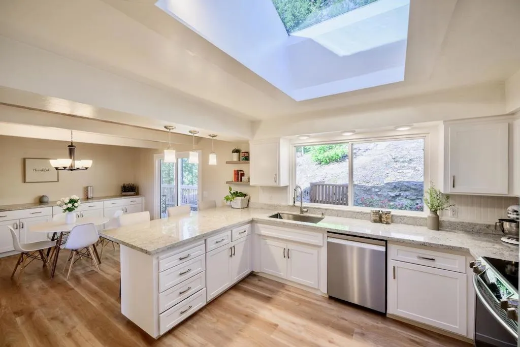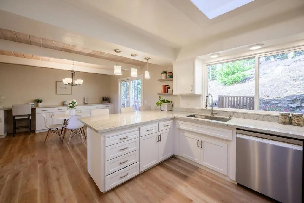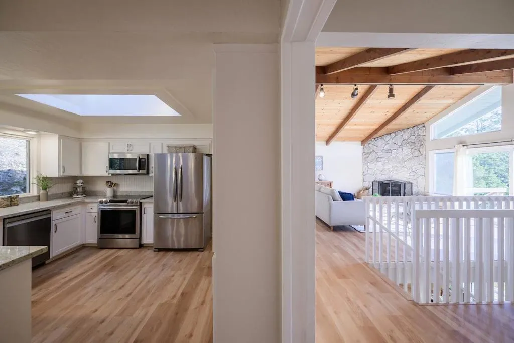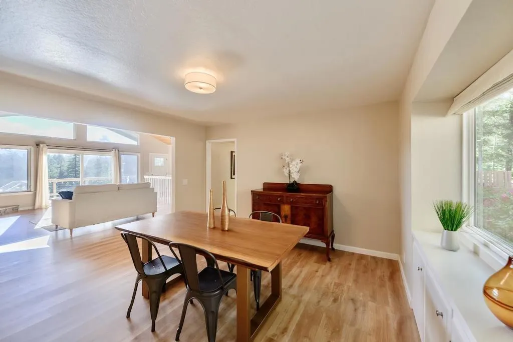 Welcome to this beautifully updated 4-bedroom, 3-bath home offering over 3,000 square feet of living space on a private 2-acre lot with stunning views. This home features new flooring throughout, a tastefully remodeled kitchen and bathrooms, and a well-designed floor plan that flows seamlessly. The kitchen includes granite countertops, stainless steel appliances, and a skylight that fills the space with natural light. Enjoy multiple expansive decks ideal for relaxing, entertaining, or taking in the surrounding scenery. The property offers ample parking with a circular driveway in addition to the attached 2-car garage. Whether youre enjoying the views from inside or out on the decks, this home delivers a peaceful setting with a strong indoor-outdoor connection. A rare combination of space, privacy, and modern updates this home is sure to impress.