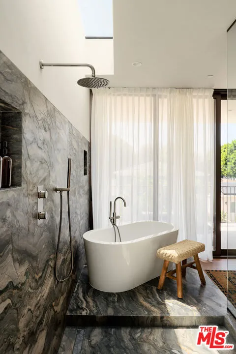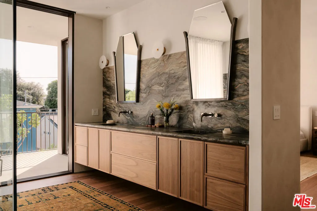 A landmark new construction arriving on one of Carlson Park's most coveted streets in Culver City. Conceived from the ground up with an uncompromising architectural vision, this 4,000-square-foot residence transforms daily living into something extraordinary, moments from downtown Culver City and its celebrated restaurants, shops, and cultural energy. Thoughtfully positioned on a 6,762-square-foot lot, the home embraces a seamless indoor-outdoor lifestyle with expansive walls of glass, exceptional natural light, and a fluid open floor plan designed for both intimate living and elevated entertaining. The chef's kitchen is a study in restraint and refinement, anchored by a monumental island with generous storage, custom walnut cabinetry, integrated appliances, and an effortless connection to the living and dining spaces, featuring a dedicated wet bar adorned in dramatic book-matched silver wind travertine. Every finish is consistent with the home's natural warmth and earthy texture. The home offers four en suite bedrooms, each thoughtfully designed for privacy and comfort, along with an upstairs lounge that provides additional living space.The primary suite unfolds with generous scale, soft light, a spacious walk-in closet, and a spa-like bath centered around a custom fusion marble-paneled shower and soaking tub. Sliding doors open to an oversized patio, completing its serene purpose. The thoughtfully executed backyard is designed as a private, resort-like escape, with curated landscaping, sculptural built-in seating with a centered fire pit, a separate lounge area, and a built-in BBQ and dining terrace , completing a true haven. A rare opportunity to acquire a brand-new designer residence where architecture, materiality, and location converge in one of Culver City's most desirable enclaves.