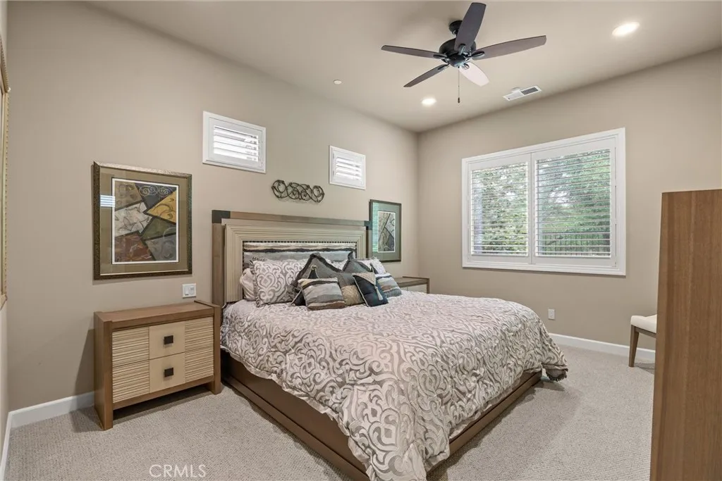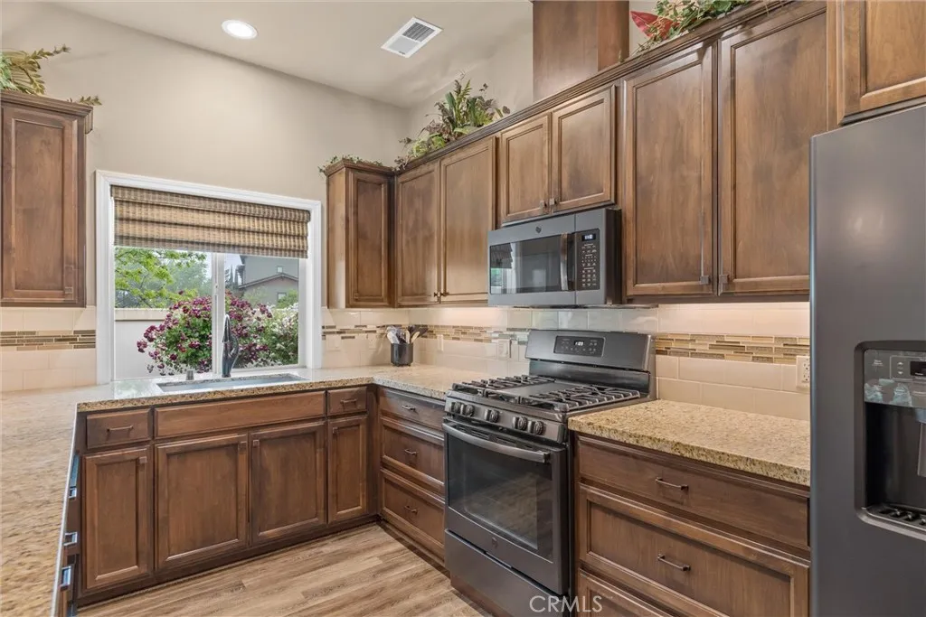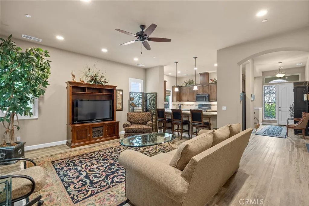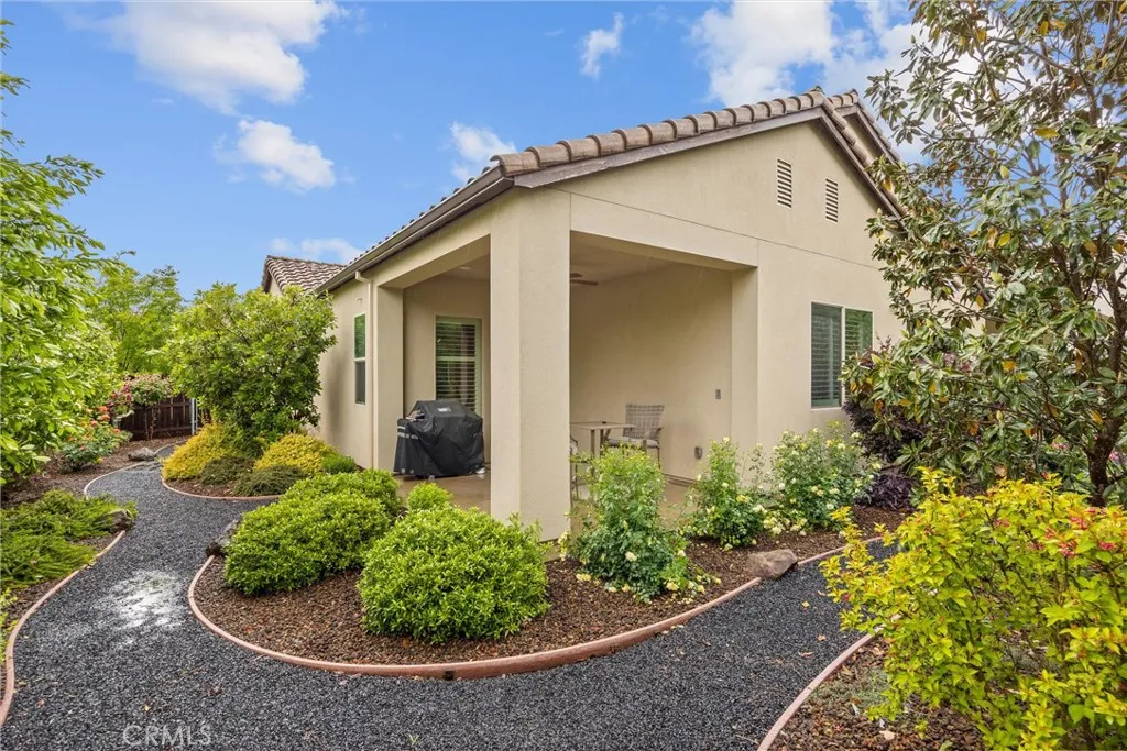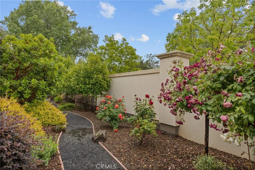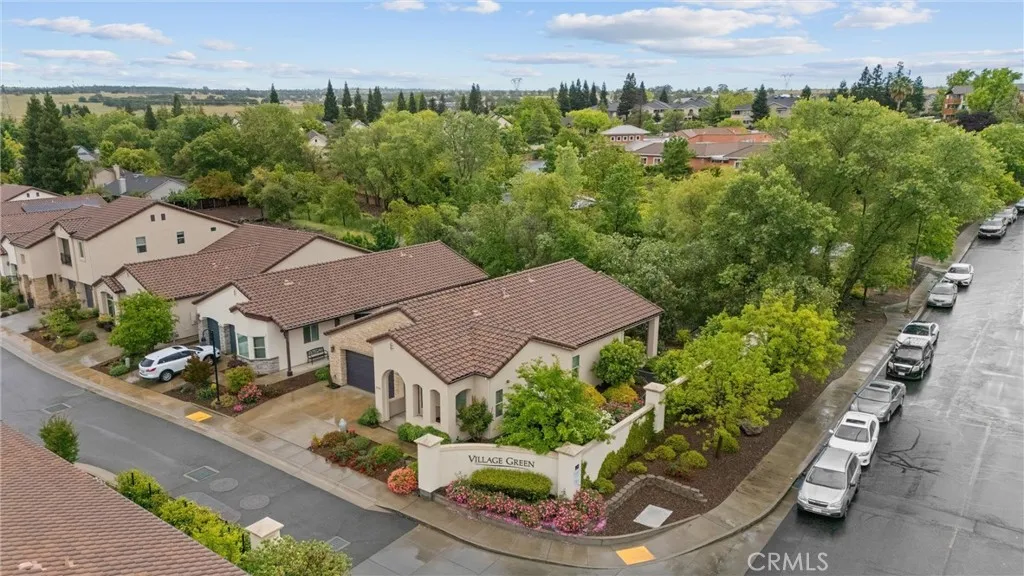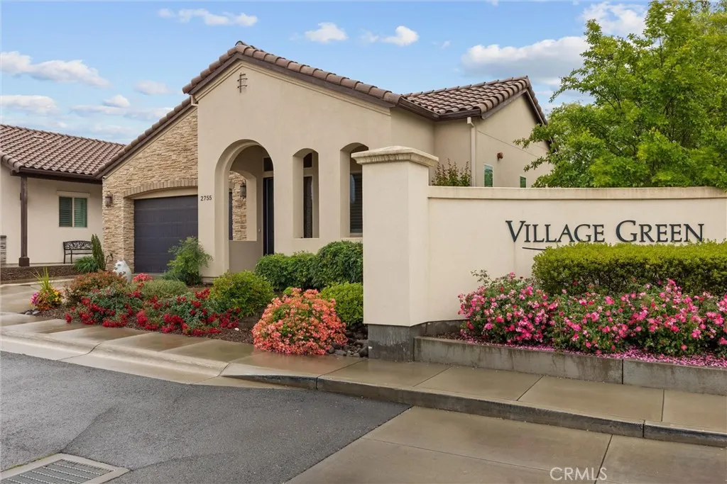 Beautifully positioned at the entrance to Village Green, 2755 Via Roma offers rare privacy, thoughtful accessibility, and exceptional pride of ownership in California Park’s most desirable 55+ community. With neighbors on only one side and a setting near the creekside greenbelt, this home enjoys an oversized lot feel, peaceful surroundings, and beautifully landscaped wraparound outdoor spaces. Inside, the home is spacious, warm, and impeccably maintained, with high ceilings, wide hallways and doorways, upgraded flooring, and a flexible floor plan that includes a separate front dining room or office and a generous rear living room open to the kitchen. Rich cabinetry, granite countertops, breakfast bar seating, gas cooking, plantation shutters, and abundant natural light create an inviting everyday living experience. The primary suite offers a large walk-in closet, dual-sink vanity, and accessible roll-in shower, while the guest bath is also thoughtfully designed for comfort. Additional highlights include an indoor laundry room, alarm and camera system, Culligan water softener, upgraded Fisher & Paykel dishwasher, built-in garage cabinetry, covered patio, drip irrigation, decorative fountain, and beautifully maintained grounds. The washer, dryer, and refrigerators may be included. Residents enjoy a quiet, well-kept community built in 2018, with associations sharing a security patrol with California Park, and an advantageous location. Beyond the home itself, Village Green offers an exceptional California Park lifestyle, with neighborhood lakes, walking and biking paths, parks, and beautifully maintained grounds creating a peaceful everyday backdrop. Residents enjoy access to nearby tennis courts, golf at Canyon Oaks, and the many outdoor amenities that make this part of Chico so sought after. California Park’s lakes and trails invite recreation close to home, while Upper Bidwell Park offers miles of hiking, biking, and natural beauty just minutes away. Designed for those seeking comfort, community, and low-maintenance living, Village Green offers the rare combination of refined downsizing and an enhanced quality of life.