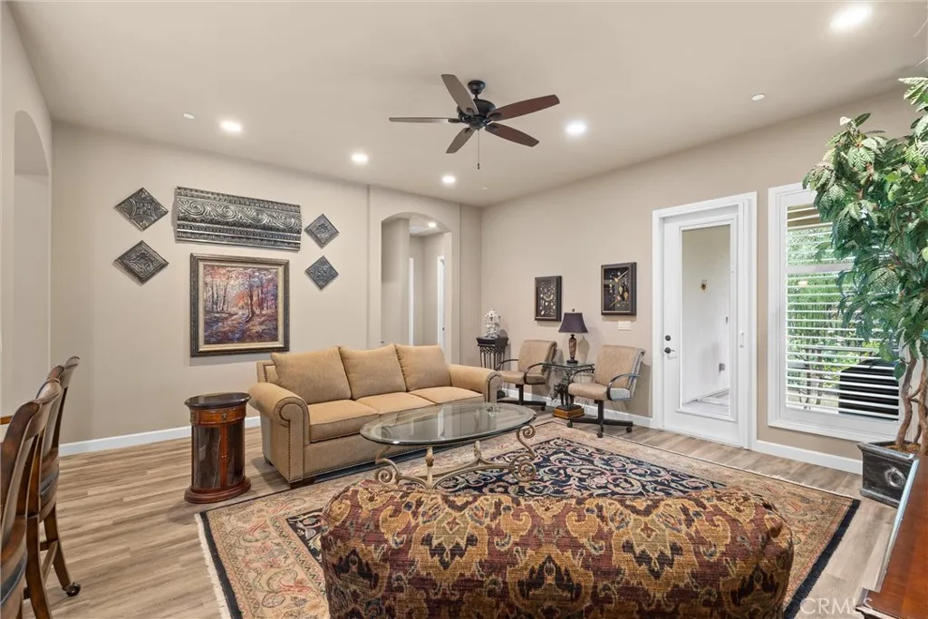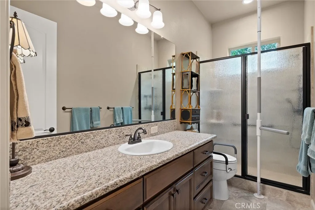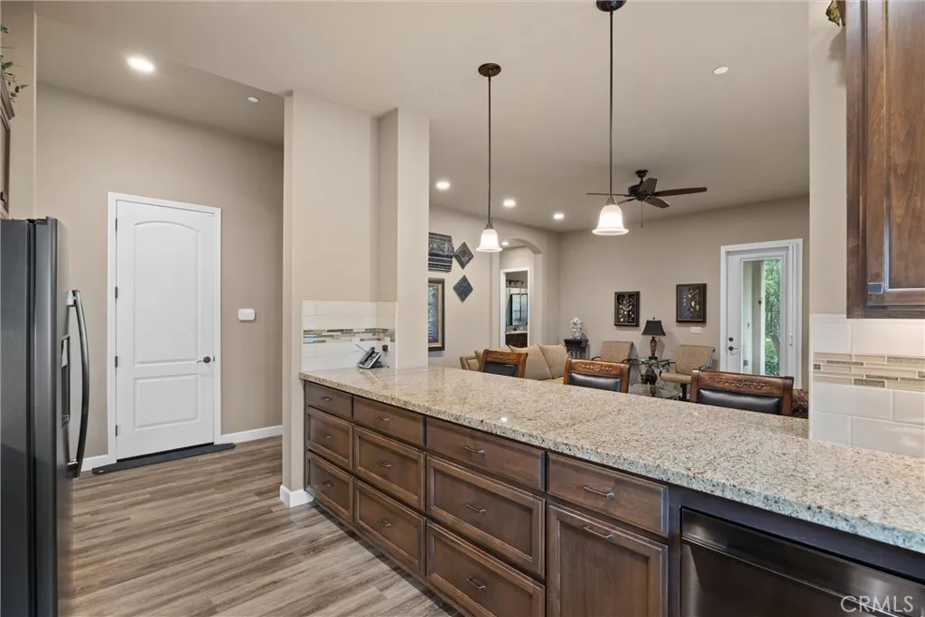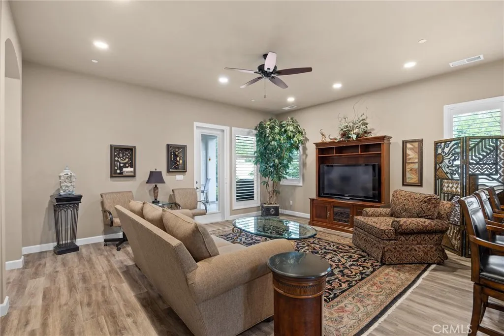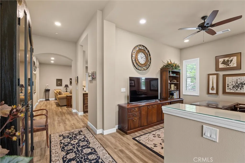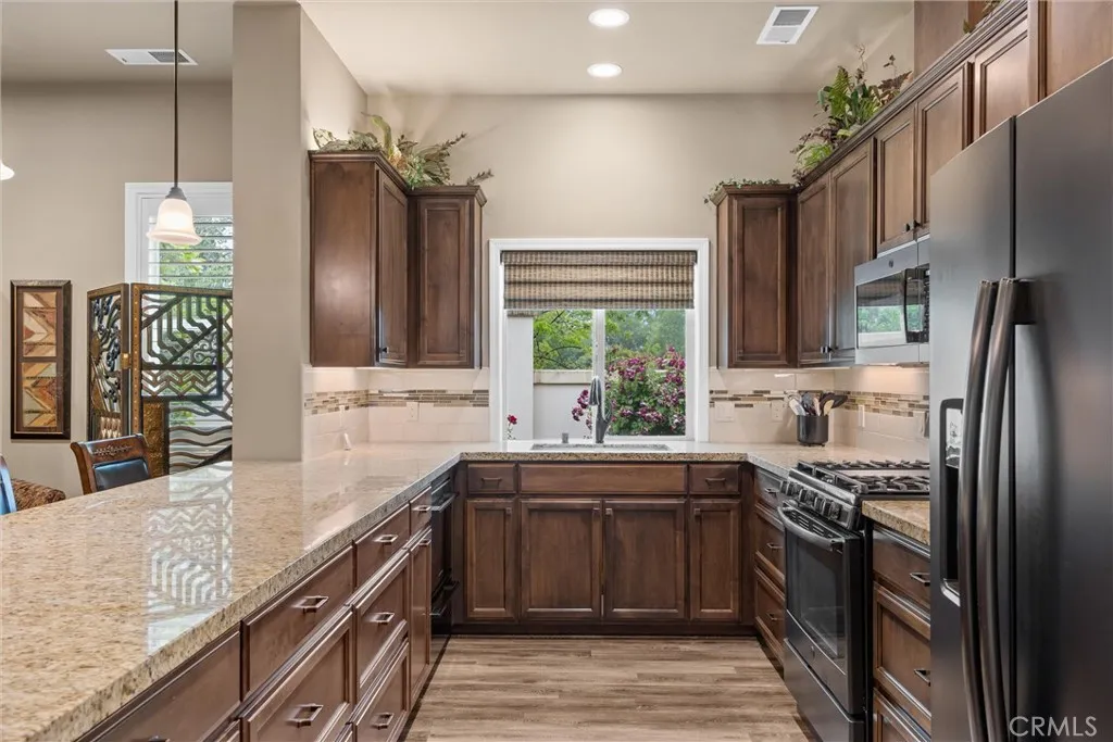 Beautifully positioned at the entrance to Village Green, 2755 Via Roma offers rare privacy, thoughtful accessibility, and exceptional pride of ownership in California Park’s most desirable 55+ community. With neighbors on only one side and a setting near the creekside greenbelt, this home enjoys an oversized lot feel, peaceful surroundings, and beautifully landscaped wraparound outdoor spaces. Inside, the home is spacious, warm, and impeccably maintained, with high ceilings, wide hallways and doorways, upgraded flooring, and a flexible floor plan that includes a separate front dining room or office and a generous rear living room open to the kitchen. Rich cabinetry, granite countertops, breakfast bar seating, gas cooking, plantation shutters, and abundant natural light create an inviting everyday living experience. The primary suite offers a large walk-in closet, dual-sink vanity, and accessible roll-in shower, while the guest bath is also thoughtfully designed for comfort. Additional highlights include an indoor laundry room, alarm and camera system, Culligan water softener, upgraded Fisher & Paykel dishwasher, built-in garage cabinetry, covered patio, drip irrigation, decorative fountain, and beautifully maintained grounds. The washer, dryer, and refrigerators may be included. Residents enjoy a quiet, well-kept community built in 2018, with associations sharing a security patrol with California Park, and an advantageous location. Beyond the home itself, Village Green offers an exceptional California Park lifestyle, with neighborhood lakes, walking and biking paths, parks, and beautifully maintained grounds creating a peaceful everyday backdrop. Residents enjoy access to nearby tennis courts, golf at Canyon Oaks, and the many outdoor amenities that make this part of Chico so sought after. California Park’s lakes and trails invite recreation close to home, while Upper Bidwell Park offers miles of hiking, biking, and natural beauty just minutes away. Designed for those seeking comfort, community, and low-maintenance living, Village Green offers the rare combination of refined downsizing and an enhanced quality of life.
