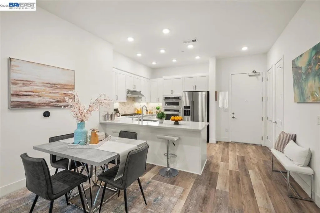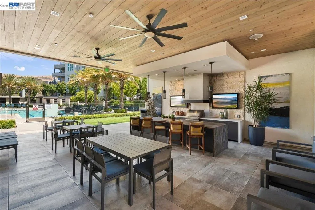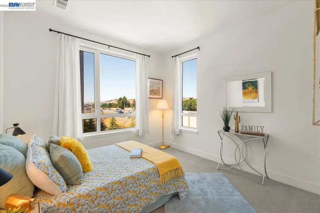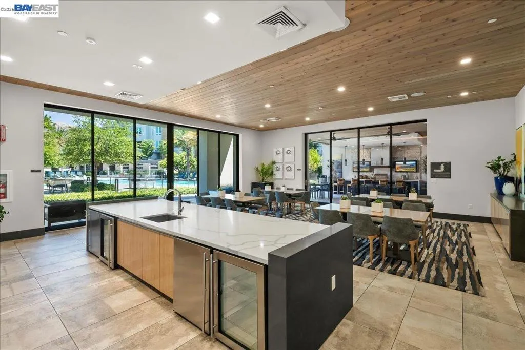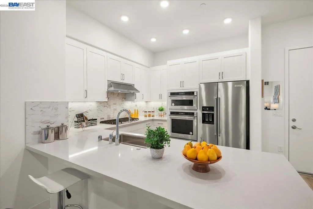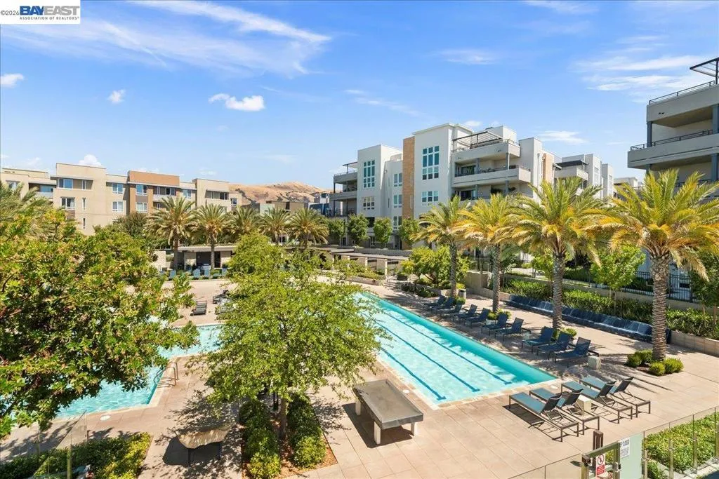 Experience unparalleled luxury living in this rare, light-drenched penthouse condo with stunning hill views. This exquisite 2-bedroom, 2-bathroom residence features a secure entrance and an open-concept layout with soaring 10' ceilings and top-of-the-line upgrades. The chefs' eat-in kitchen has premium stainless-steel appliances, stylish high-end cabinetry, a gorgeous backsplash, and crisp white quartz countertops. The primary suite offers a spacious walk-in closet and a large bathroom with a double-sink vanity and a modern shower with a nice glass enclosure. Additionally, enjoy the convenience of a 2-car garage with a EV charging outlet and storage space. The resort-style recreation complex includes large swimming and lap pools, an outdoor beach pool with fire pits and private cabanas, outdoor kitchens, and a spinning gym with an open-air sun deck. Many amenities, including a state-of-the-art clubhouse, a dog wash station, various recreation areas, a conference room, a rooftop deck, a playground, bike storage, parcel lockers, and much more. Prime Location situated across from the Warm Springs Fremont BART Station, with convenient access to I-680 and I-880. Close to Tesla, Silicon Valley, shopping, and schools. A must-see! You will be impressed with this resort-style community... Welcome to your new home!
