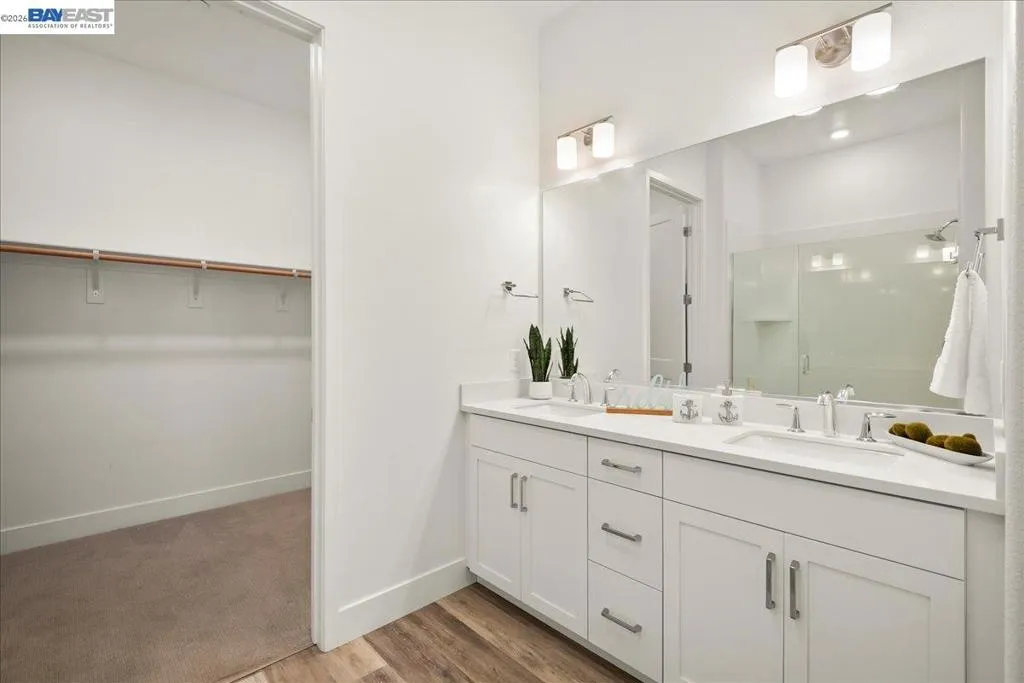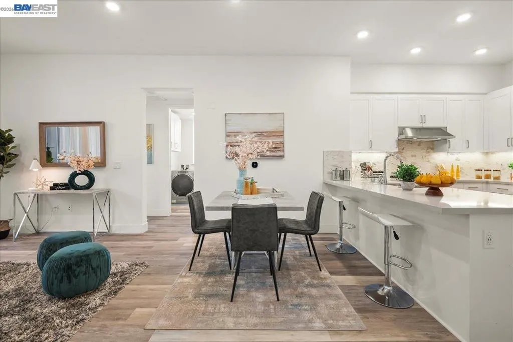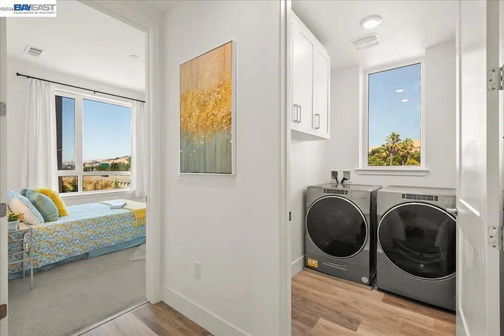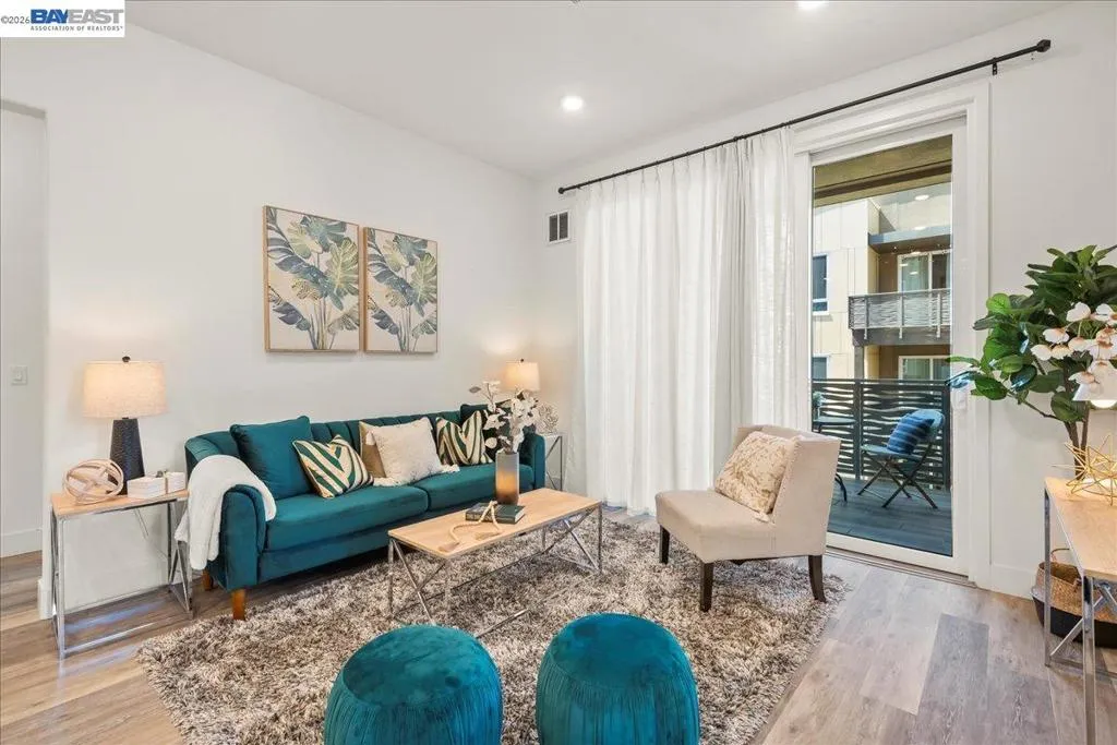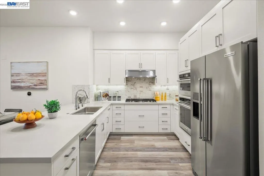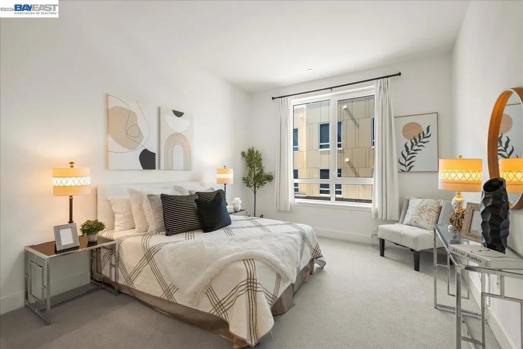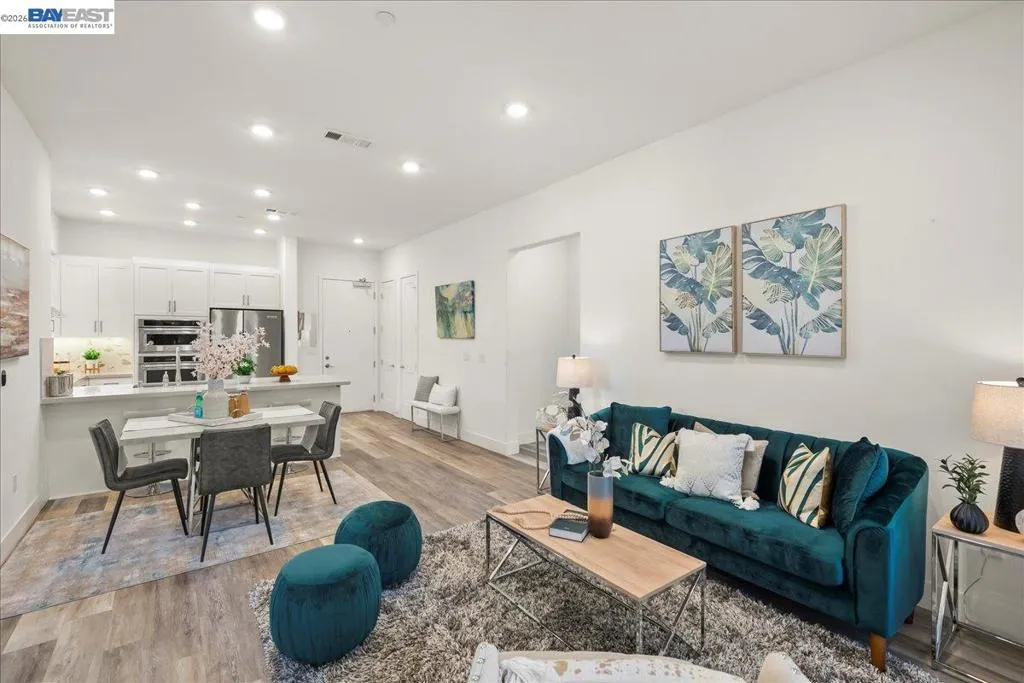 Experience unparalleled luxury living in this rare, light-drenched penthouse condo with stunning hill views. This exquisite 2-bedroom, 2-bathroom residence features a secure entrance and an open-concept layout with soaring 10' ceilings and top-of-the-line upgrades. The chefs' eat-in kitchen has premium stainless-steel appliances, stylish high-end cabinetry, a gorgeous backsplash, and crisp white quartz countertops. The primary suite offers a spacious walk-in closet and a large bathroom with a double-sink vanity and a modern shower with a nice glass enclosure. Additionally, enjoy the convenience of a 2-car garage with a EV charging outlet and storage space. The resort-style recreation complex includes large swimming and lap pools, an outdoor beach pool with fire pits and private cabanas, outdoor kitchens, and a spinning gym with an open-air sun deck. Many amenities, including a state-of-the-art clubhouse, a dog wash station, various recreation areas, a conference room, a rooftop deck, a playground, bike storage, parcel lockers, and much more. Prime Location situated across from the Warm Springs Fremont BART Station, with convenient access to I-680 and I-880. Close to Tesla, Silicon Valley, shopping, and schools. A must-see! You will be impressed with this resort-style community... Welcome to your new home!