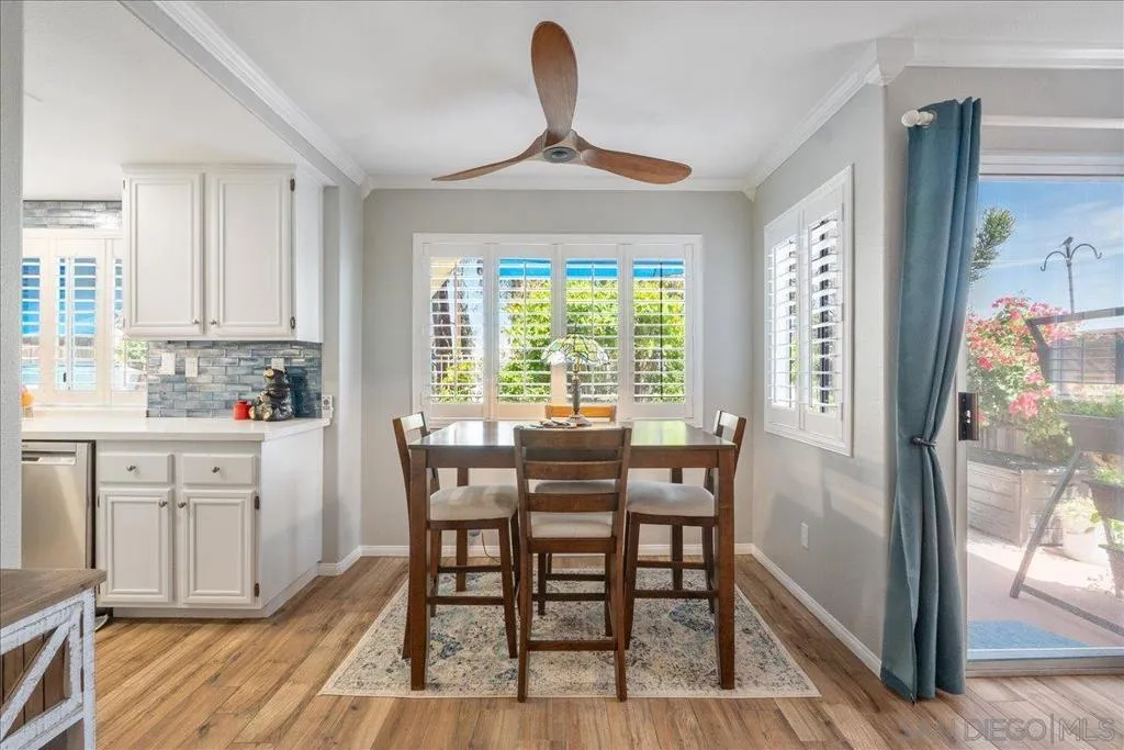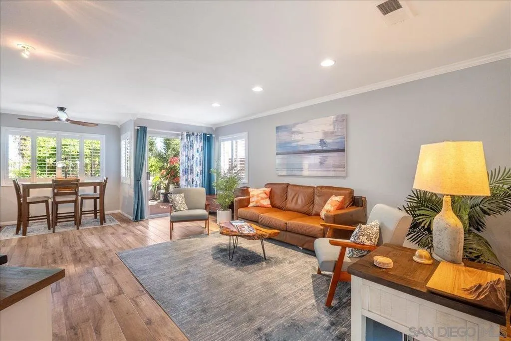 Experience coastal living just minutes from the beach in this beautifully maintained home in the desirable Villa Trinidad community of Del Oro Hills in Oceanside, offering a perfect blend of functionality, comfort, and Southern California lifestyle—enhanced by a fully owned solar system that currently offsets all electricity costs. Upon entry, you’re welcomed by soaring vaulted ceilings, multiple windows, skylights, and a dramatic staircase that create a bright and open first impression. The well-designed floor plan features a spacious living room, separate family room, and a main-level bedroom with a full bath—perfect for guests or flexible living. The dining area, complete with built-in seating beneath a bay window, flows seamlessly between the living room and kitchen and is complemented by a double-sided fireplace shared with the family room. The kitchen features white cabinetry, stainless steel appliances, and a distinctive blue tile backsplash, opening seamlessly to a generously sized family room with direct backyard access. Step outside to a private, resort-style setting with shade sails and ample space for outdoor dining and entertaining—ideal for enjoying the year-round coastal climate. Relax in your private hot tub while taking in scenic mountain views, including the snow-capped peaks of Palomar Mountain and San Jacinto Mountains. Upstairs, the expansive primary suite offers vaulted ceilings, a double ceiling fan, a cozy fireplace, and a sitting area with windows overlooking the surrounding area. The en-suite bath includes a soaking tub, separate walk-in shower, dual sink vanity, and a walk-in closet. Two additional bedrooms connected by a Jack-and-Jill bathroom complete the upper level. Additional features include a 2-car garage, an owned solar system and a prime location near parks, hiking trails, and the coast. Conveniently located just minutes from Buccaneer Beach, the iconic Oceanside Pier, and surrounding coastal amenities, this home offers an exceptional blend of space, location, and coastal living. Everyday conveniences are also nearby, including the Rancho Del Oro Coaster Station (approximately 1 mile with free parking), Frontwave Arena, William A. Wagner Aquatic Center, El Corazon Senior Center, and MiraCosta College. This home offers the perfect balance of space, location, and coastal lifestyle in one of Oceanside’s most desirable communities.