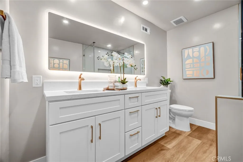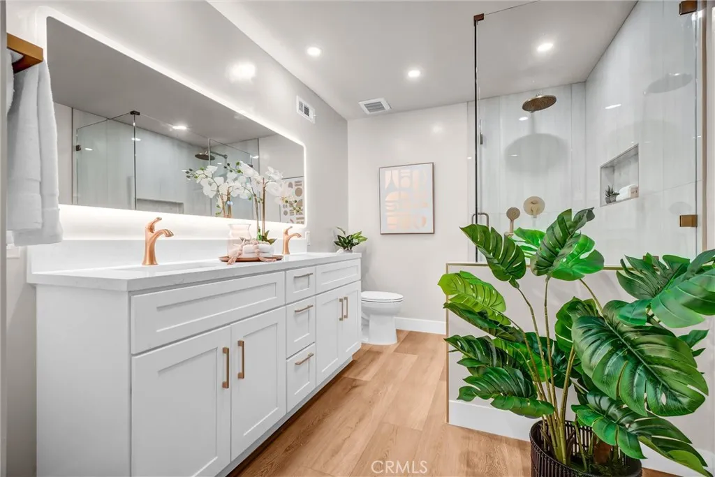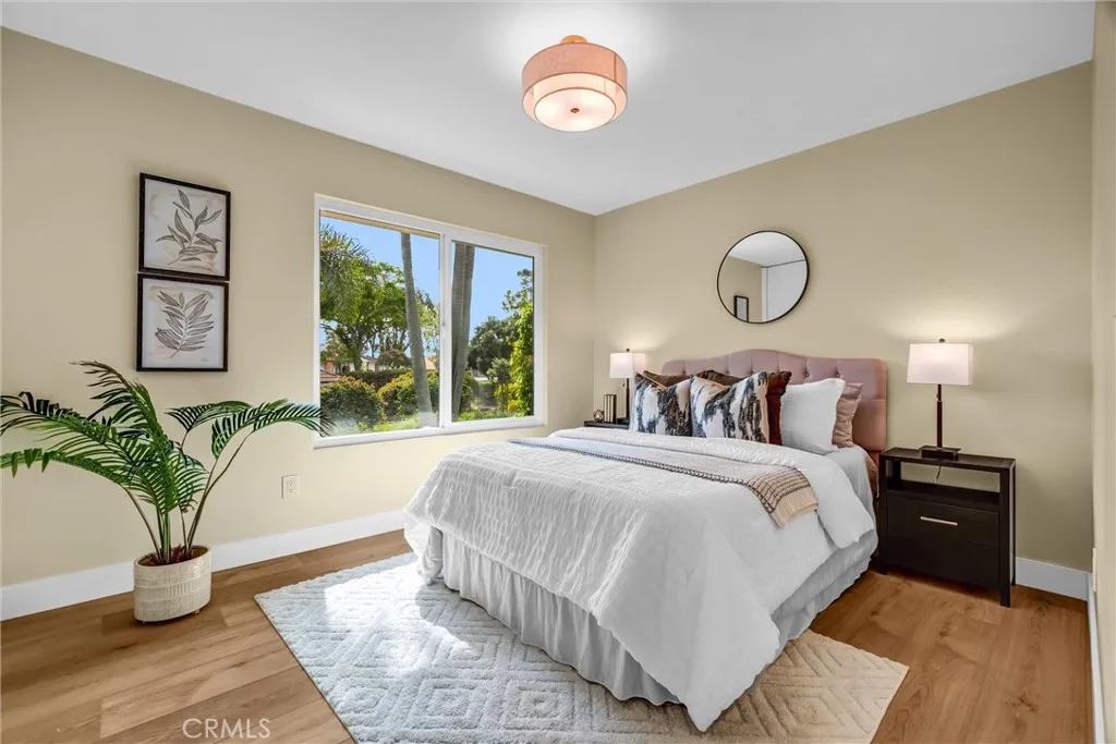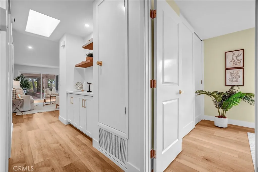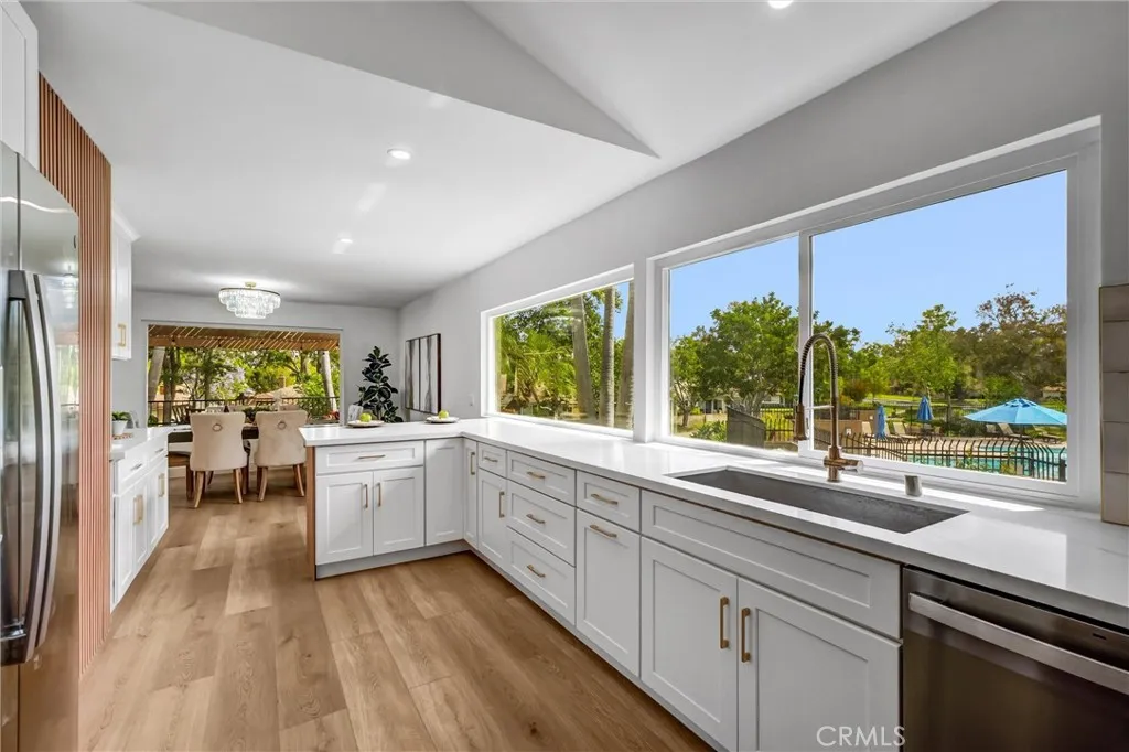 Beautifully renovated home in The Terrace, set on an elevated corner lot nearly double the size of any in the community. This rare oversized parcel offers exceptional privacy, expanded outdoor living, and a unique sense of scale not found elsewhere in the neighborhood. Enjoy resort-style pool and park views, Irvine hills visible from the kitchen, and signature mature palms that create a striking, one-of-a-kind aesthetic. All renovations were fully permitted, with over $300,000 in high-end improvements including raised ceilings, full PEX repipe, new HVAC system, Level 5 smooth finish throughout, all new windows and sliders, and a fully reconfigured primary suite with a modern layout and premium finishes. The result is a bright, open, contemporary home with exceptional volume, natural light, and a true turnkey presentation. Significantly upgraded beyond recent model-match sales, this property stands out for its scale, design, and setting—an elevated, modernized home in one of Irvine’s most desirable communities.