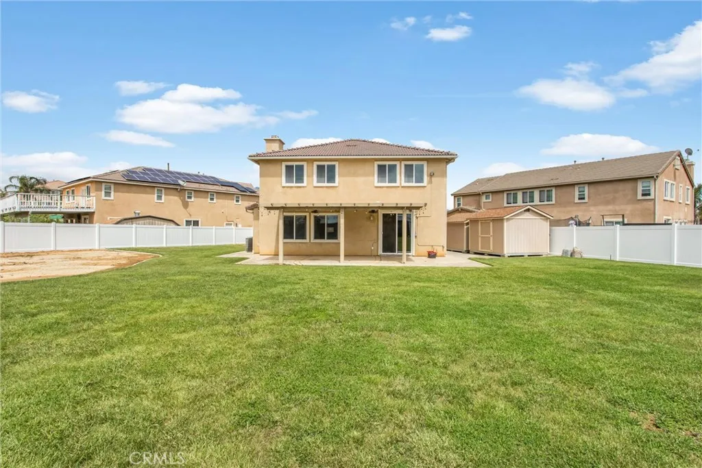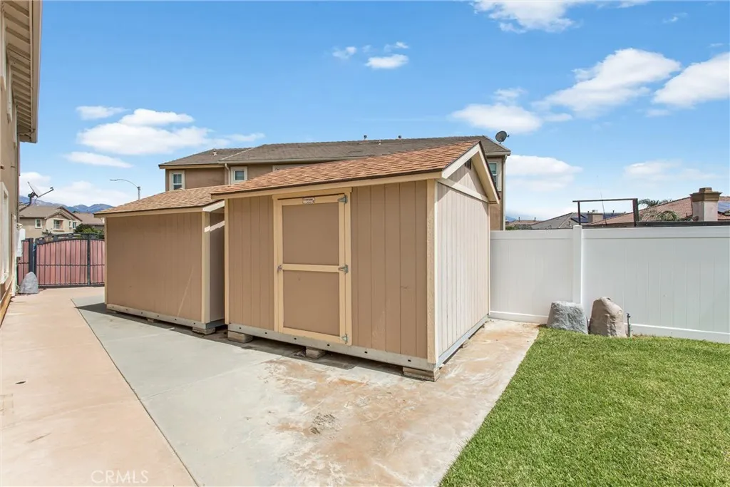 Welcome Home to one of the biggest floor plans and lot sizes offered in Shadow Creek. Shadow creek is a NO HOA community! Conveniently located off the 10 freeway: This 4200 sq ft home offers the perfect blend of space, comfort, and functionality! Featuring 5 bedrooms, 3 1/2 bathrooms and a dedicated office. This home is ideal for growing families, multi-generational living or anyone just needing extra room to spread out. Step inside and downstairs you'll find an office great for those who work from home. A separate restroom just for your guests, 2 spacious living areas and a huge kitchen with a big beautiful island and granite counter tops with granite back splash. There's also 1 bedroom and separate bath downstairs great for visitors or in-laws to have privacy. There's endless options for entertaining, relaxing or creating the perfect media or game room. The open-concept of the kitchen is the heart of the home, has a seamless flow into the main living space-perfect for hosting gatherings. Upstairs you'll find the loft area, perfect hangout spot, for family and friends. Three nice size bedrooms with shared bathroom. The primary suite boasting its own private sitting area with fireplace and an oversized walk-in closet that offers exceptional storage. Sellers also added a cool custom feature of a door from walk-in closet to laundry room, making doing laundry a breeze. Also upstairs you'll find 2 extra closets in hallway and loft giving even more options for exceptional storage space. Outside you'll fall in love with the massive 13,068 sq ft lot with the cutest Mickey mouse side gate. Plenty of space for entertaining, play, or future customization. Plus enjoy the convenience of not 1 but 2 large tuff sheds, ideal for storage, hobbies or even can convert one to a craft room or extra lounge area outside, the ideas are endless. This home truly checks off all the boxes- Space, layout, outdoor potential and NO HOA- Don't miss your opportunity to make it yours!!!!! You wont find another house like it.