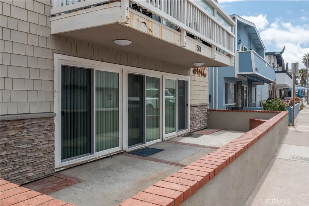 Very spacious 2-bedroom, ground-level home located just one street back from the sand—an unbeatable coastal location! Enjoy close proximity to the ocean, park, restaurants, and public transportation, making everyday living feel like a vacation. The remodeled kitchen features newer cabinetry, quartz countertops, and built-in appliances, offering both style and functionality. Both bedrooms include mirrored wardrobe closets—one with dual closets and the other with a private exterior door—along with attractive laminate wood flooring throughout. Dual-pane windows enhance comfort and efficiency, while nearly 20 feet of glass windows and a sliding door open to an expansive 32+ foot front patio—perfect for relaxing and enjoying the coastal breeze as you watch the world go by. Additional highlights include a private storage closet in the carport, one covered parking space with the possibility of tandem parking for a second vehicle, and community coin-operated laundry facilities. Experience the best of beachside living year-round!