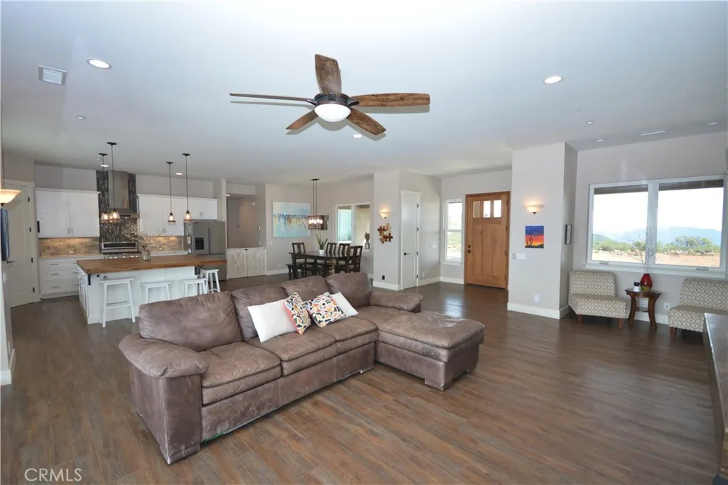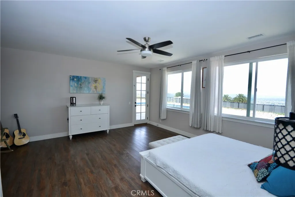 Incredible opportunity! Single level acreage home with pool and spa in gated community with panoramic views of the Temecula Valley below. Better than new construction with fully paid for solar keeps this home affordable. San Diego county loan limits with Temecula convenience! Just 5 minute drive from Pechanga casino in South Temecula, this home has everything you've been looking for. Gated entry to the covered front porch with views of the hills beyond. Enter to the spacious great room with chef's kitchen, including massive center island, upgraded appliances and loaded with counter and cabinet space. All of this open to eating area and large family room. To one side of the home, laundry room, 2 bedrooms and 2 baths, including a roomy primary suite with luxury 5 piece bath, built ins and large walk in closet, with exit to the covered back patio. On the opposite side of the home, the "west wing" has privacy doors which separate it from the rest of the home and includes 2 more bedrooms and another bath. Fenced in pool/spa and covered back patio overlook the Temecula valley below and the city lights at night!