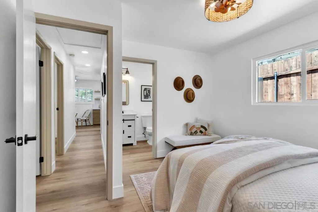 This thoughtfully reimagined single story home is tucked away on a quiet cul de sac in one of San Diego’s most convenient locations. This completely renovated residence blends modern design with everyday functionality, offering a seamless open layout ideal for both entertaining and comfortable living. The heart of the home is the redesigned kitchen, now opened up to create a bright and inviting gathering space, complete with stylish finishes and an added bathroom for enhanced convenience. With three bedrooms, two baths, and an attached sunroom or office, the flexible floor plan adapts beautifully to today’s lifestyle. Every detail has been elevated with new lighting, flooring, fresh paint, and updated landscaping, creating a move in ready experience. Enjoy year round comfort with newly added central AC, plus the long term value of owned solar and an upgraded 220 panel for energy efficiency and future readiness. Whether you’re enjoying peaceful mornings on the cul de sac or taking advantage of the central San Diego location close to shopping, dining, and major freeways, this home offers the perfect balance of privacy and accessibility.