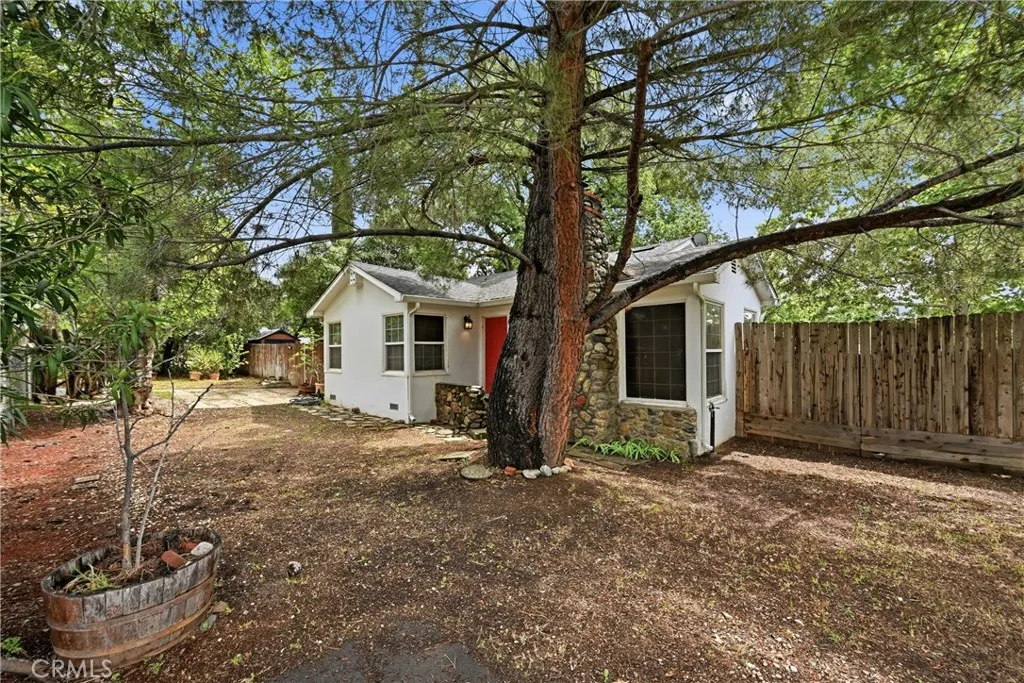 Charming Home on Spacious Double Lot with Room to Enjoy Situated on a large, fully fenced double lot just under 1/4 acre, this 3-bedroom, 1.5-bath home offers space, privacy, and plenty of potential. The property features beautiful mature trees, two separate driveways, and a detached garage, providing ample parking and flexibility for your needs. Inside, the living room showcases hardwood floors and a cozy rock fireplace, creating a warm and inviting space to relax. The home has been freshly painted inside, making it clean, bright, and ready for its next owner to move in and make it their own. Step outside to enjoy multiple patio areas, perfect for entertaining, gardening, or simply unwinding in your own outdoor retreat. With its generous lot size, functional layout, and inviting features, this property is a great opportunity to create your ideal home.