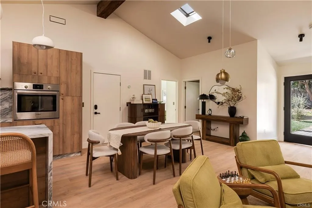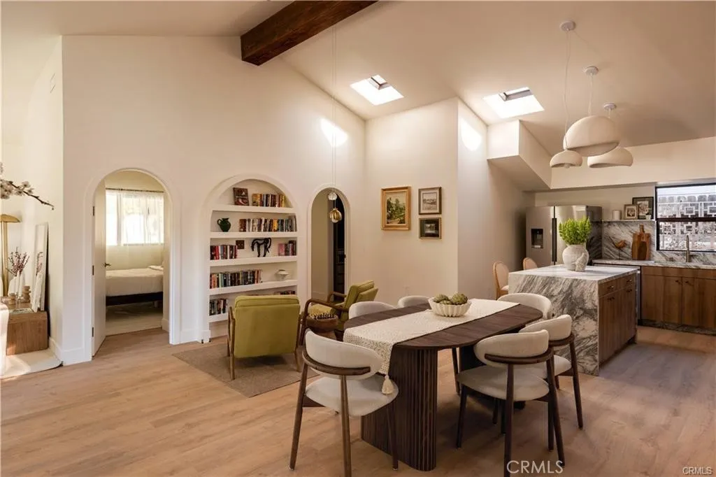 Tucked into one of Atwater Village’s most desirable pockets, this fully remodeled 3-bedroom, 2-bath home blends thoughtful design with timeless character. A clean, modern exterior sets the tone, leading into a light-filled interior defined by vaulted ceilings, skylights, and an effortless open flow. The living spaces feel both airy and inviting, with soft natural light pouring in through expansive windows and sliding doors. Subtle architectural details, arched openings, built-in shelving, and warm wood tones, add depth and character throughout. At the heart of the home, the kitchen is beautifully executed with custom cabinetry, striking marble countertops and a full marble backsplash, paired with high-end appliances to create a space that’s as functional as it is visually compelling. Both bathrooms are designed with a refined, spa-like approach, featuring microcement finishes for a seamless, modern feel, complemented by custom Calacatta Viola marble sinks and matching marble baseboards. Curated fixtures and a cohesive material palette elevate each space with a quiet sense of luxury. Step outside to a generously sized yard, thoughtfully designed as a private retreat, ideal for relaxing or entertaining. The oversized two-car attached garage provides convenience, flexibility, and additional storage. A rare opportunity to own a move-in ready home with designer finishes, strong indoor-outdoor flow, and a prime Atwater Village location just moments from Glendale Blvd, local favorites, and everything the neighborhood has to offer.